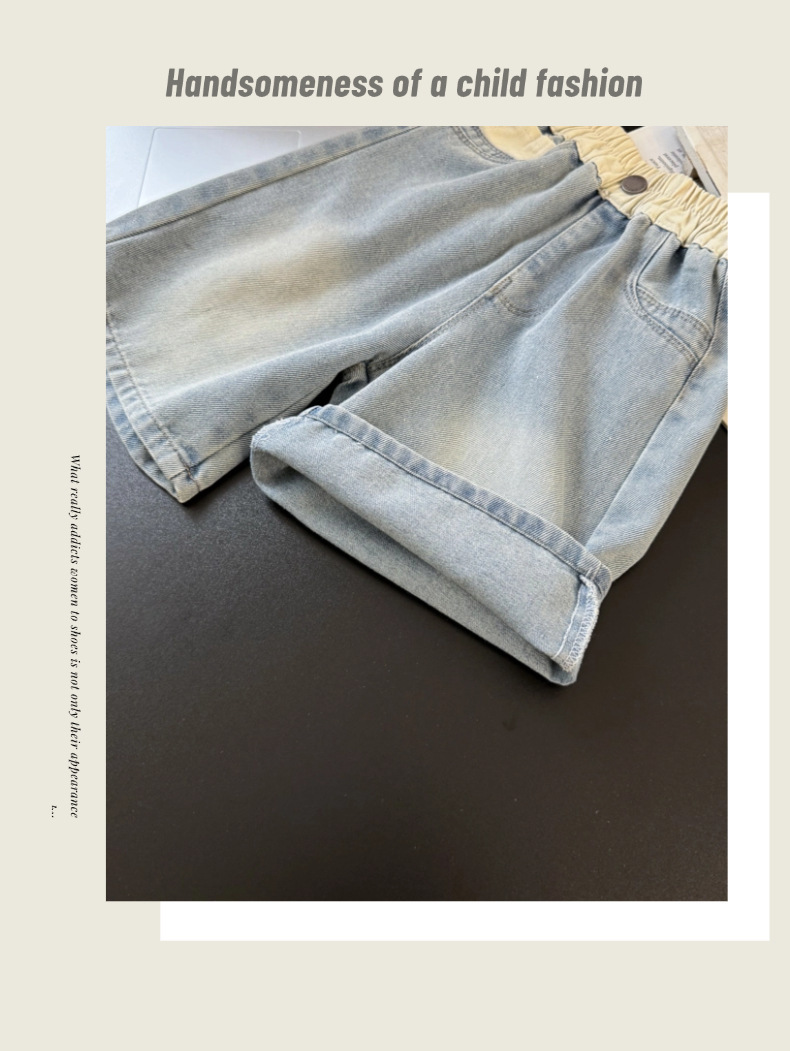 아동용 데님 반바지 2025 새로운 여름 소년 한국어 버전 만화 낙서 반바지 중소 어린이를위한 잘 생긴 중간 바지스토어 가기
