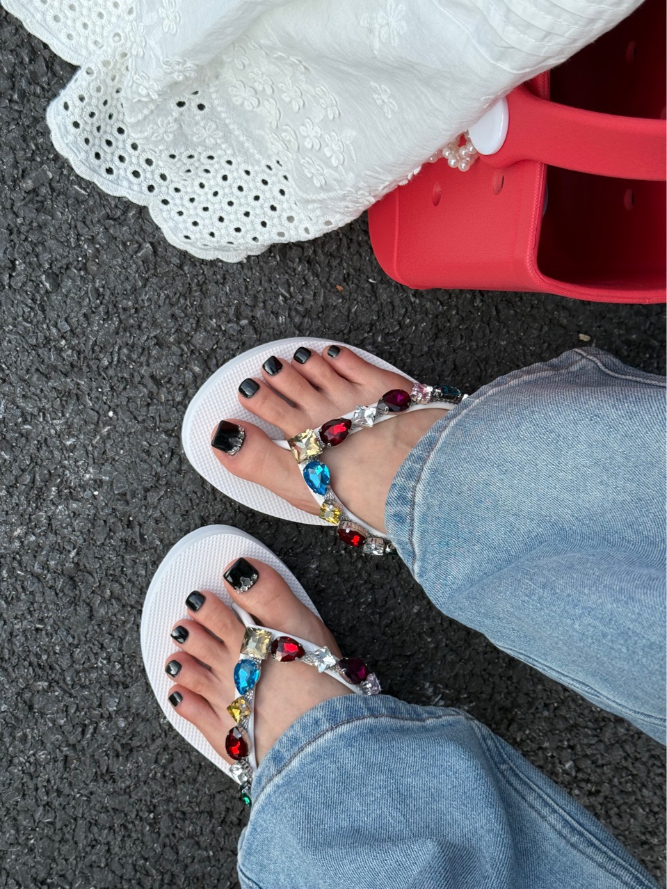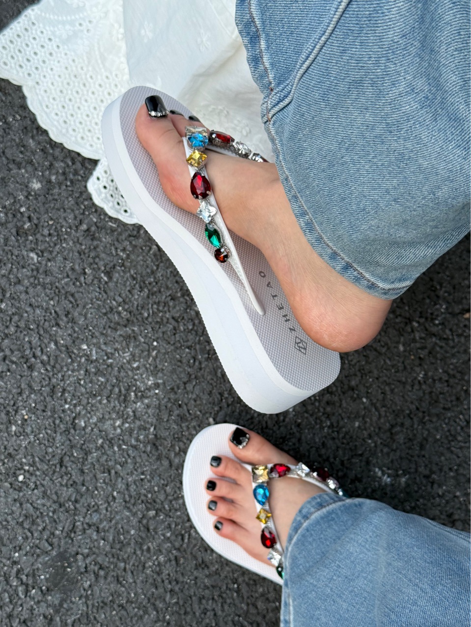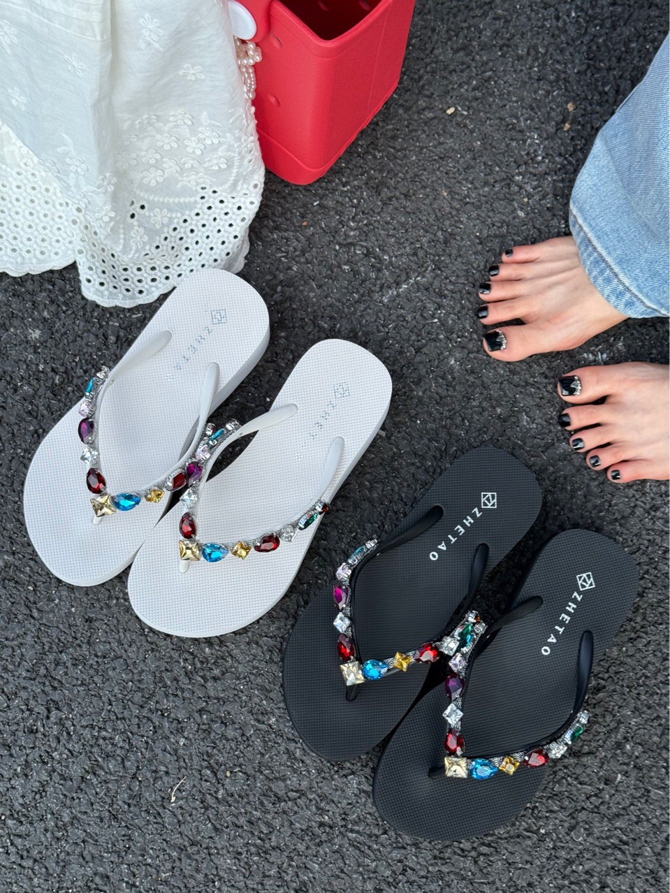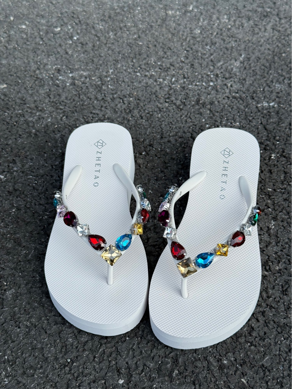 2025 새로운 컬러 라인 석 두꺼운 밑창 4cm 여성 슬리퍼 휴가 비치 샌들 미끄럼 방지 컬러 다이아몬드 플립 플롭스토어 가기