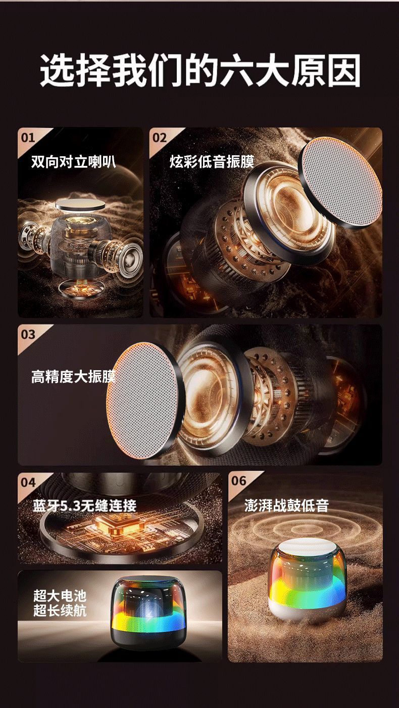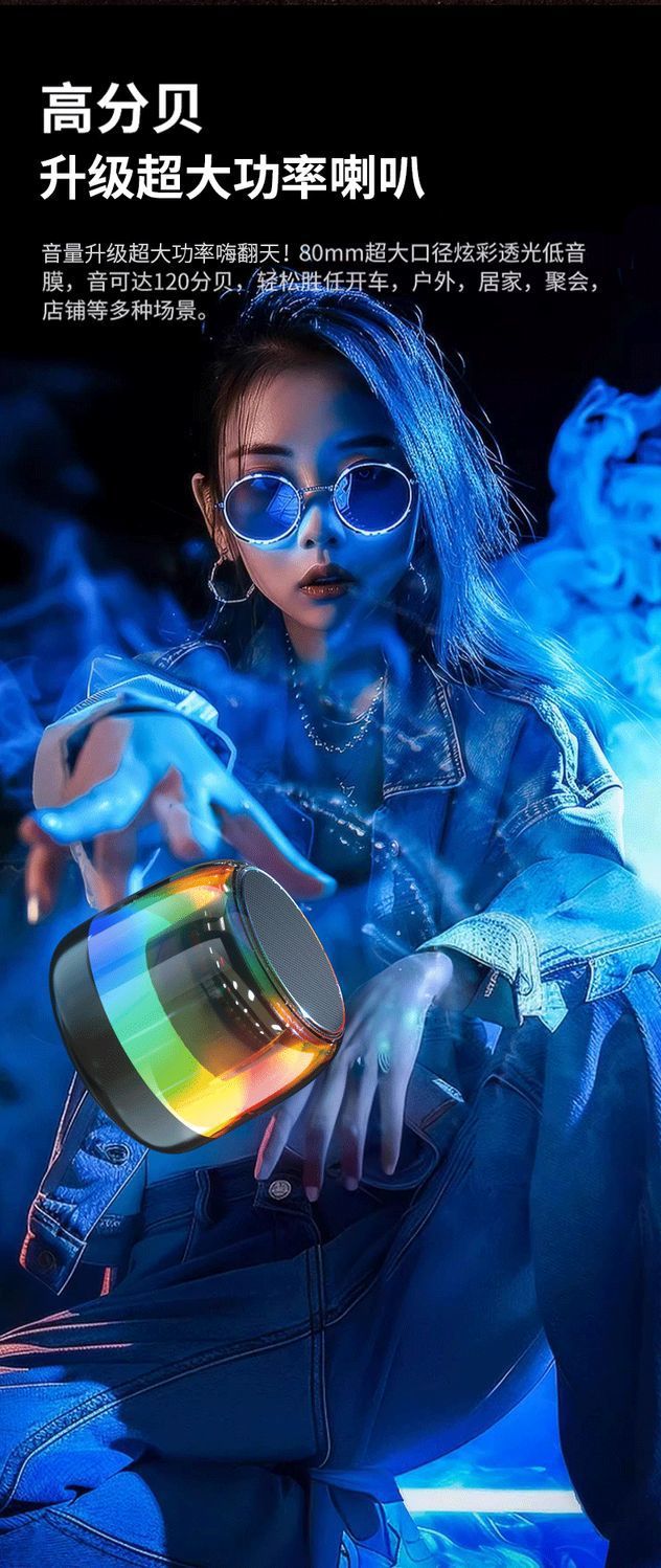 고품질의 소형 블루투스 스피커, 고품질, 슈퍼베이스, 매우 긴 실외 배터리 수명, 서브우퍼, 무선 스피커 RGB스토어 가기