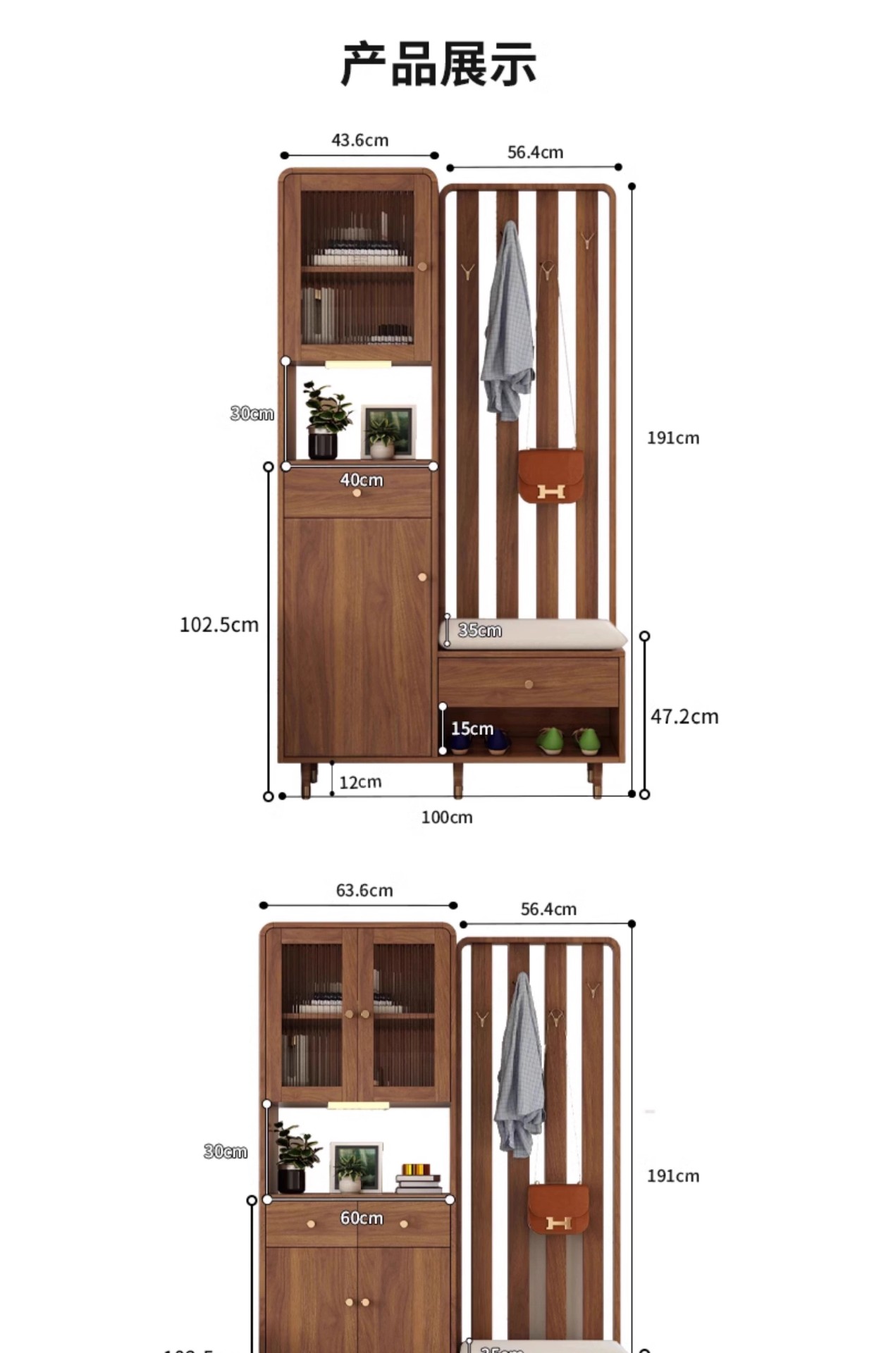 • [Supreme Solid Wood] 월넛 언어 013 오른쪽 현관 캐비닛 길이 100cm