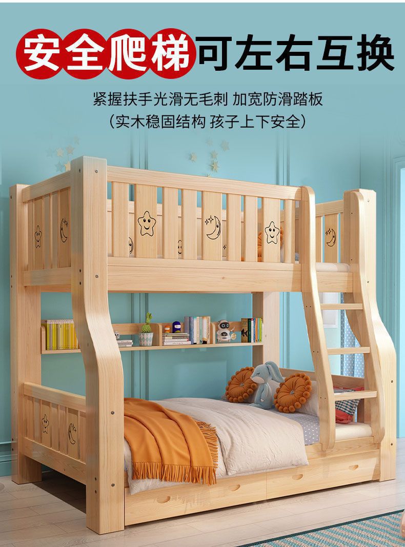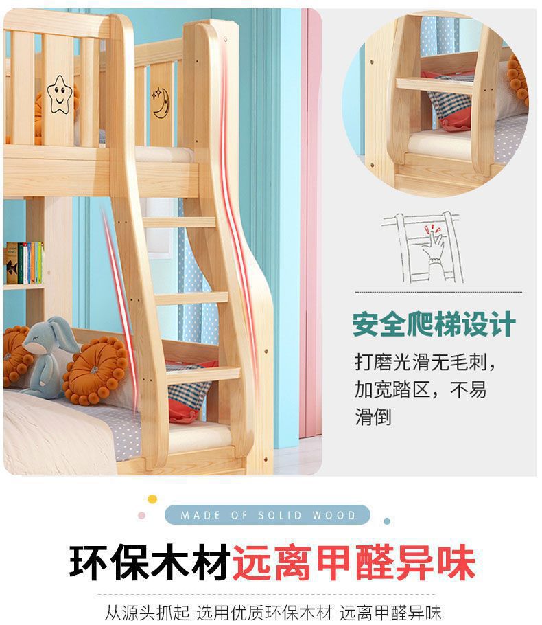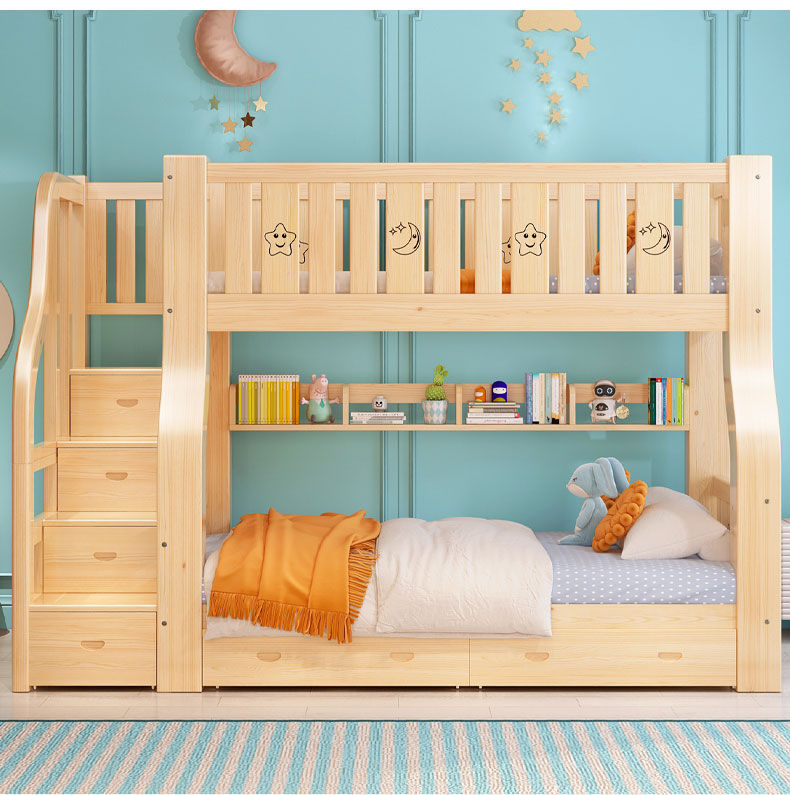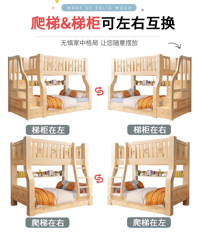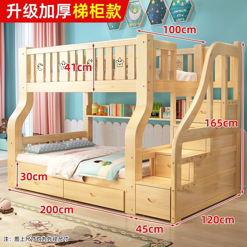 성인과 어린이를 위한 원목 이층침대, 이층침대, 가드레일이 있는 다기능 하이앤로우 침대, 이층침대스토어 가기