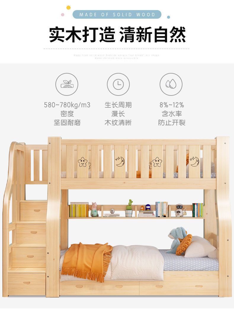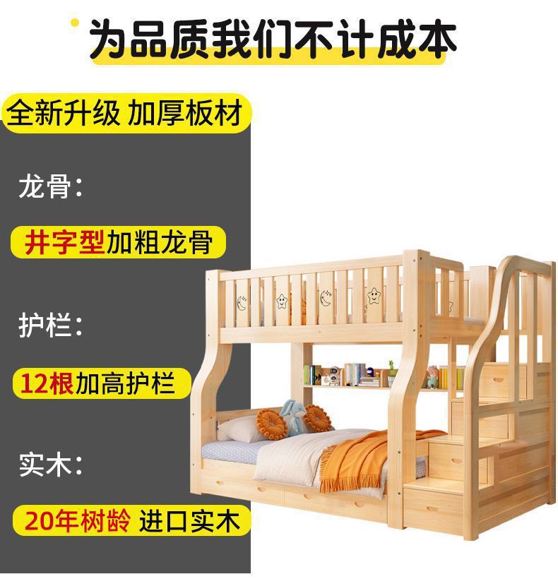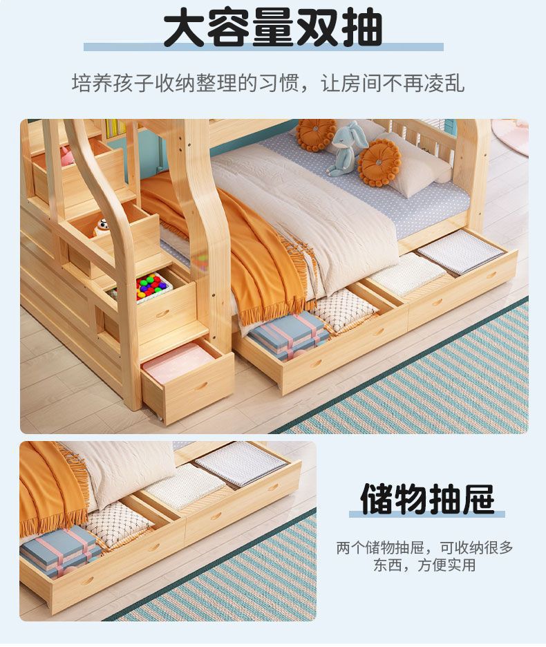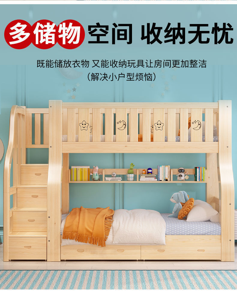 성인과 어린이를 위한 원목 이층침대, 이층침대, 가드레일이 있는 다기능 하이앤로우 침대, 이층침대스토어 가기