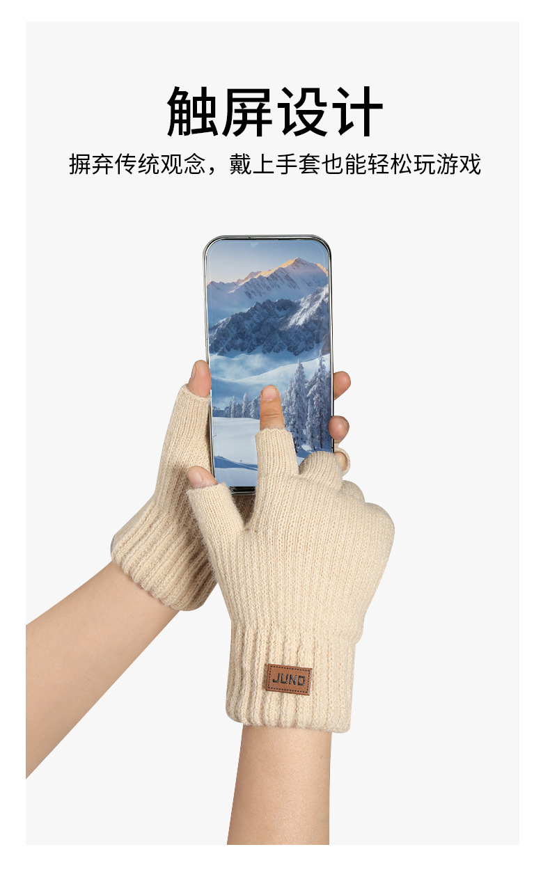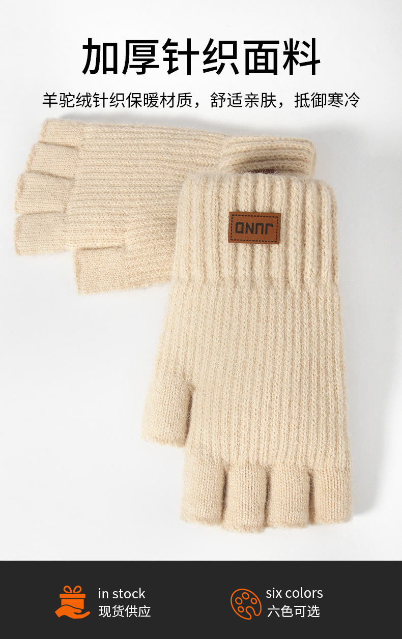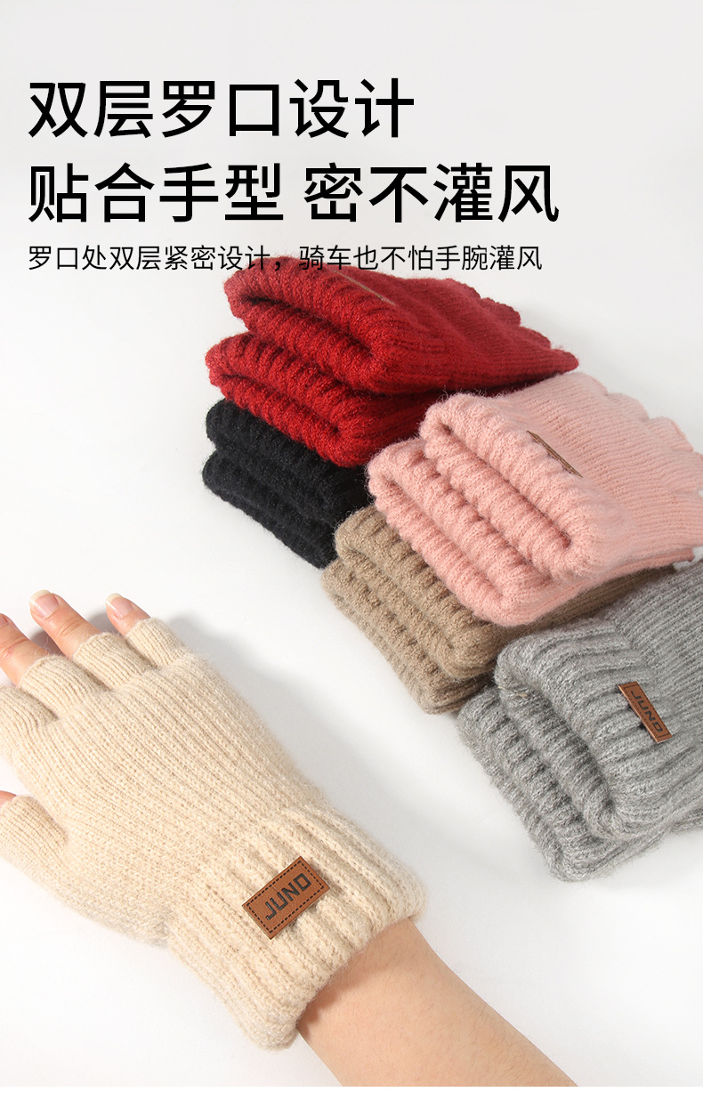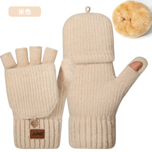 두꺼운 새는 손가락 장갑 가을, 겨울 플러스 벨벳 니트 방한 및 따뜻한 반 쓰기 양모 반 손가락 장갑