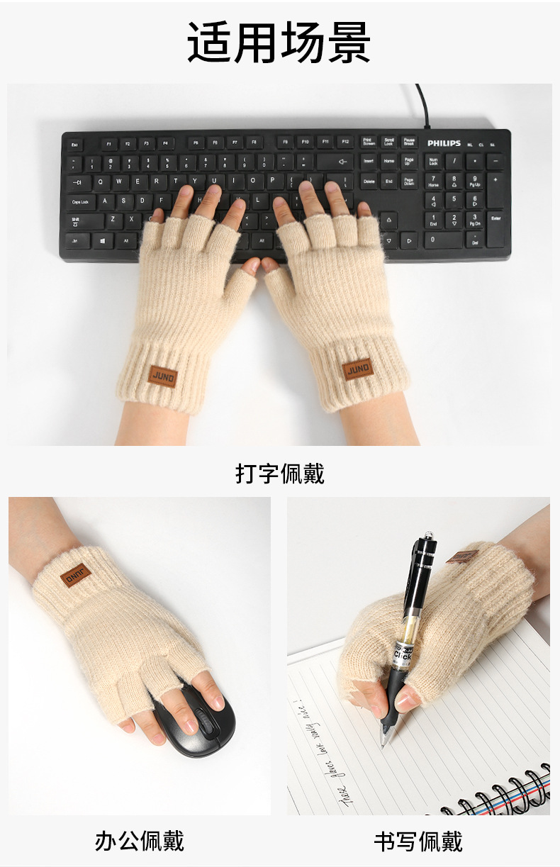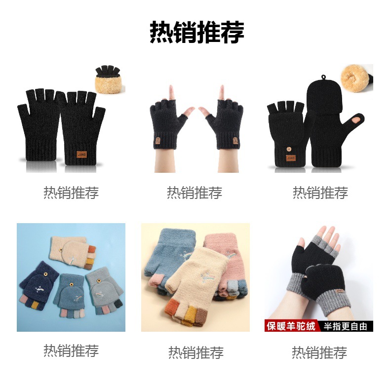 두꺼운 새는 손가락 장갑 가을, 겨울 플러스 벨벳 니트 방한 및 따뜻한 반 쓰기 양모 반 손가락 장갑스토어 가기