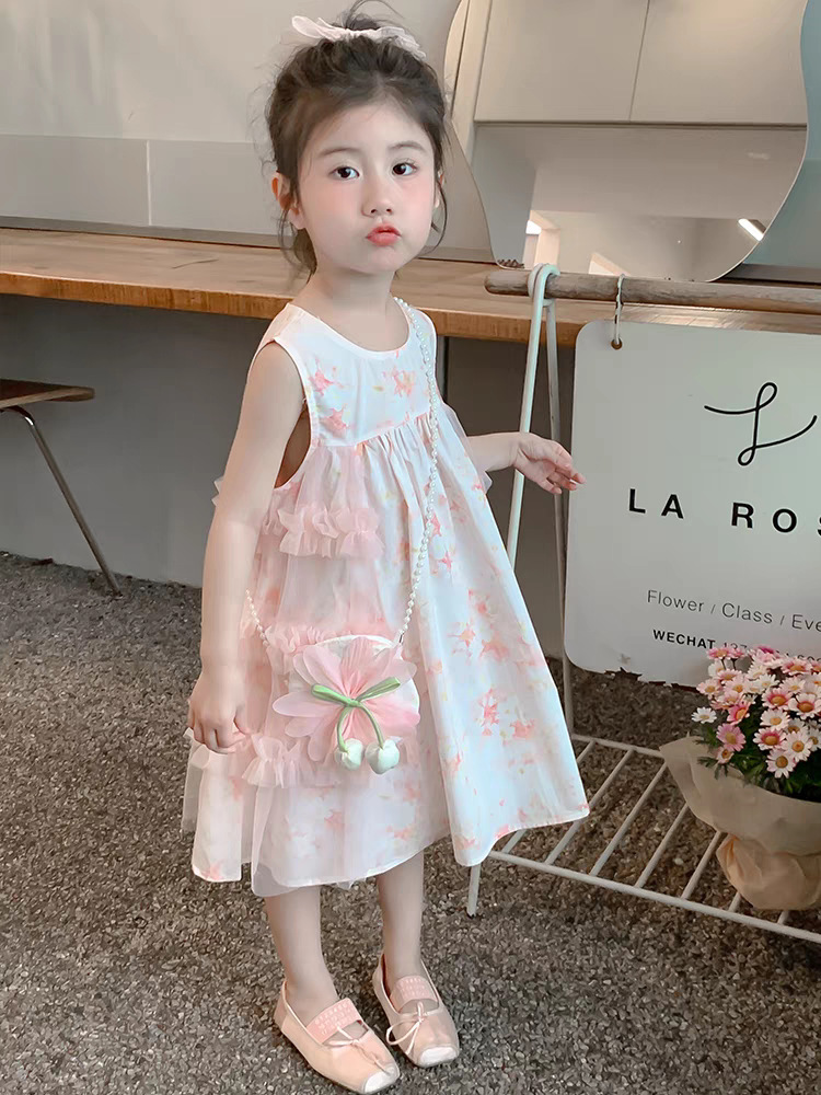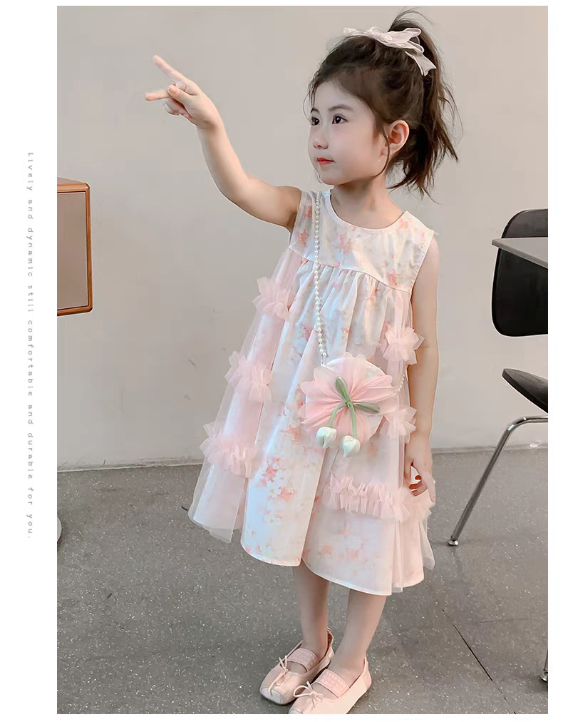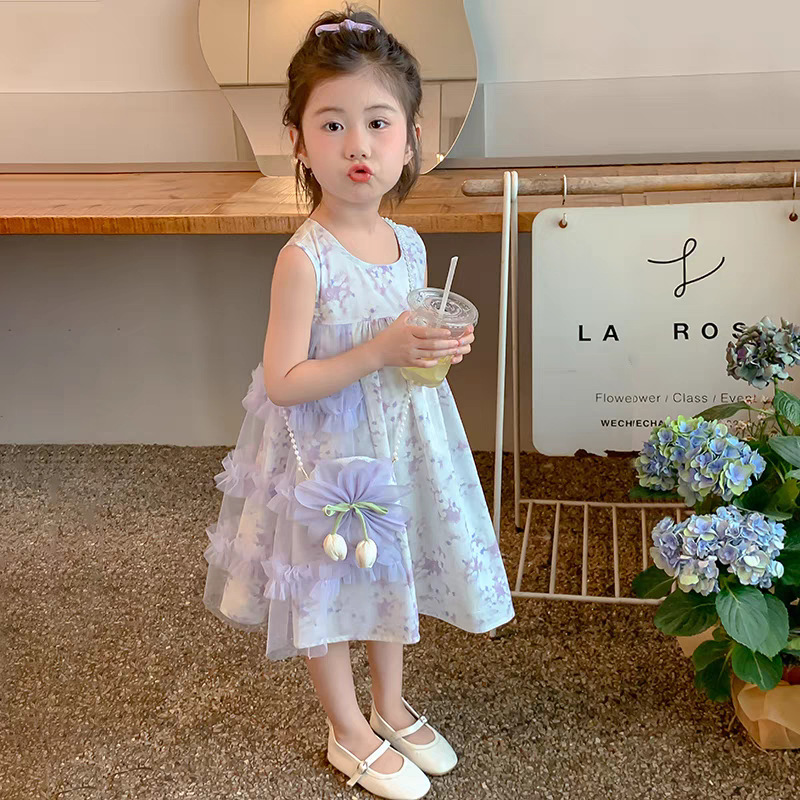 여자 드레스 여름 새로운 스타일 한국 스타일 꽃 어린 소녀 메쉬 공주 드레스 아기 소녀 조끼 드레스스토어 가기