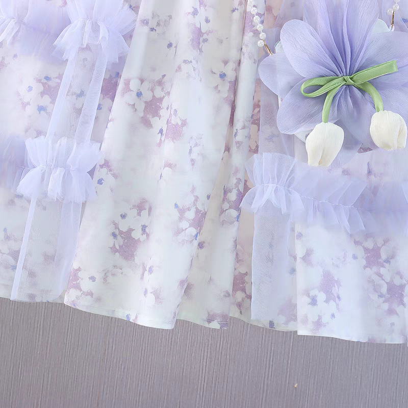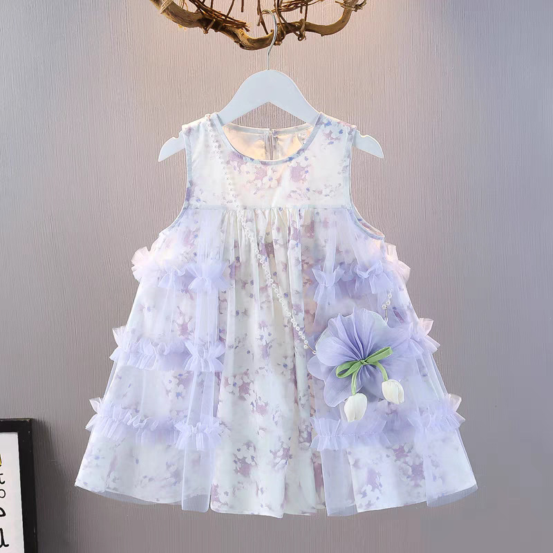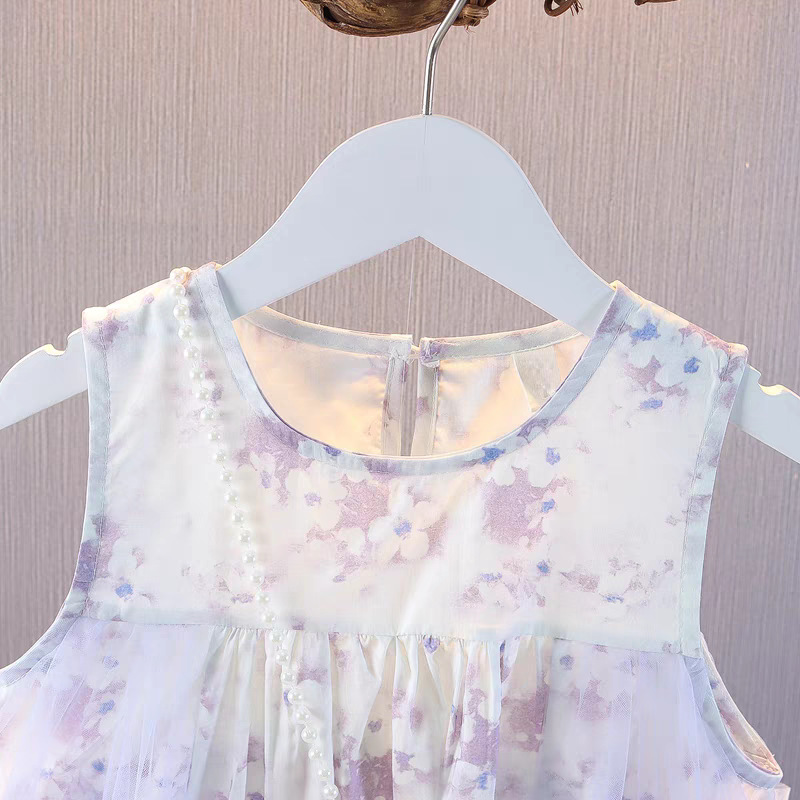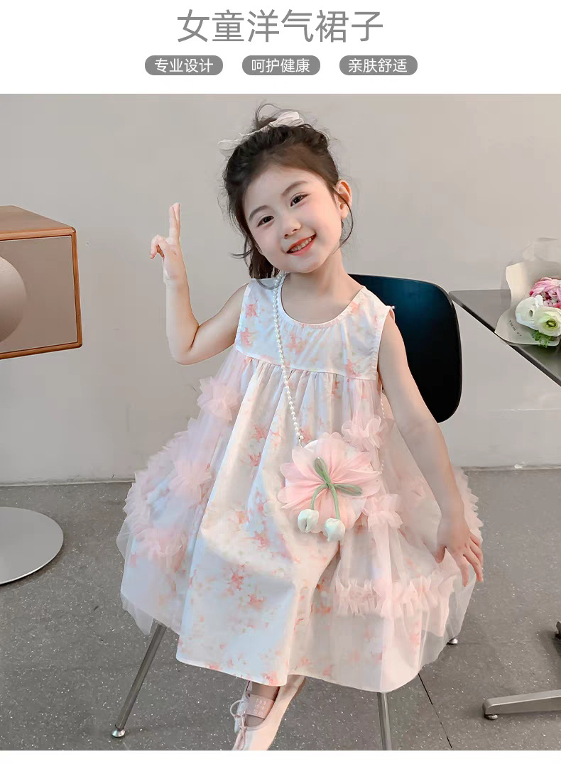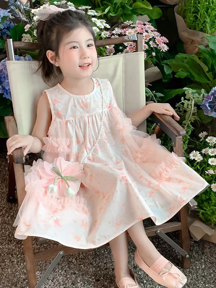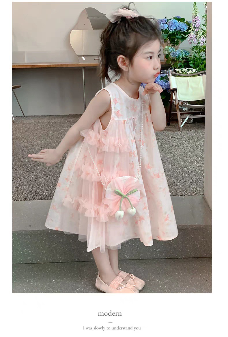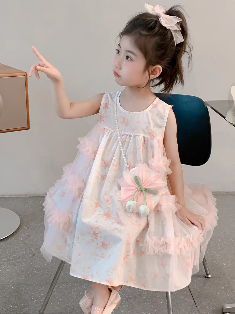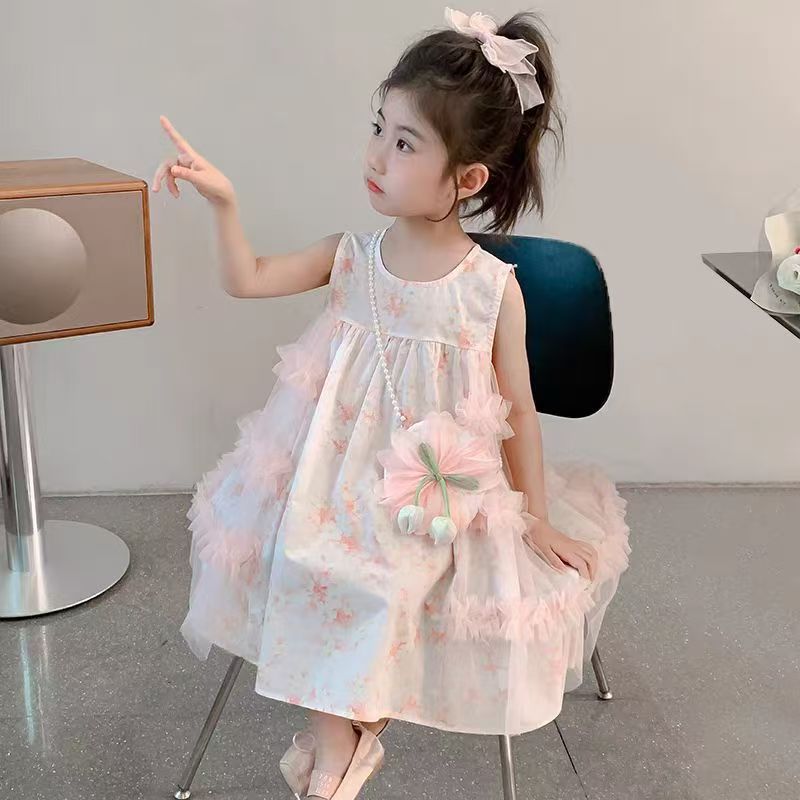 여자 드레스 여름 새로운 스타일 한국 스타일 꽃 어린 소녀 메쉬 공주 드레스 아기 소녀 조끼 드레스