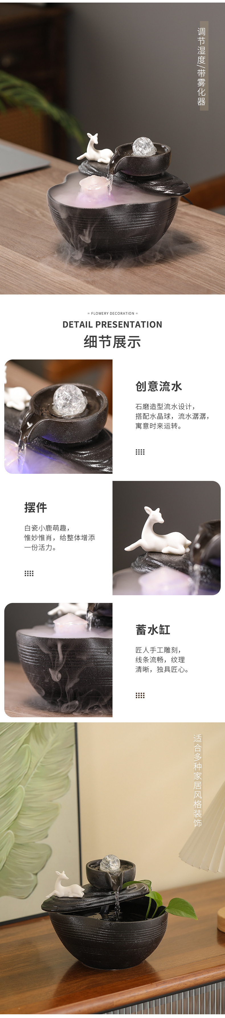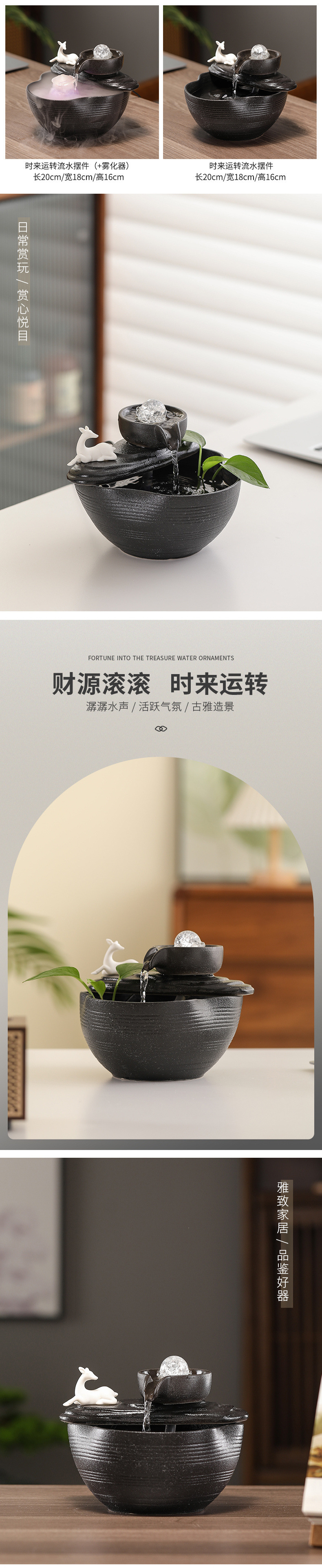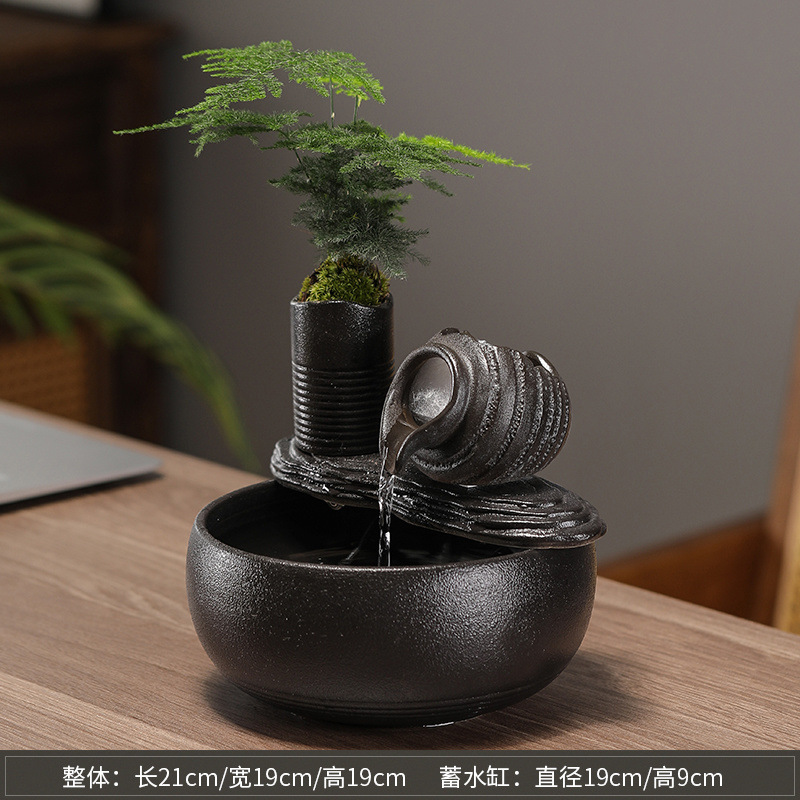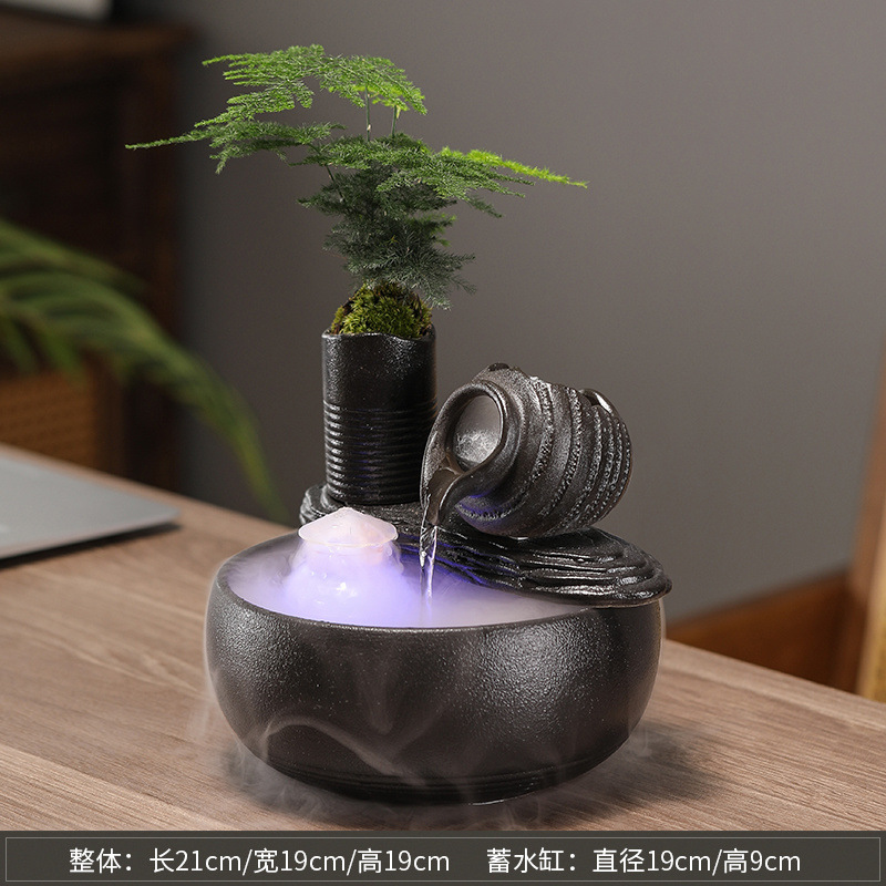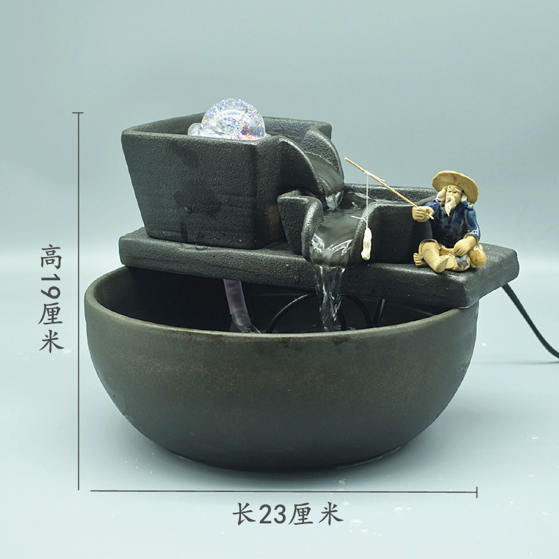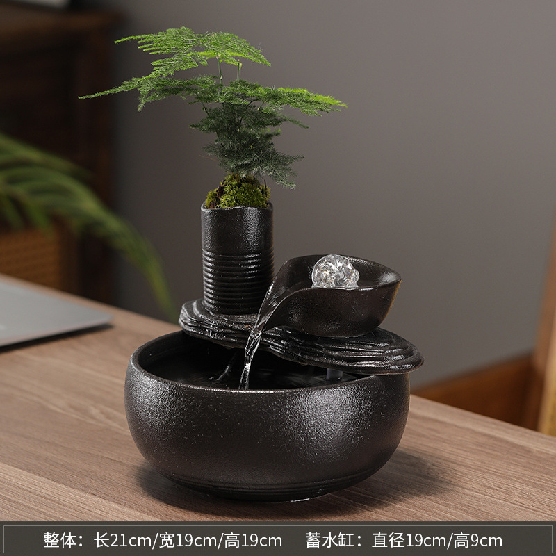 풍수 회전식 분수, 가짜 바위, 부를 끌어들이는 물고기 탱크, 홈 거실 오프닝 선물 장식 세라믹 장식품