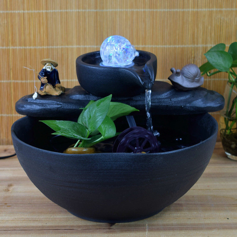풍수 회전식 분수, 가짜 바위, 부를 끌어들이는 물고기 탱크, 홈 거실 오프닝 선물 장식 세라믹 장식품스토어 가기
