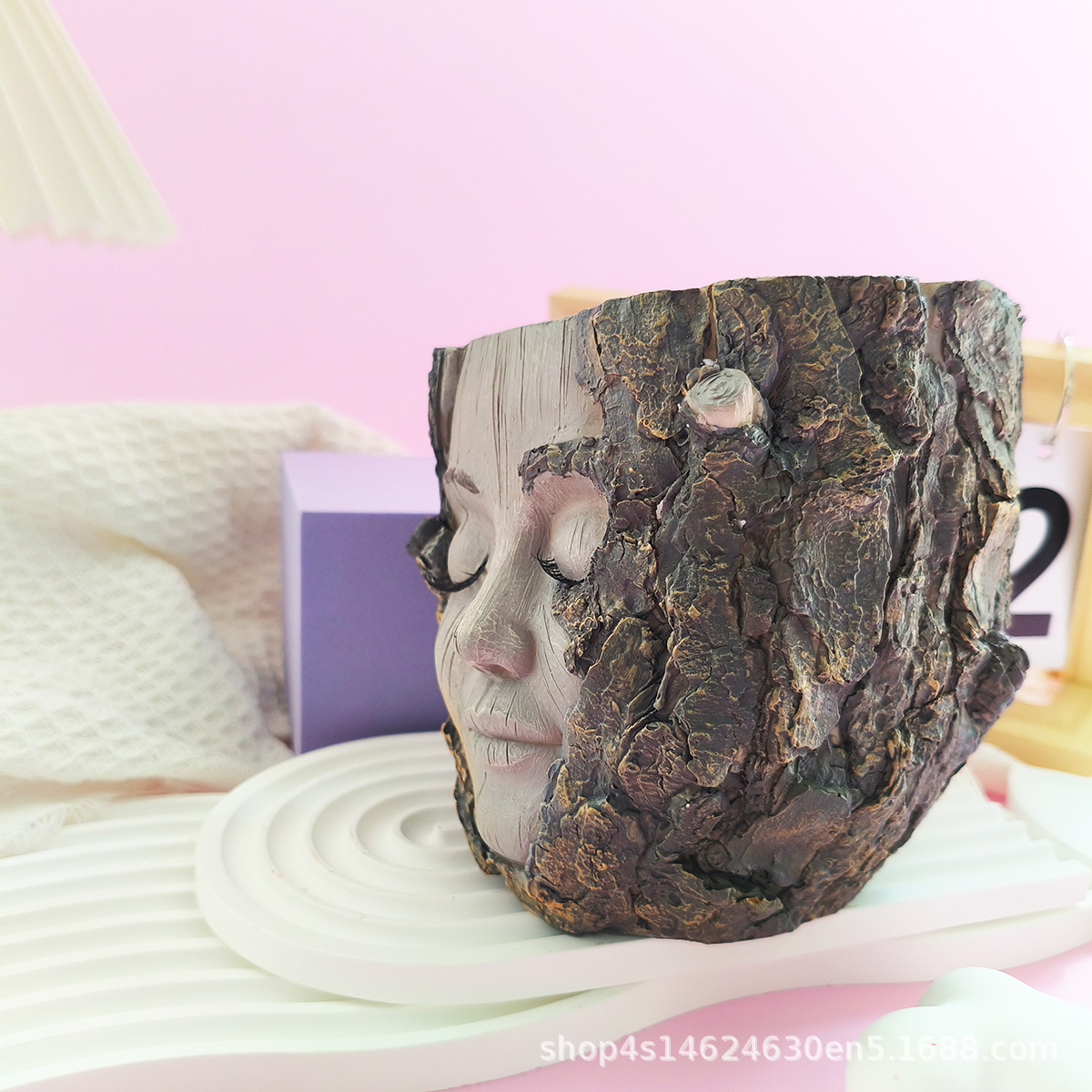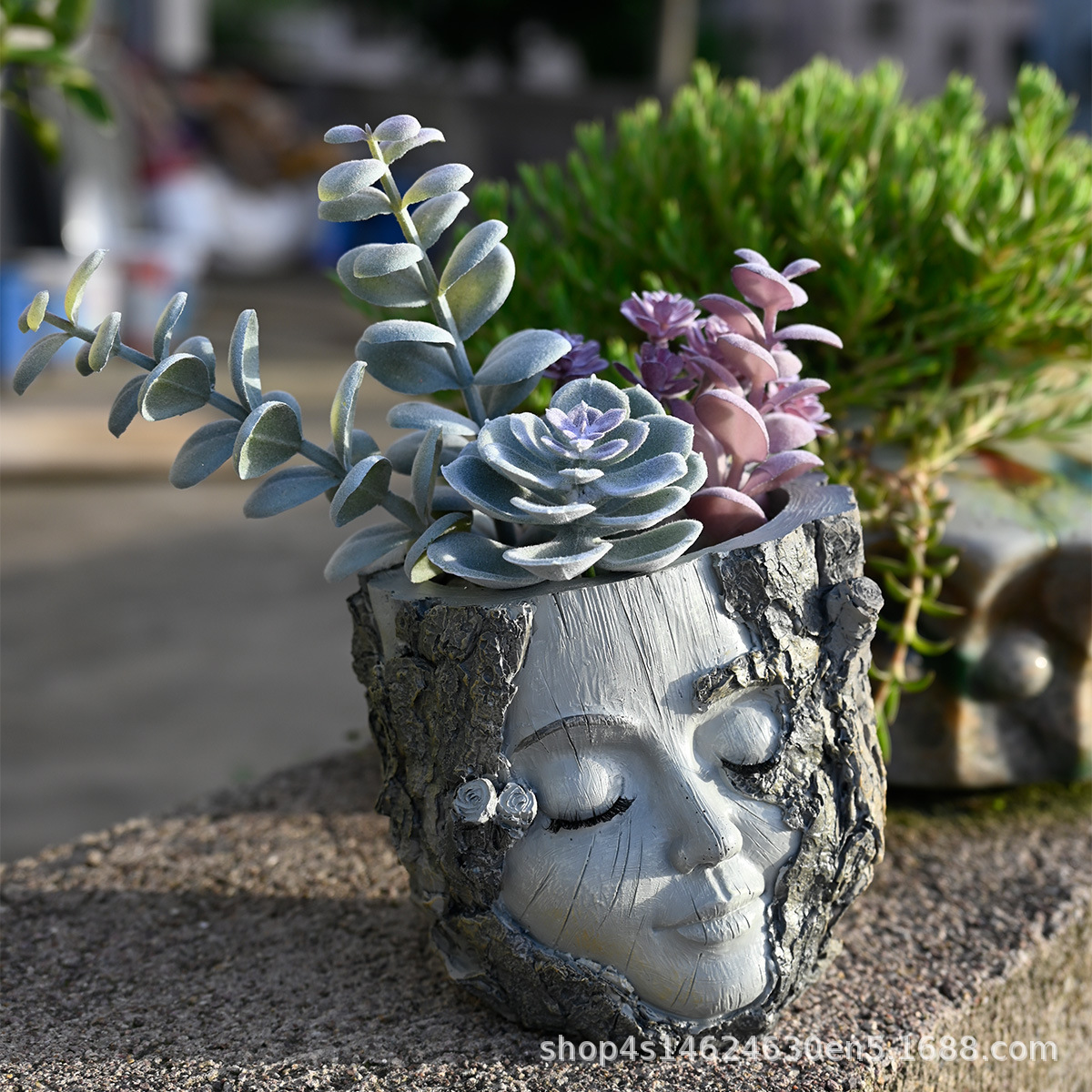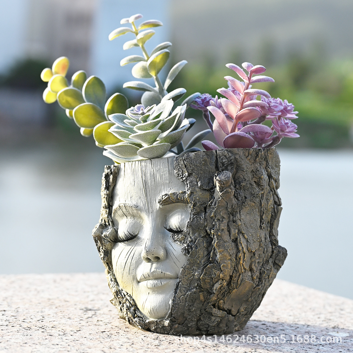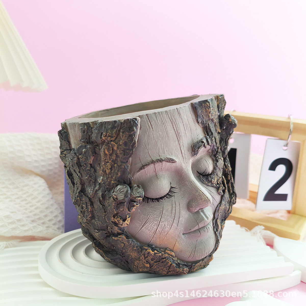 국경을 넘는 새로운 나무 뿌리 소녀 수지 공예 장식품 안뜰 장식 작은 장식품 정원 다육 화분 선물