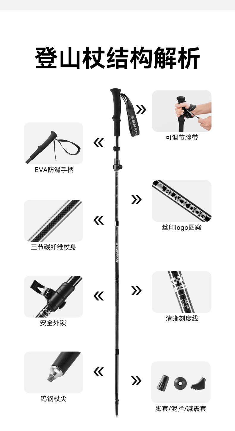 Blackdog 검은 개 트레킹 스틱 등산 지팡이 야외 하이킹 캠핑 탄소 초경량 텔레스코픽 지팡이스토어 가기