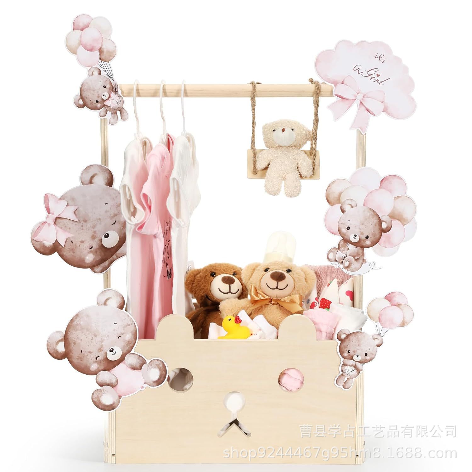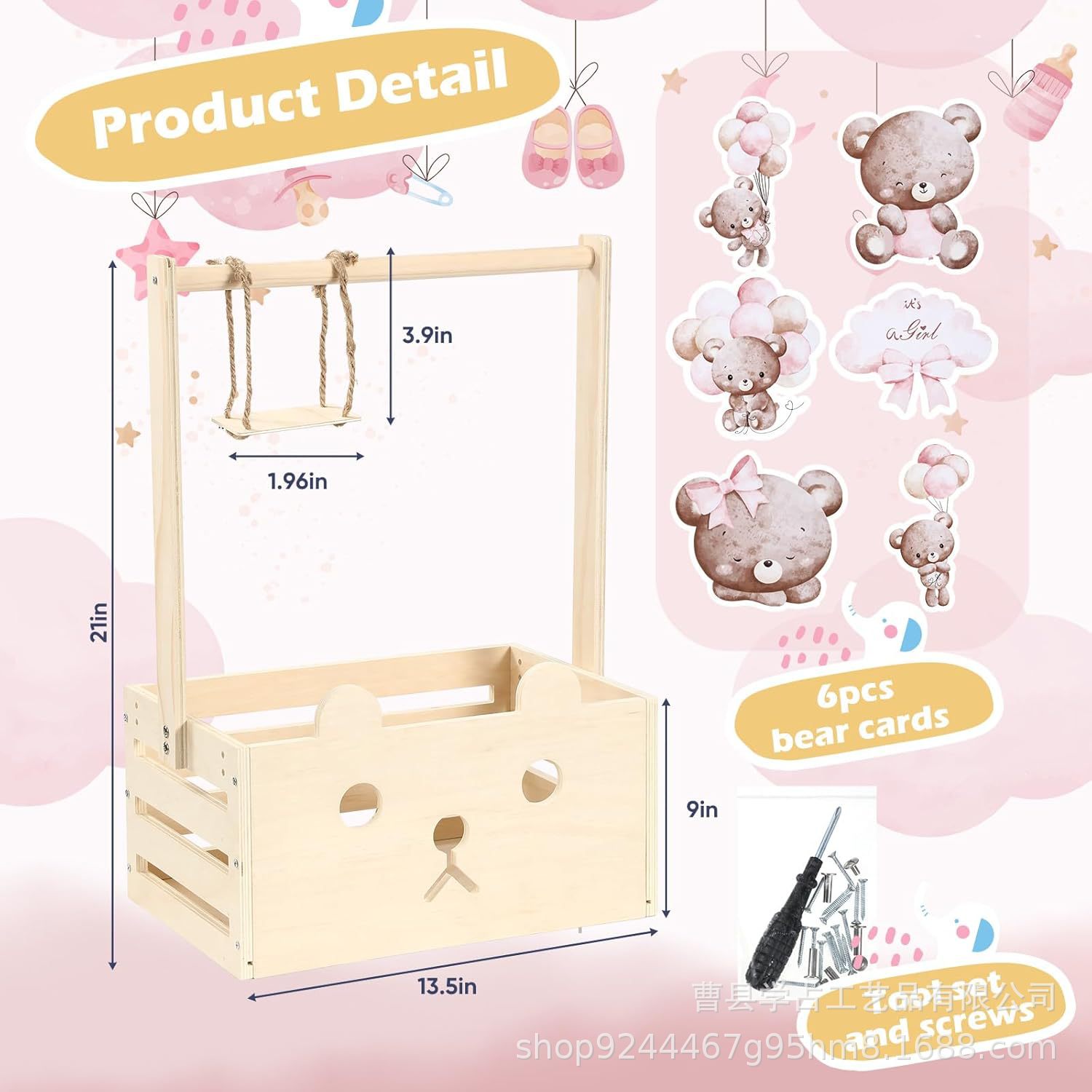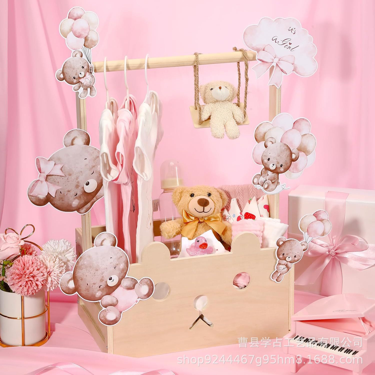 손잡이가있는 크로스 보더 신생아 의류 나무 보관 상자 가정용 휴대용 단단한 나무 베이비 샤워 용품 보관 바구니