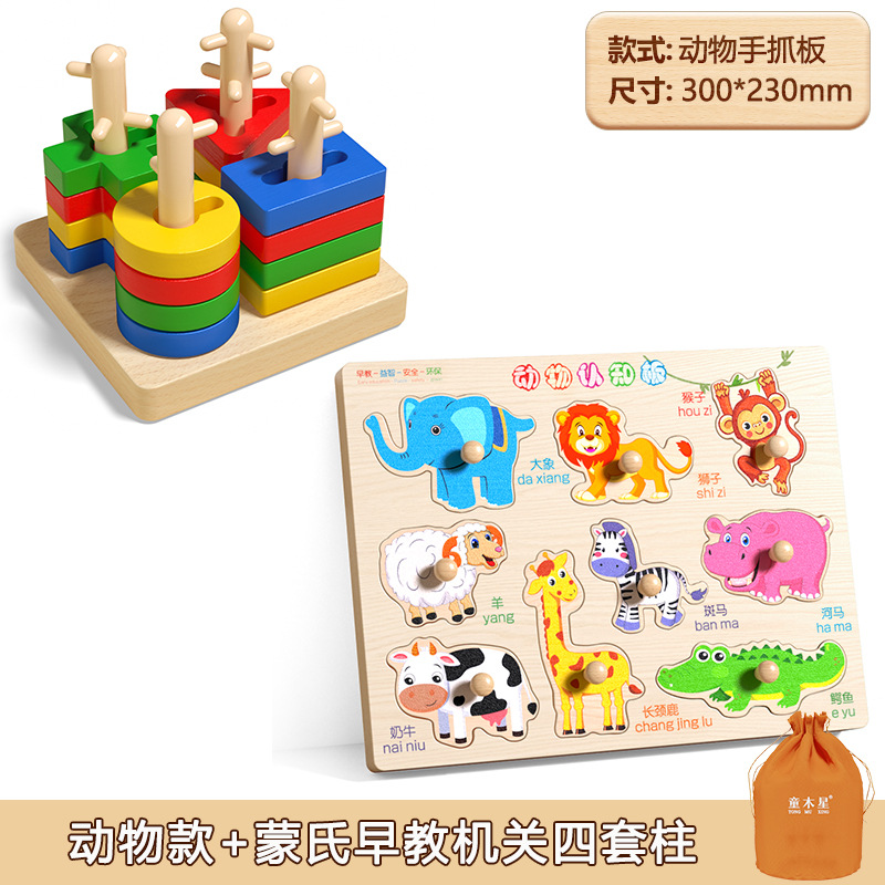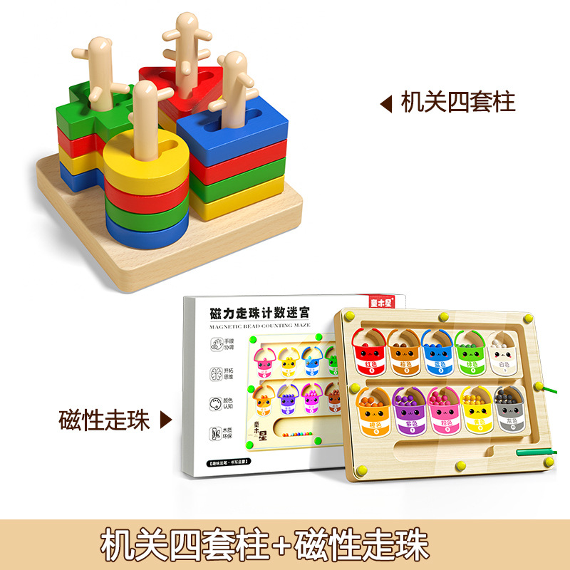 • 몬테소리 조기 교육 기관 4개 기둥 세트 + 자기 펜 그립 훈련 집중 장난감