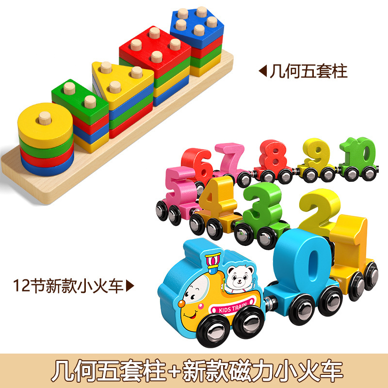 • 몬테소리 조기 교육 기하학 기둥 5세트 + [12개 섹션] 새로운 목재 자기 디지털 열차