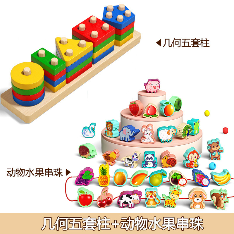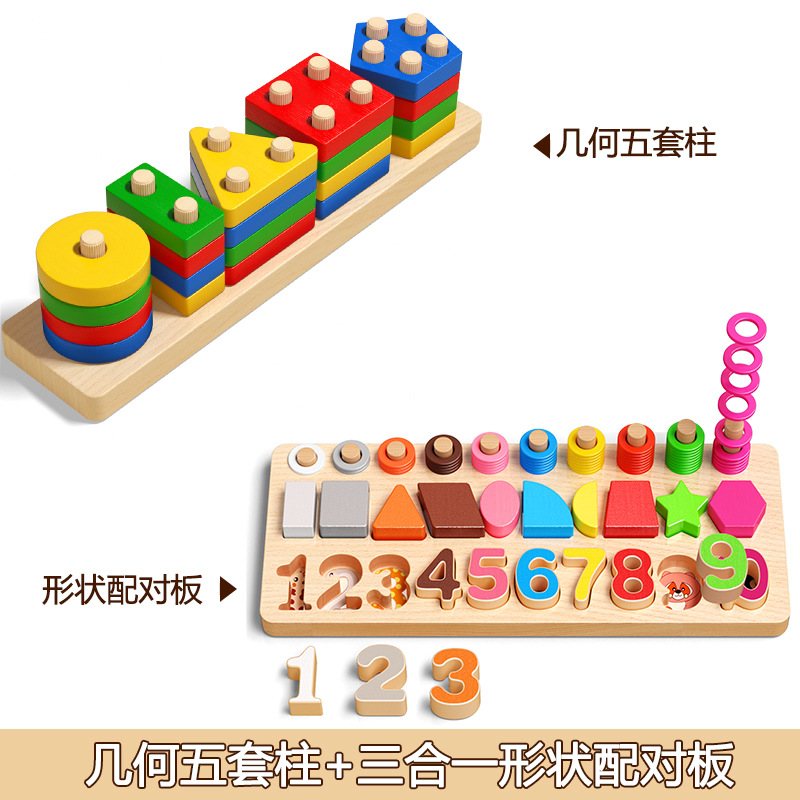 • 몬테소리 조기 교육 기하학 5세트 기둥 + 5-in-1 5-in-1 매칭 보드