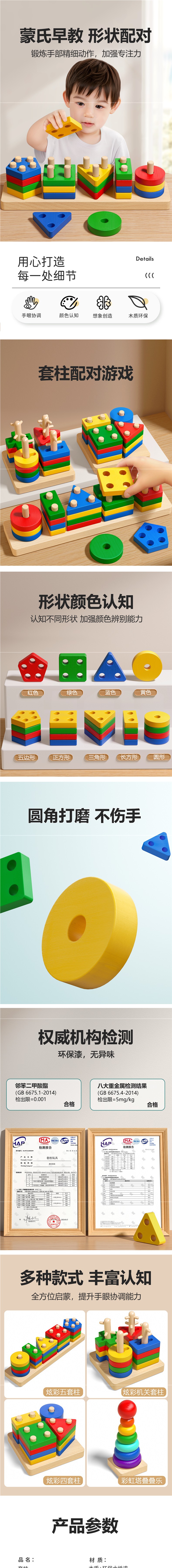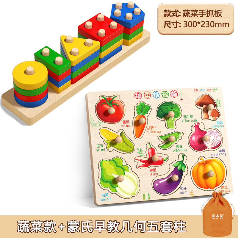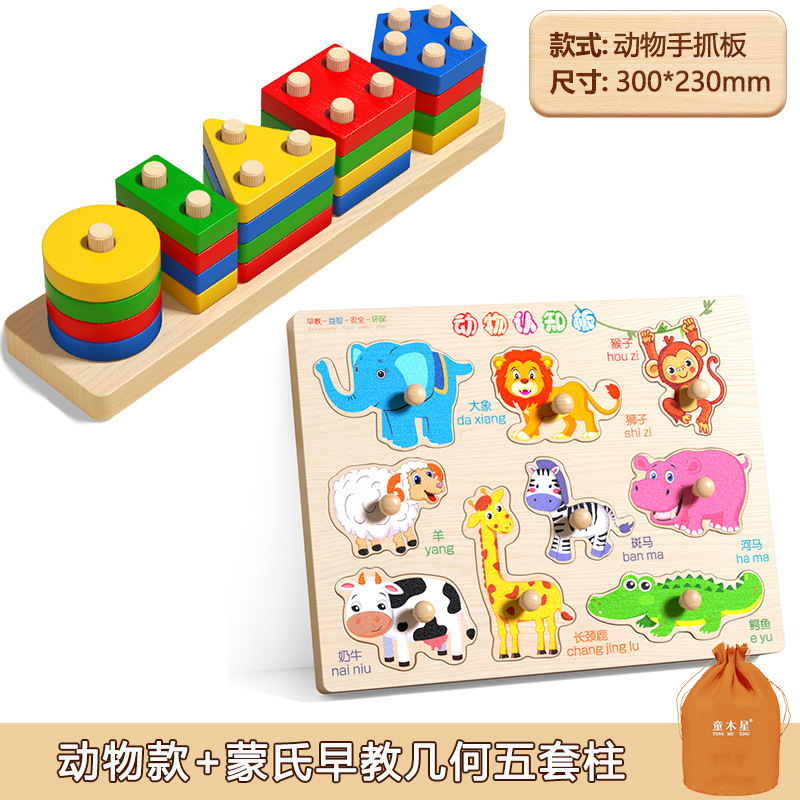 몬테소리 기하학 세트 기둥 장난감 모양 일치 빌딩 블록 유아 및 어린이 조기 교육 교육 계발 교육 보조 3 ~ 4-5 세스토어 가기