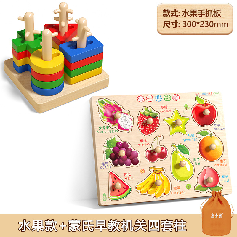 • 과일 스타일 [11가지 과일 퍼즐 + 베이스 플레이트] 수납 가방 + 몬테소리 조기 교육 장치 4개 포함