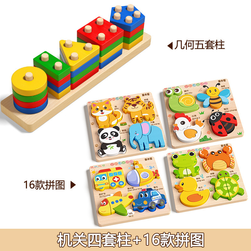 • 몬테소리 조기 교육 기하학 기둥 5세트 + 퍼즐 16개 완전한 세트