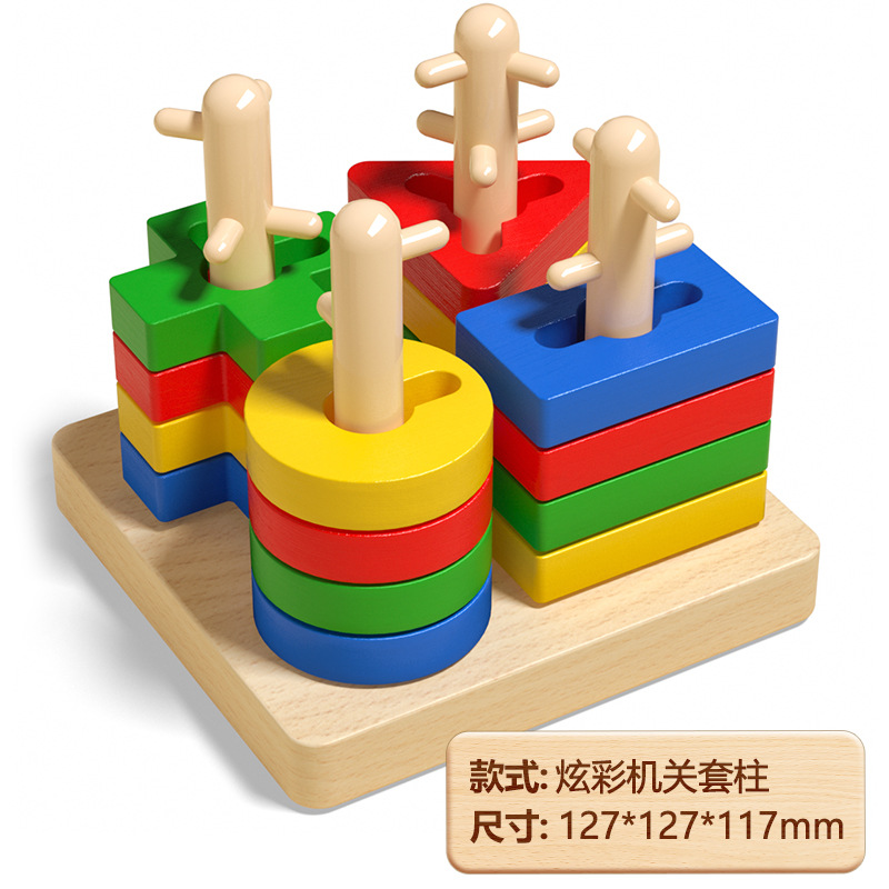 몬테소리 기하학 세트 기둥 장난감 모양 일치 빌딩 블록 유아 및 어린이 조기 교육 교육 계발 교육 보조 3 ~ 4-5 세
