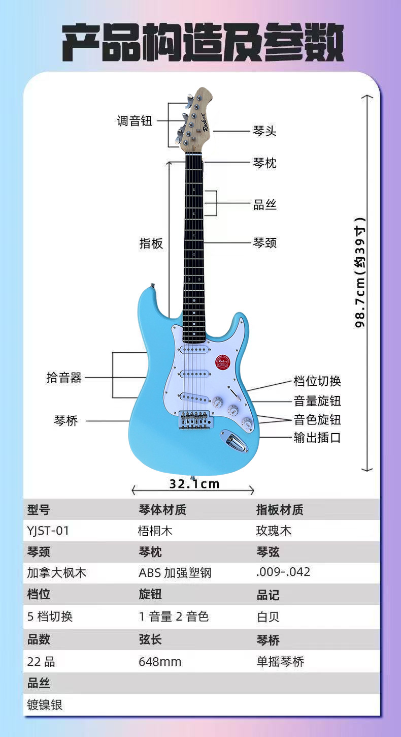 일렉트릭 기타 펜타일러블 스타일 ST 일렉트릭 기타 초보자용 도매 남성 전용 기타 여성 전용 록 기타