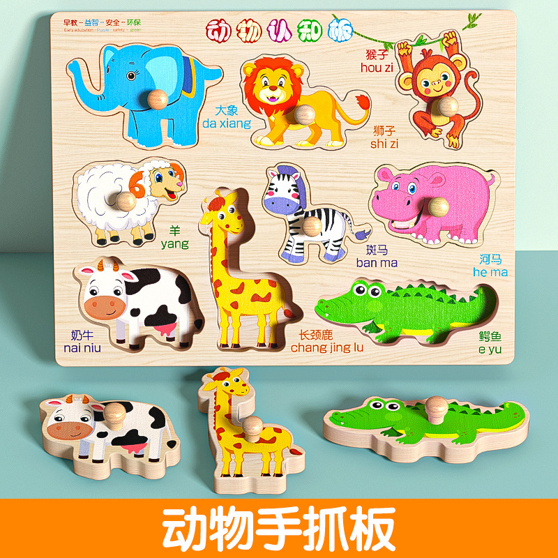1세 및 3세 유아 및 어린이를 위한 몬테소리 조기 교육용 핸드 스크래치 보드 퍼즐, 기하학적 인지 매칭 교육용 빌딩 블록 장난감스토어 가기