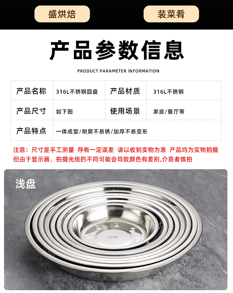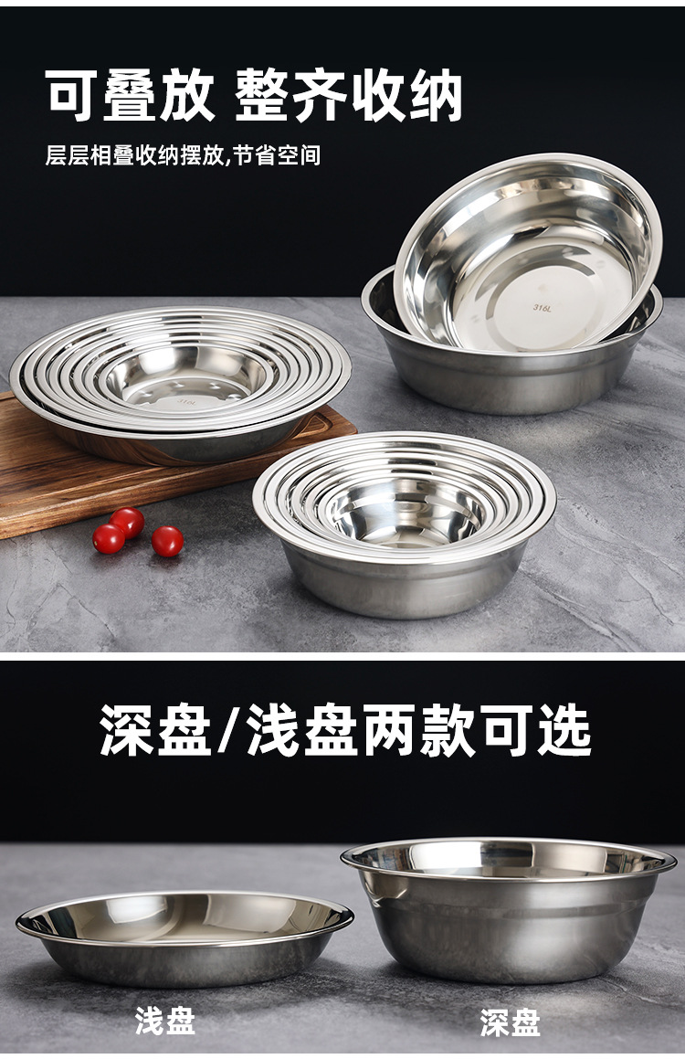 316 스테인레스 스틸 원형 접시, 수프 접시, 수프 그릇, 플랫 접시, 홈 다이닝 접시, 대형 수프 그릇, 유치원 스낵 접시스토어 가기