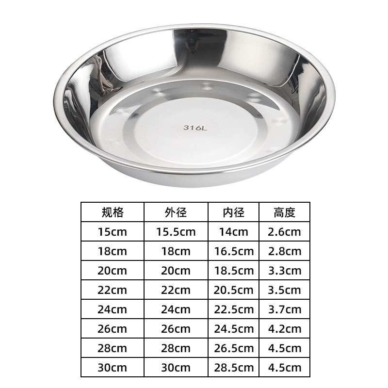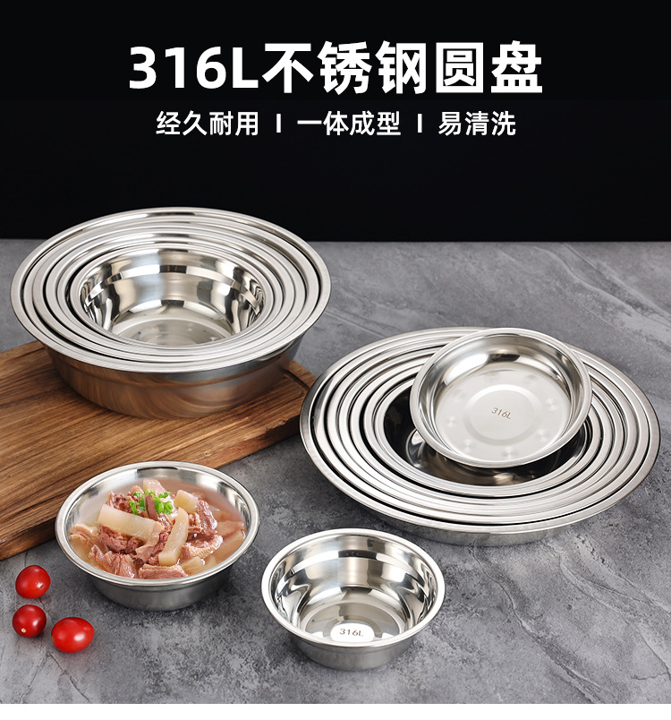 316 스테인레스 스틸 원형 접시, 수프 접시, 수프 그릇, 플랫 접시, 홈 다이닝 접시, 대형 수프 그릇, 유치원 스낵 접시