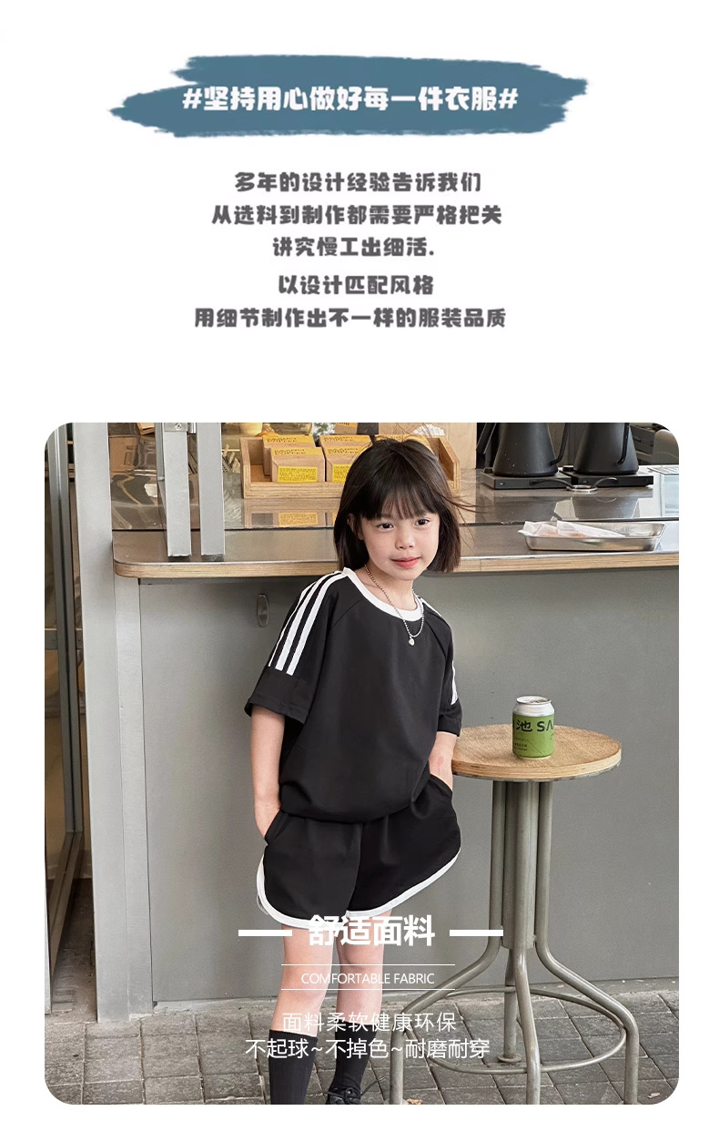 국경 간 소녀 한국 여름 정장 어린이 여름 스타일 스포츠 의류 큰 어린이를위한 반팔 반바지 투피스 세트스토어 가기