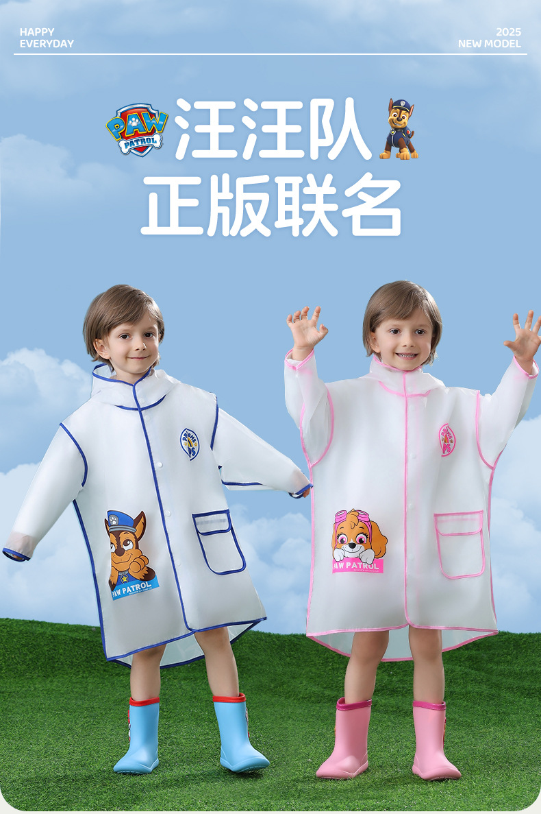 Paw Patrol 정품 어린이 비옷 소년과 소녀 2025 새로운 방수 및 방수 학생 아기 판초 유치원스토어 가기