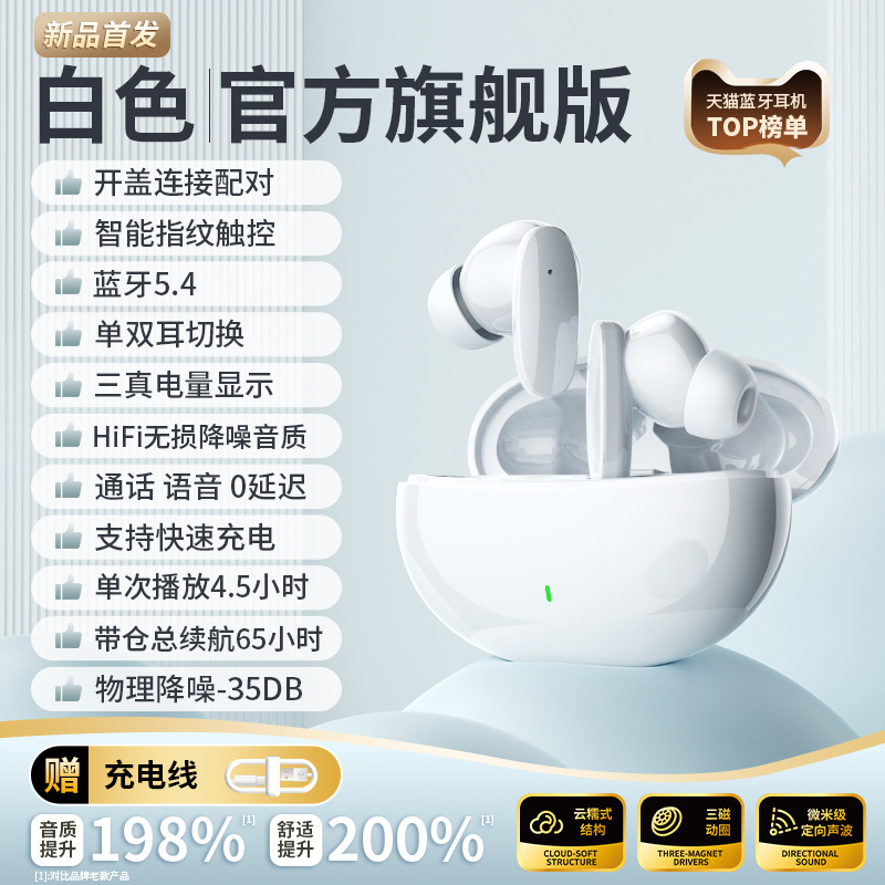 • 상위 버전 [배터리 수명 200% 증가★돌비 공간 오디오★-45DB 딥 노이즈 감소】화이트