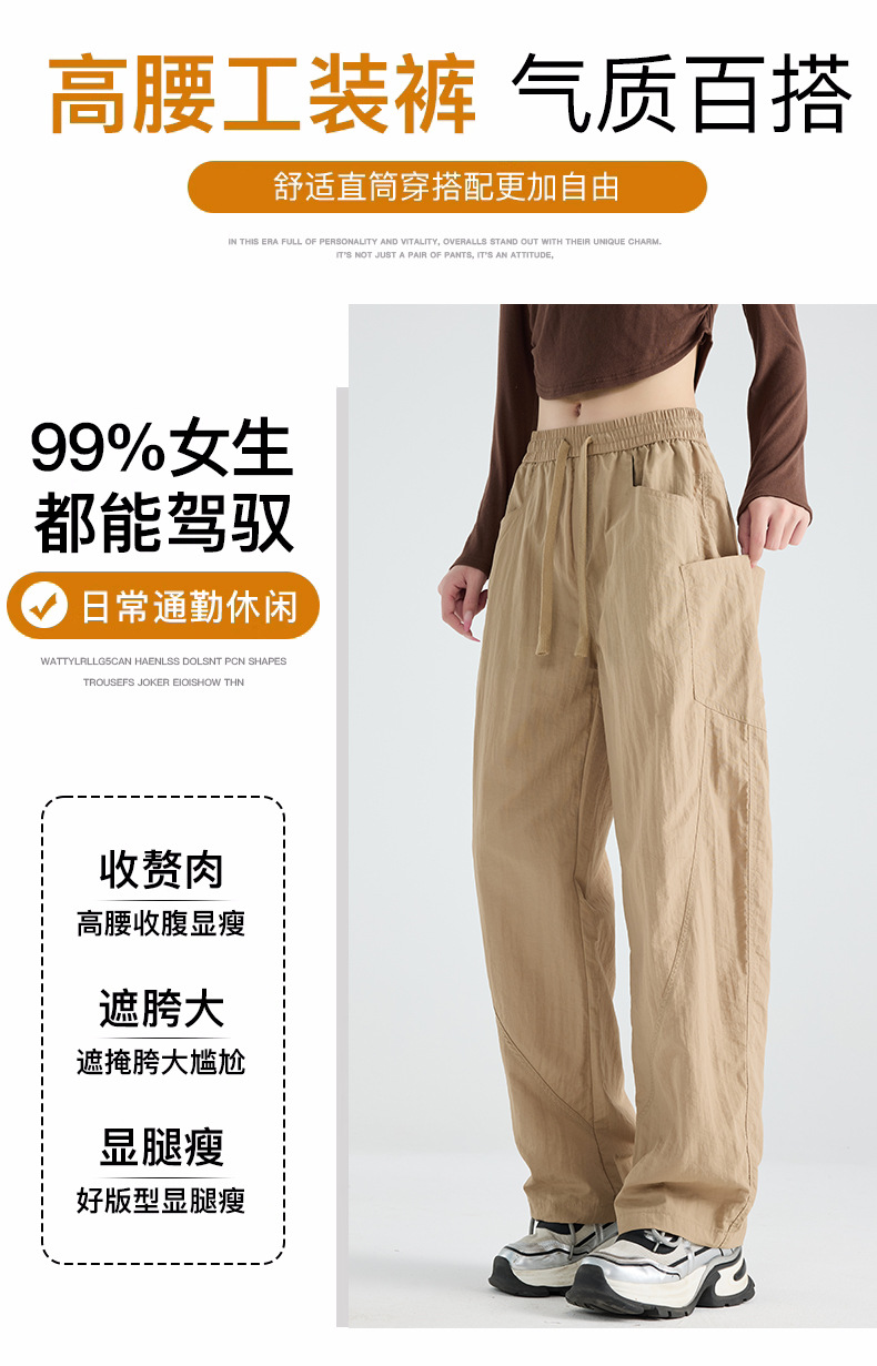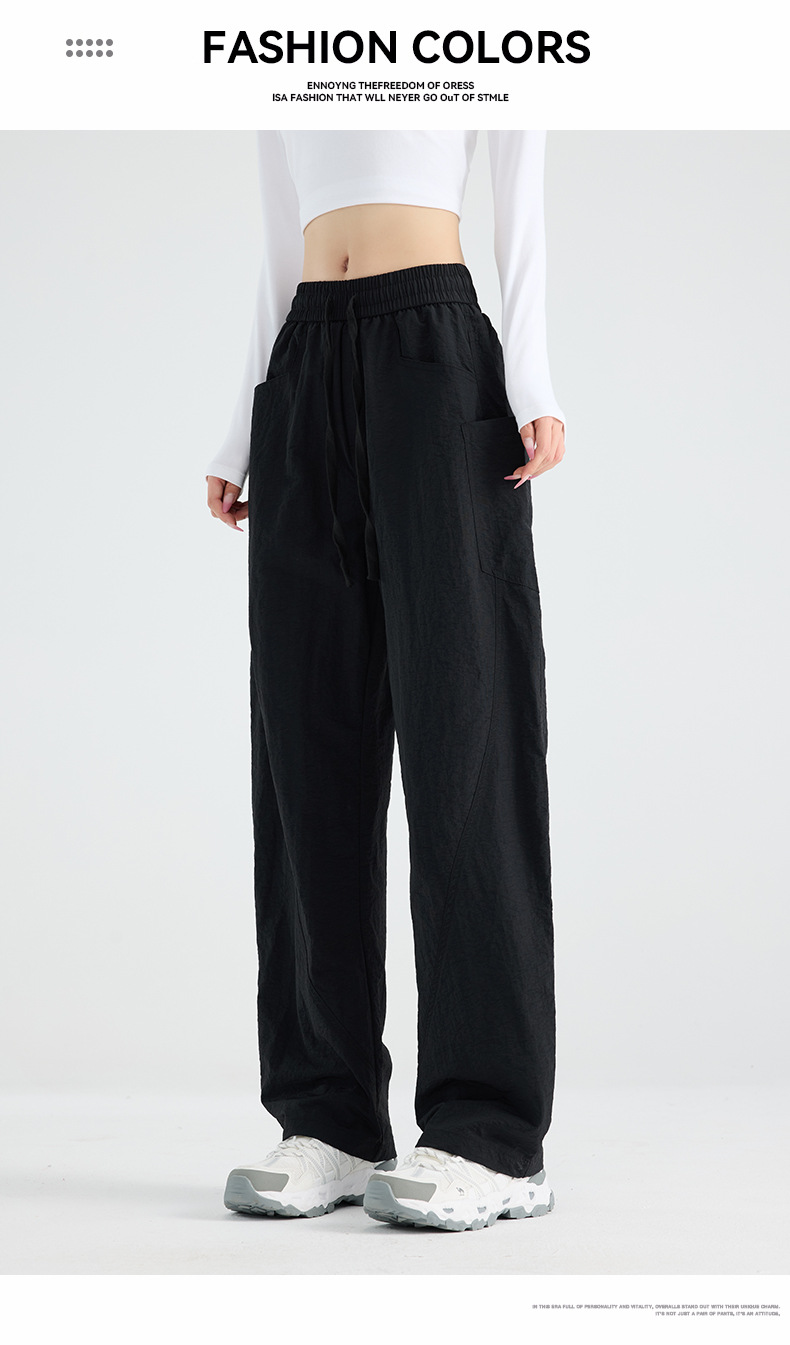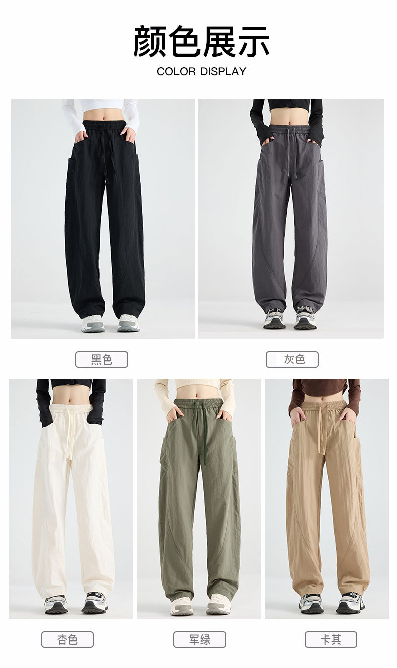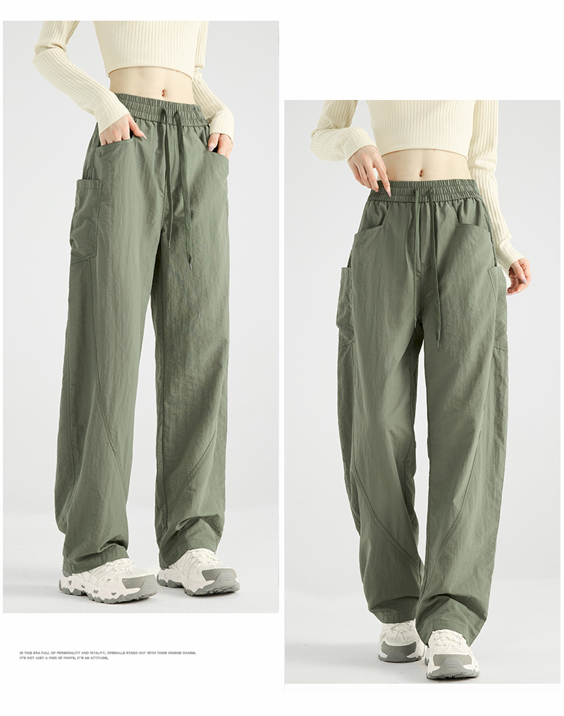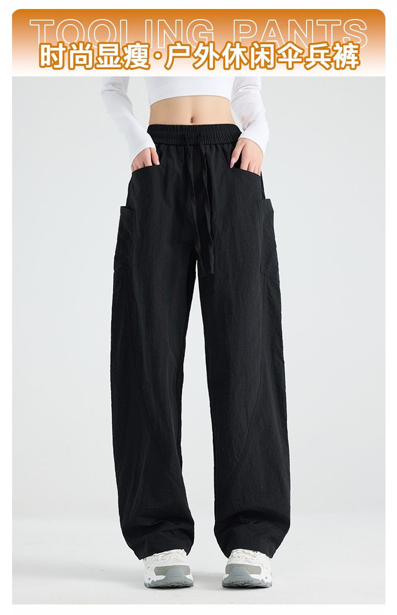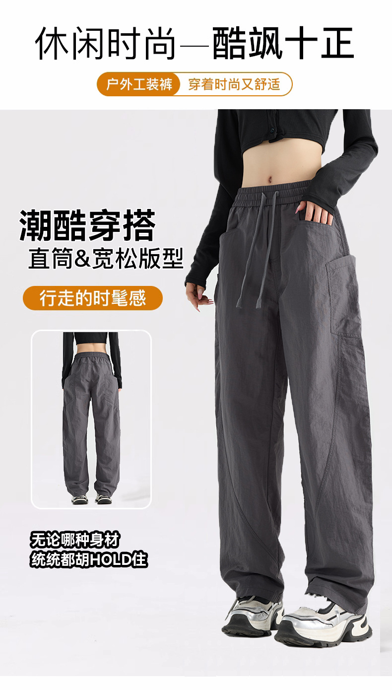 여성용 블랙 오버올 2025 새로운 칼바늘 바지 얇은 느슨한 방풍 및 방수 등산 여름 스트레이트 와이드 레그 팬츠스토어 가기