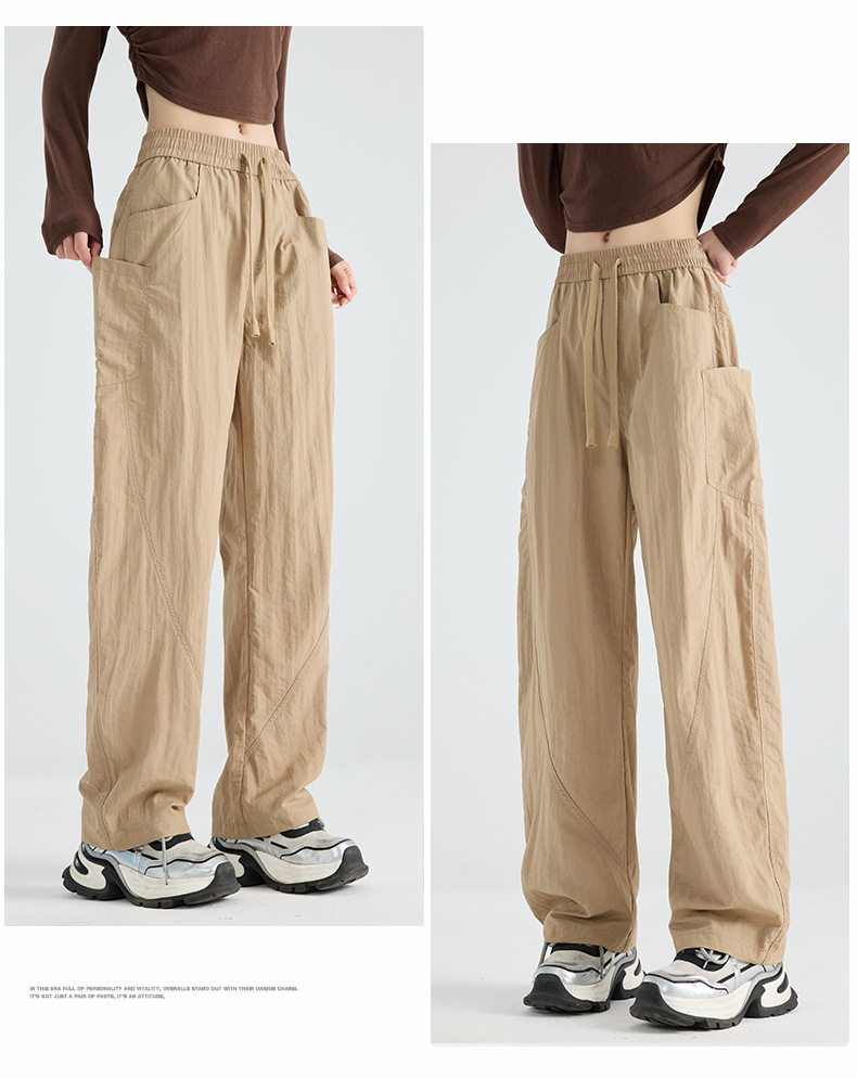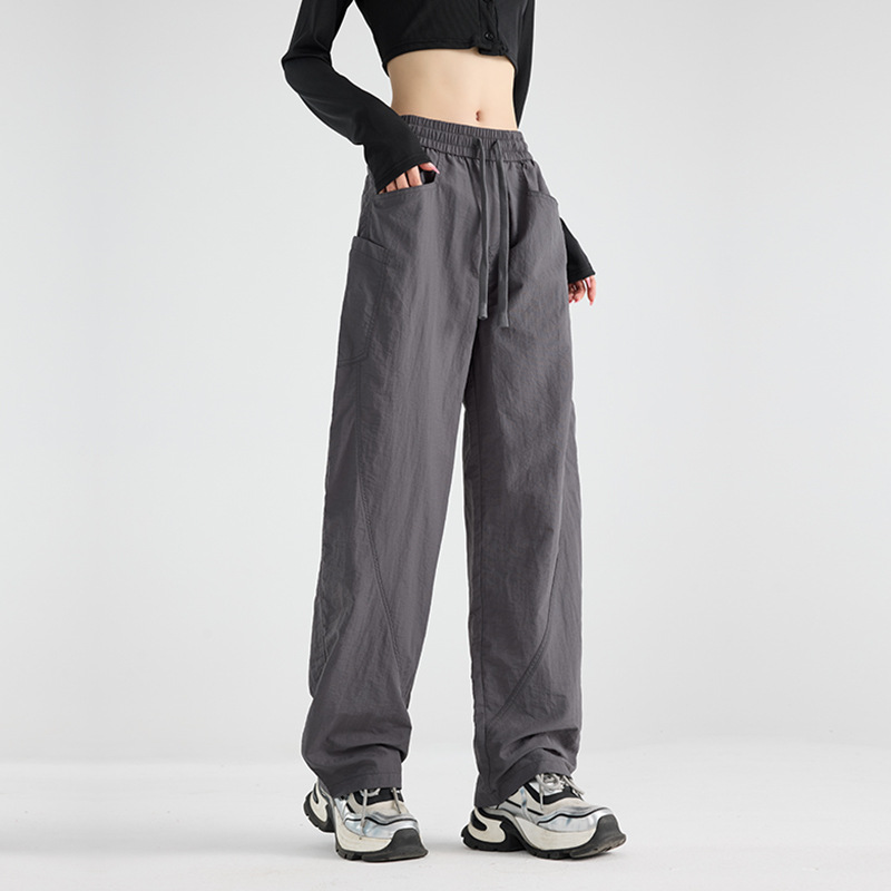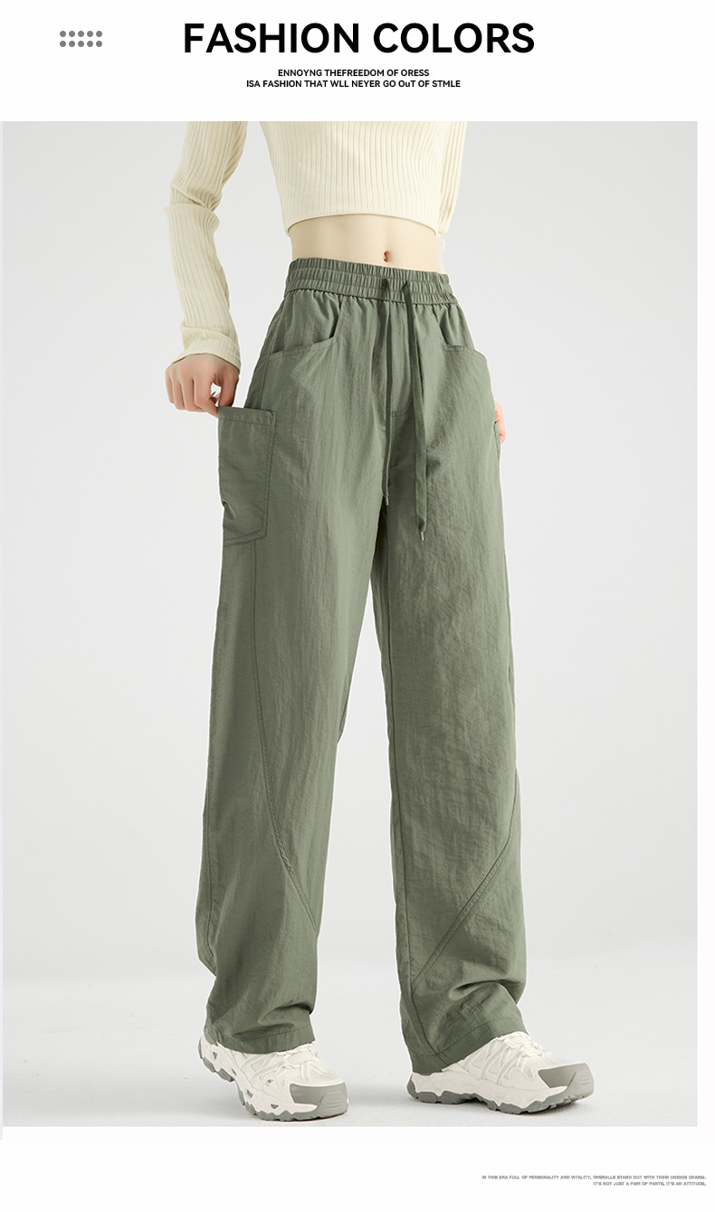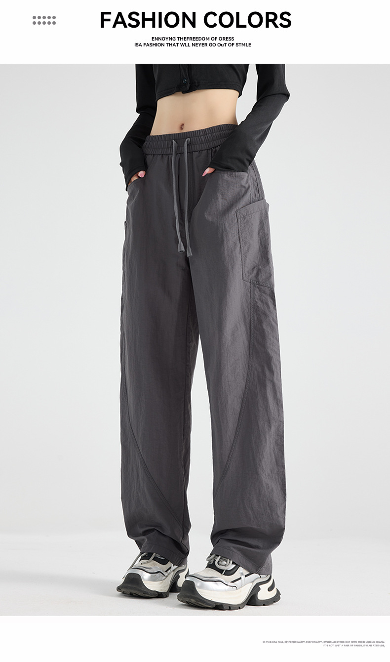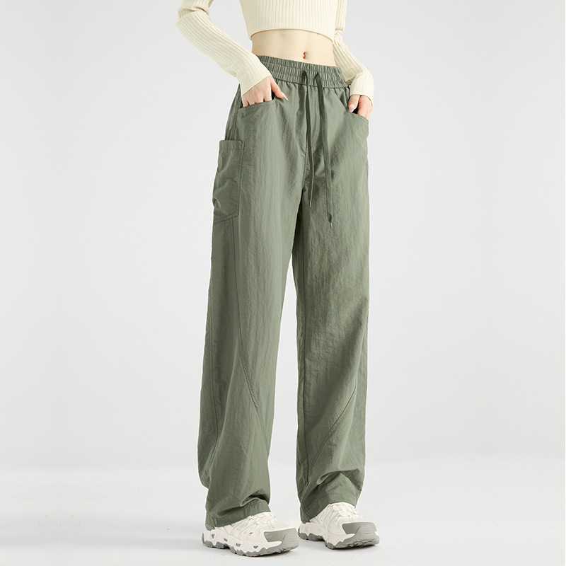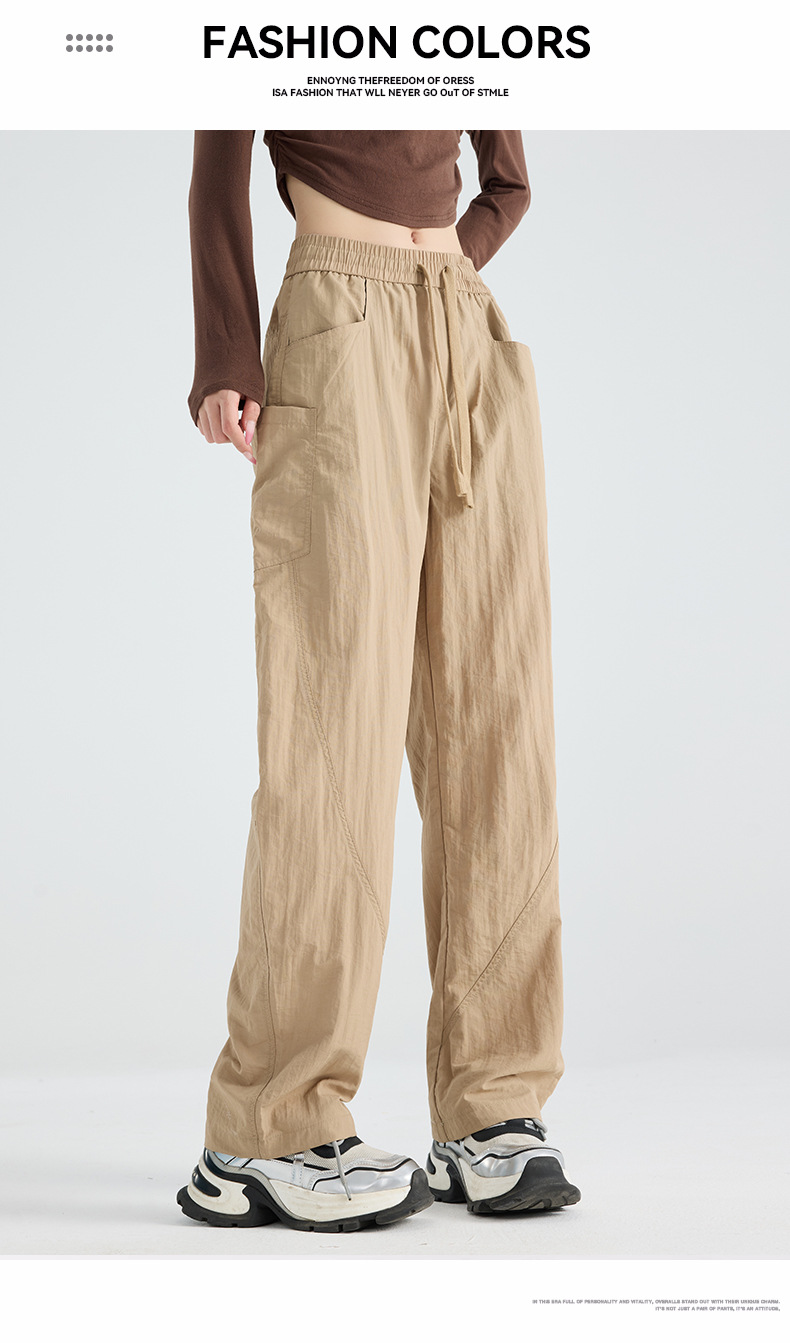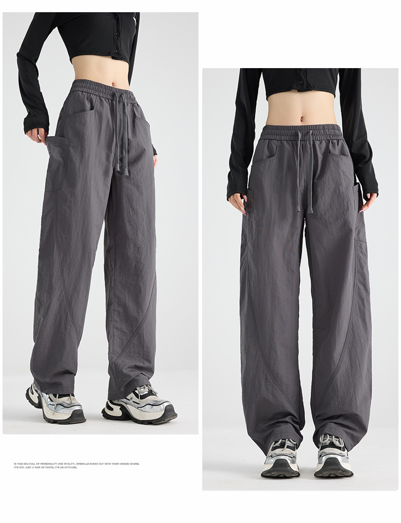 여성용 블랙 오버올 2025 새로운 칼바늘 바지 얇은 느슨한 방풍 및 방수 등산 여름 스트레이트 와이드 레그 팬츠스토어 가기