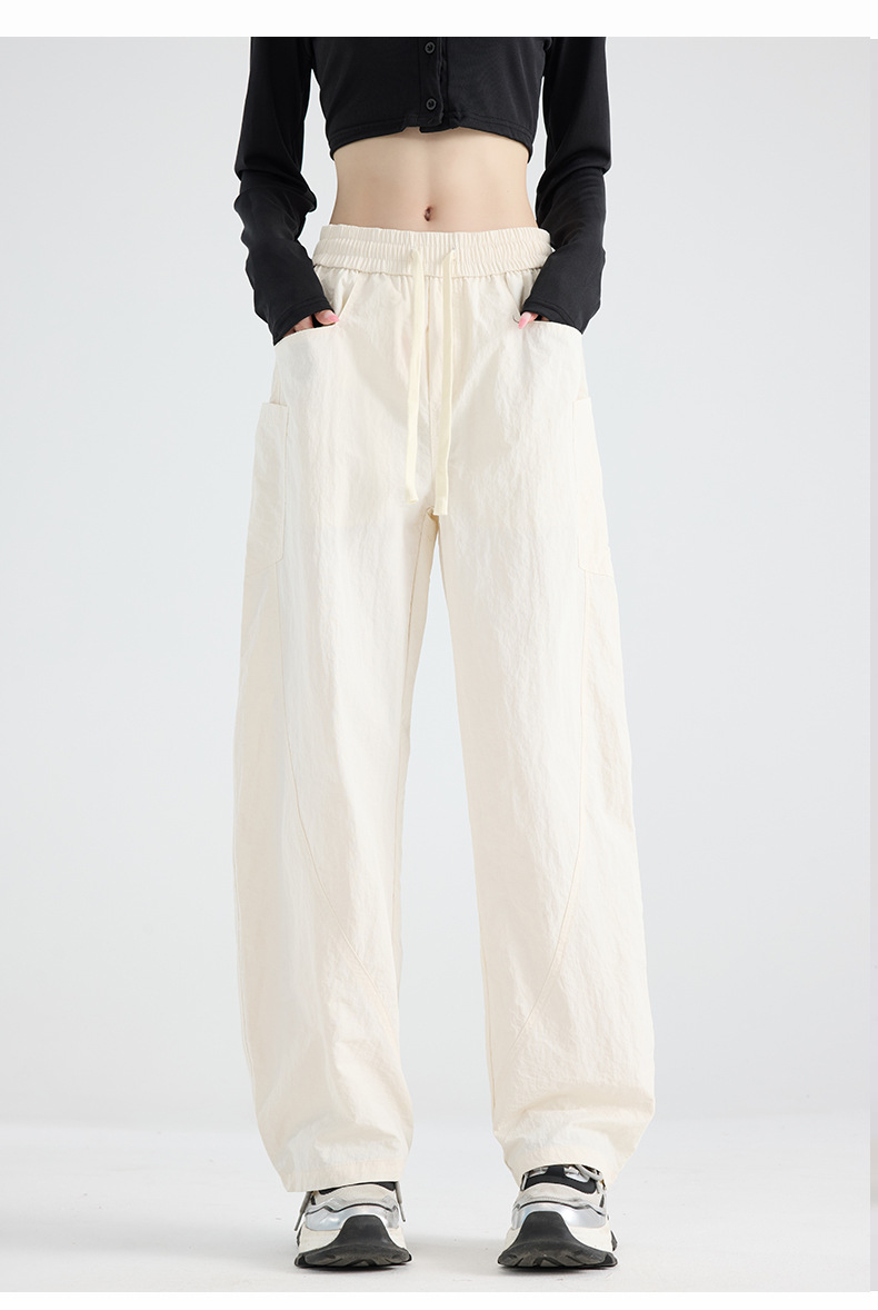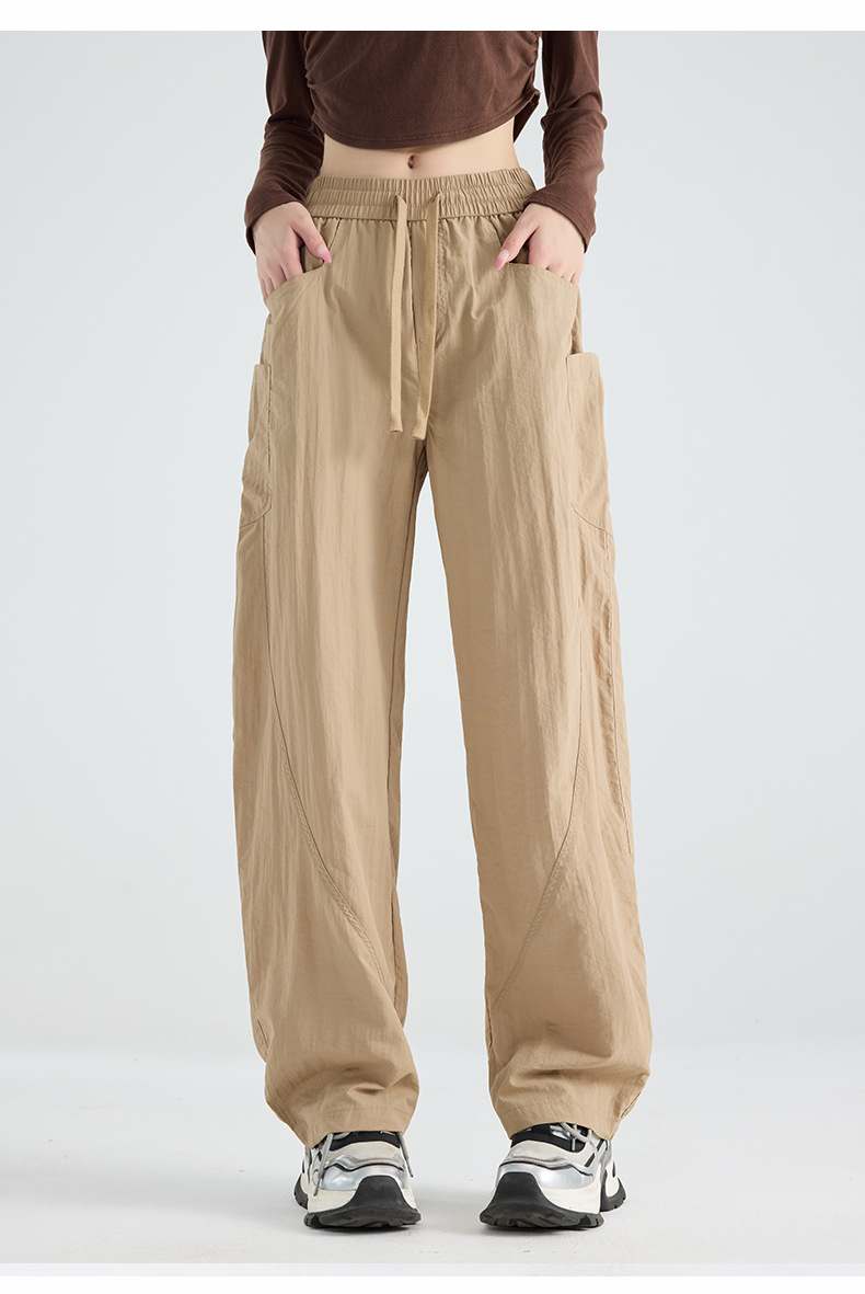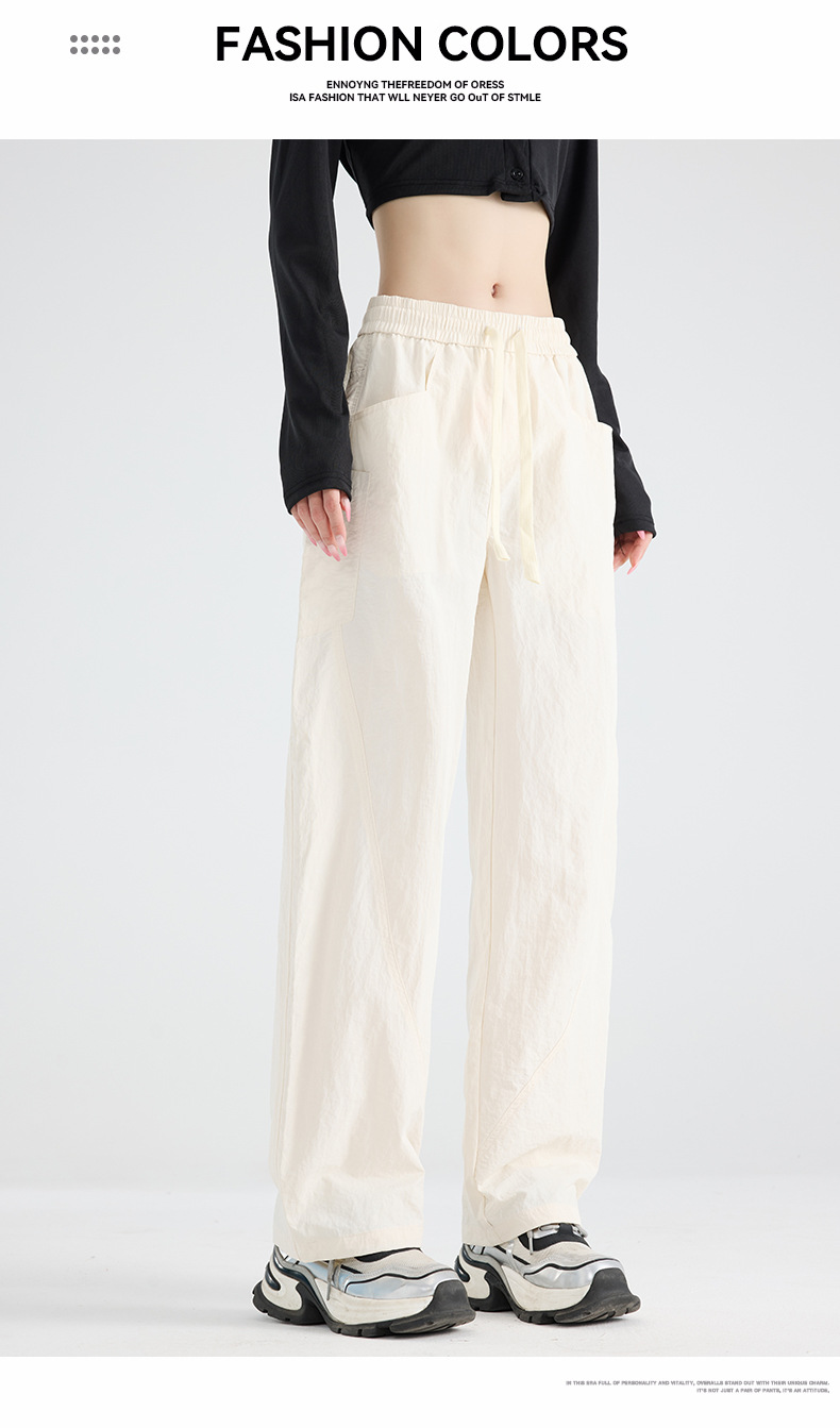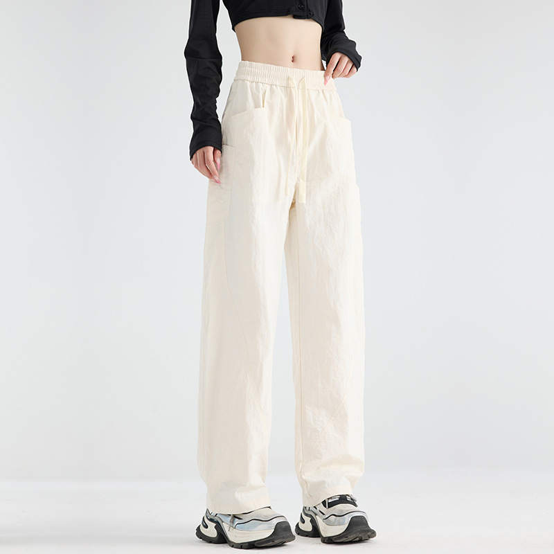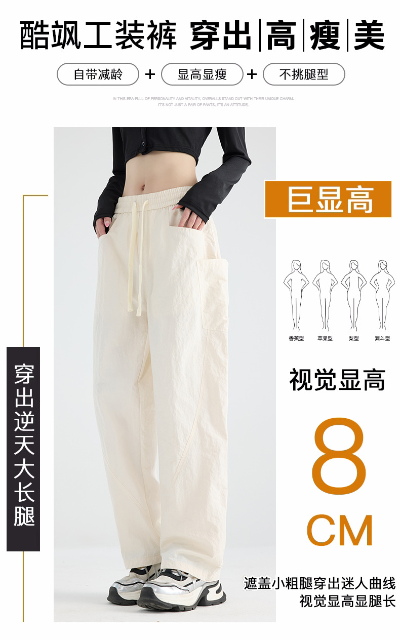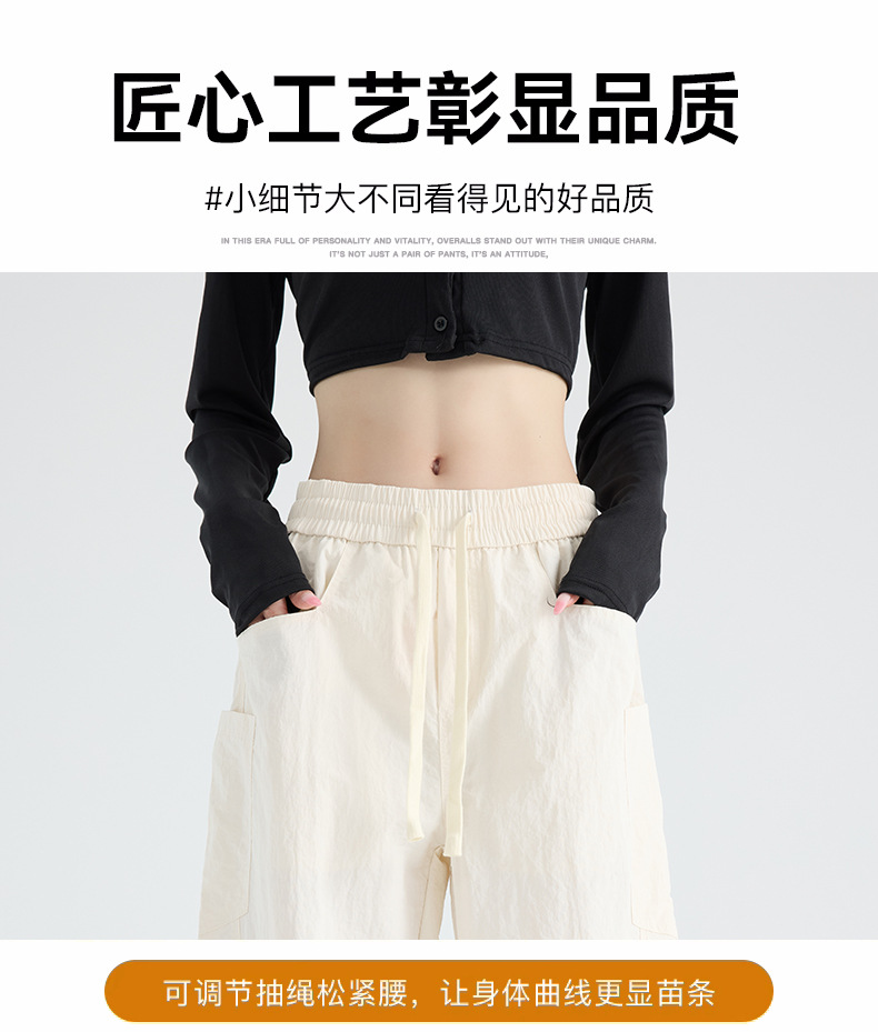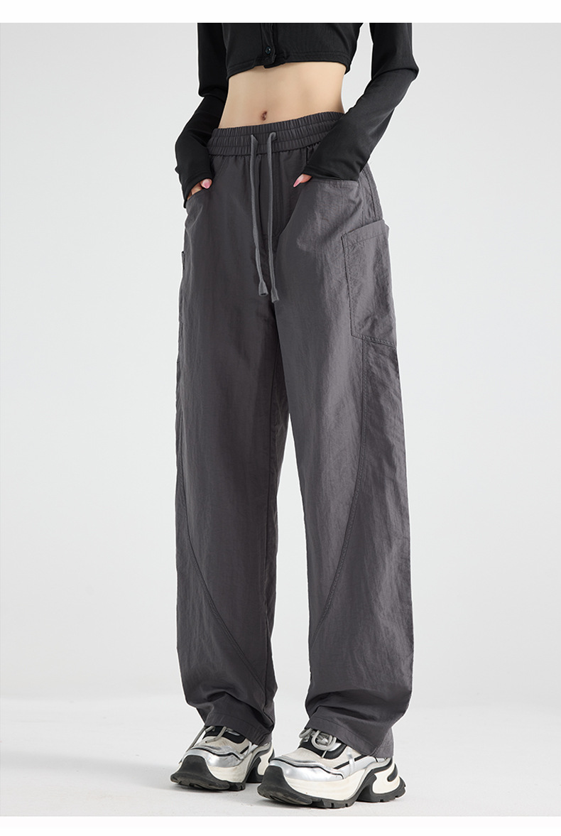 여성용 블랙 오버올 2025 새로운 칼바늘 바지 얇은 느슨한 방풍 및 방수 등산 여름 스트레이트 와이드 레그 팬츠스토어 가기