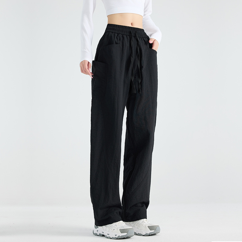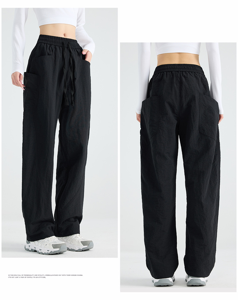 여성용 블랙 오버올 2025 새로운 칼바늘 바지 얇은 느슨한 방풍 및 방수 등산 여름 스트레이트 와이드 레그 팬츠