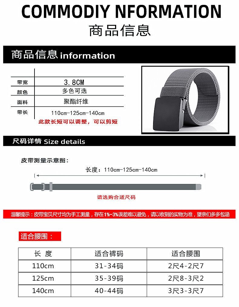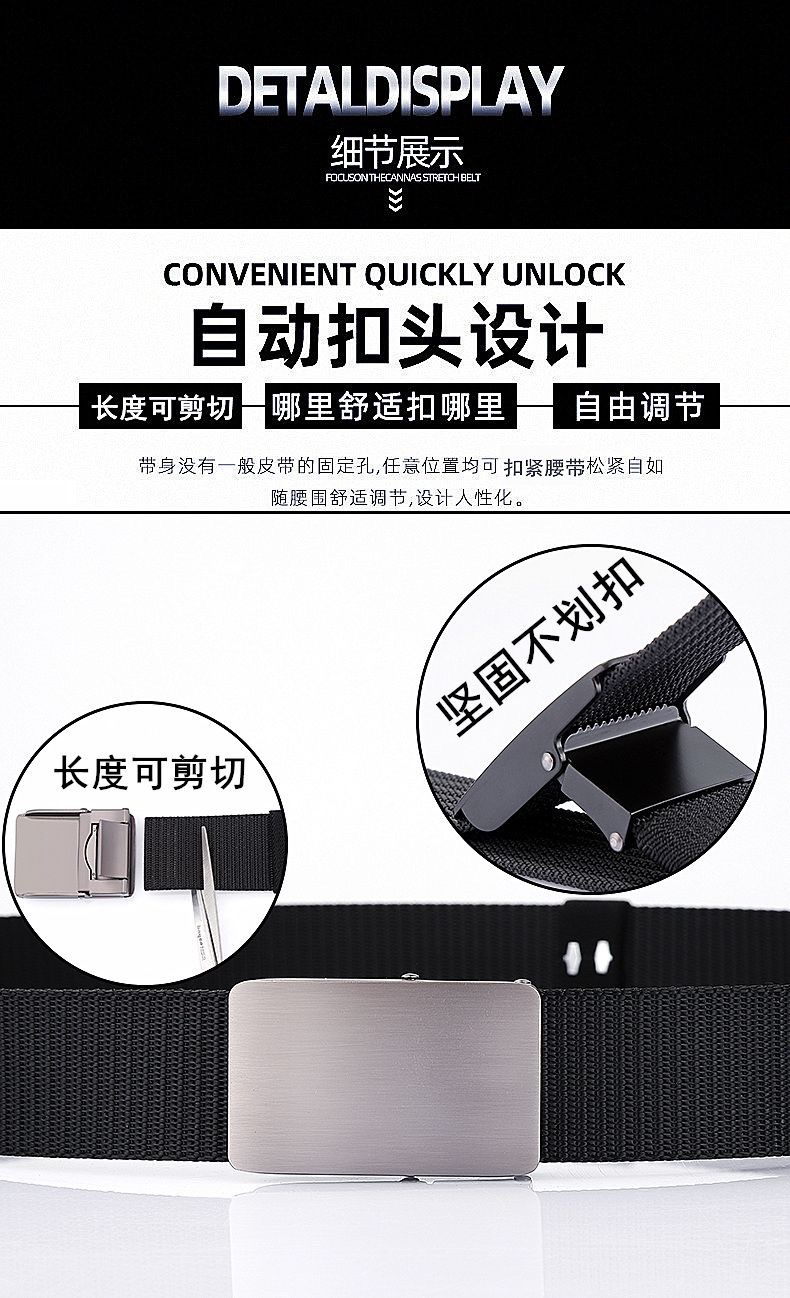 새로운 치아없는 구멍없는 자동 버클 나일론 캔버스 벨트 펀치없는 캐주얼 남성 비즈니스 바지 벨트 제조 업체 도매스토어 가기