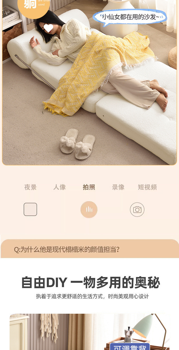 1인용 소파, 작은 거실, 두부 블록 타지 침대, 접이식 이중 용도 크림 스타일 모듈, 게으른 사람