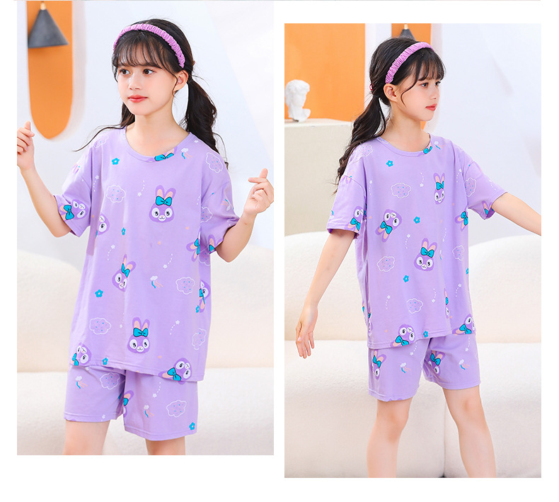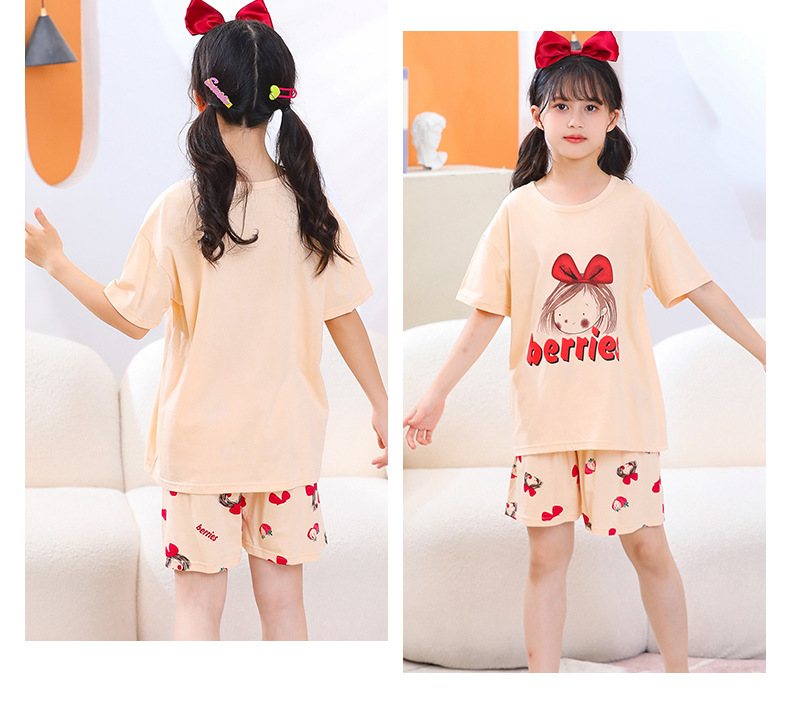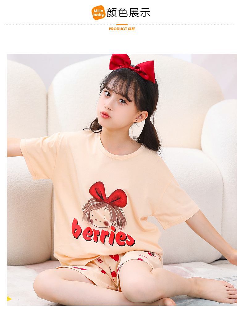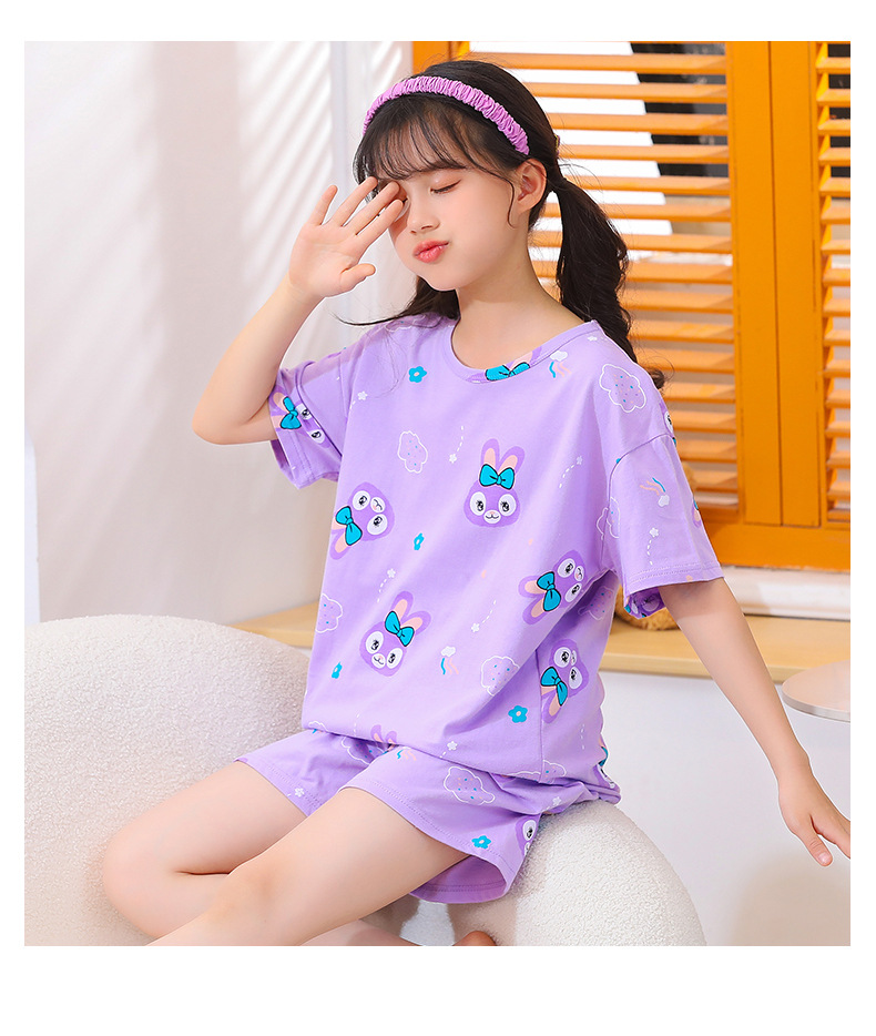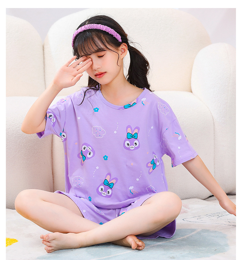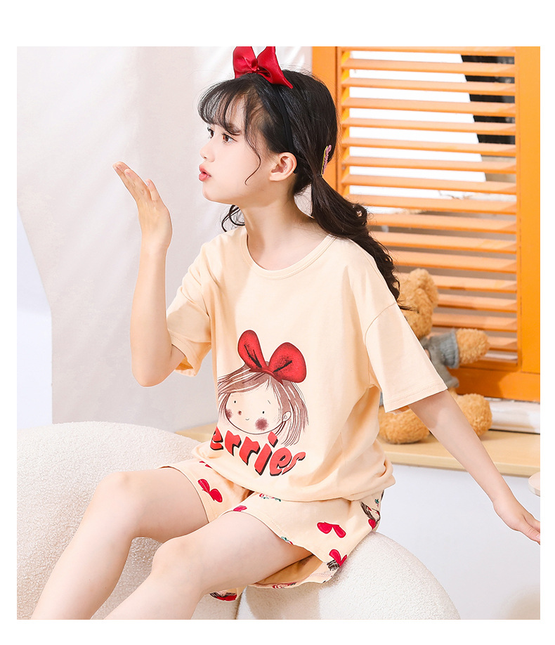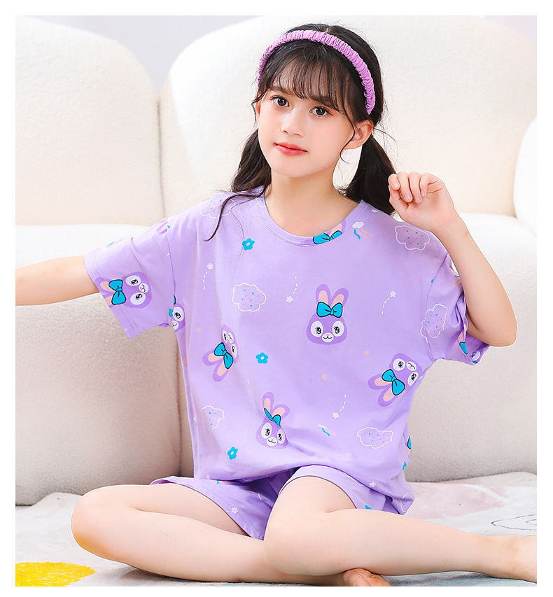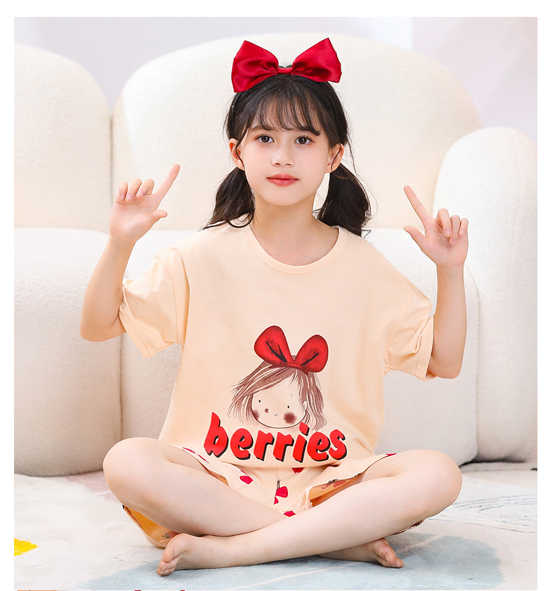 여아용 반팔 양복, 순면 아동용 잠옷, 여름옷, 중대형 아동용 얇은 에어컨 옷, 어린 소녀의 가정복, 여름스토어 가기