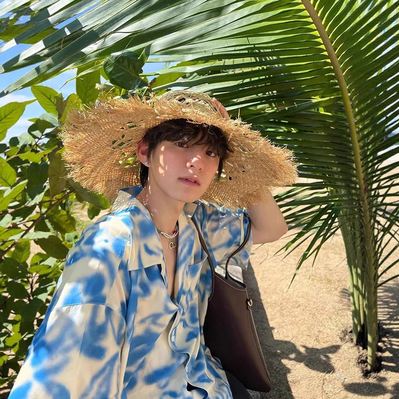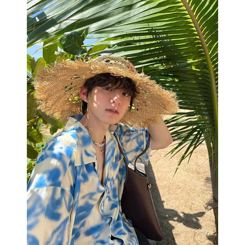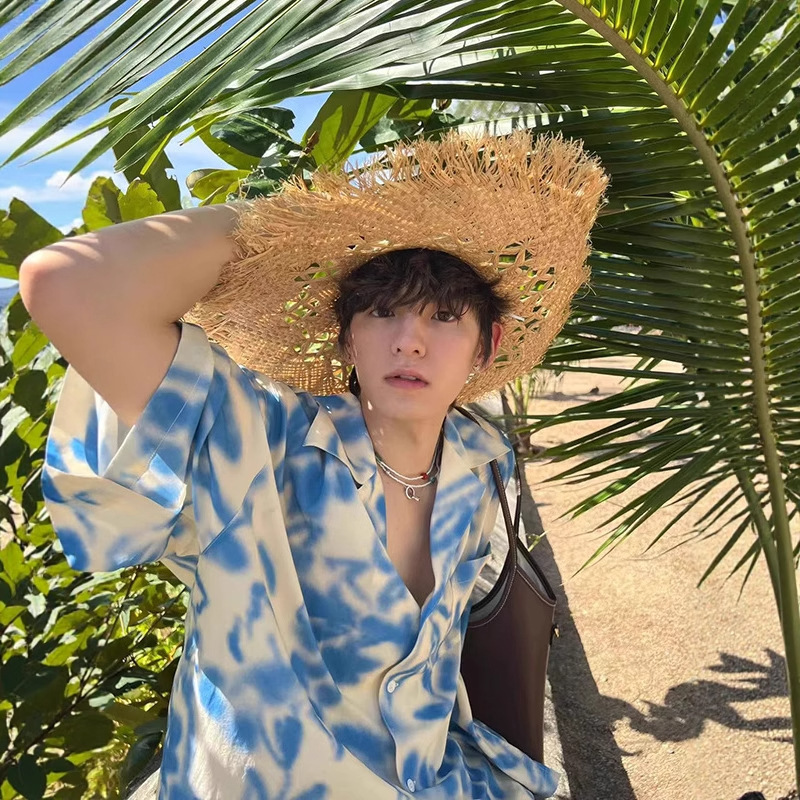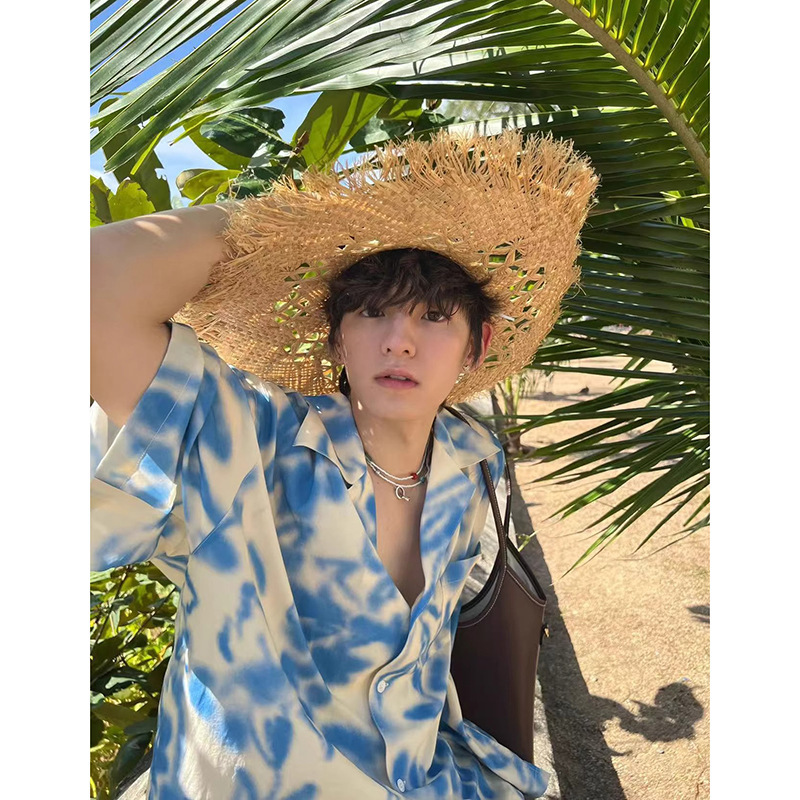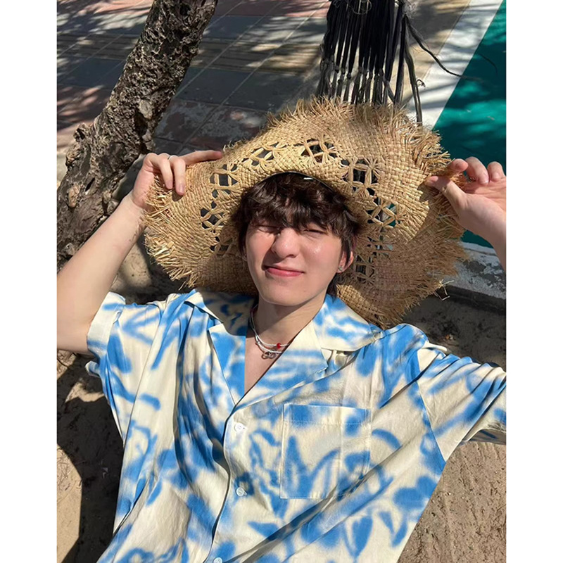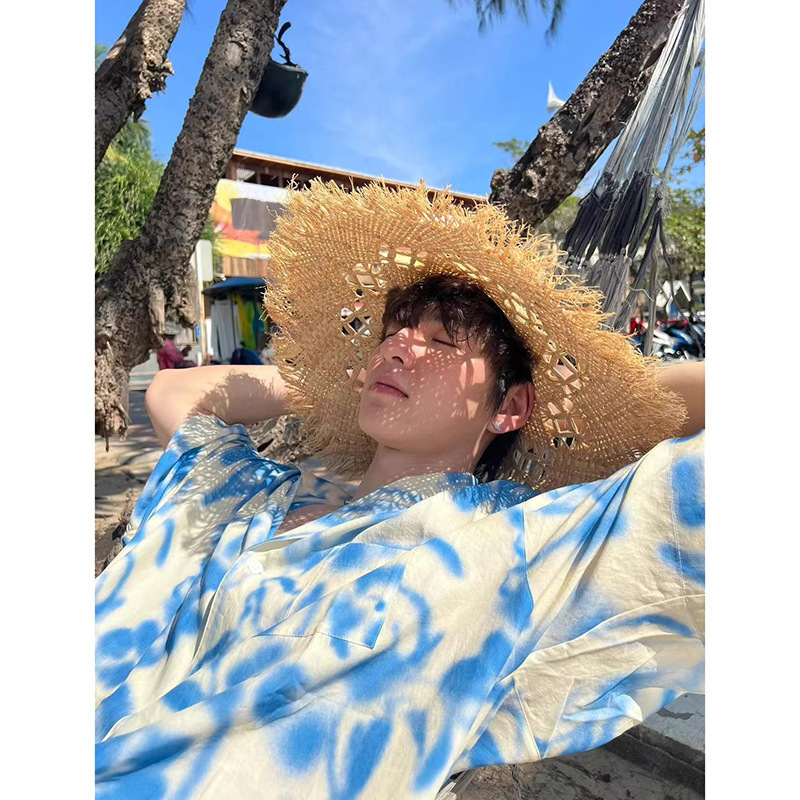 남아용 블루 리조트 스타일 비치 반팔 셔츠, 해변 착용, 여름용 얇은 아이스 실크 쿠반 칼라 셔츠, 반소매스토어 가기