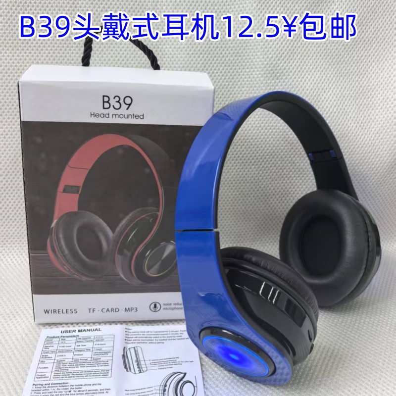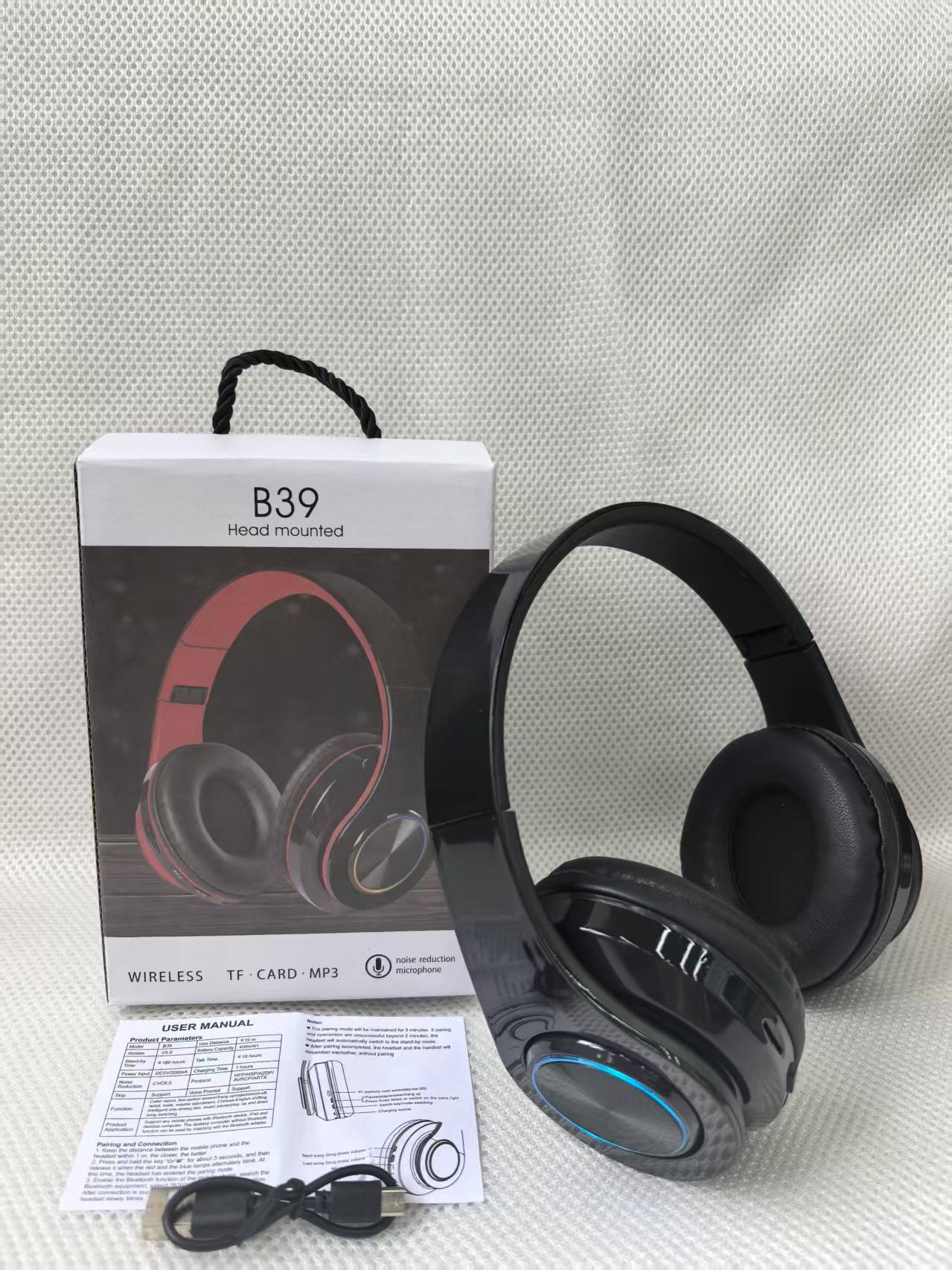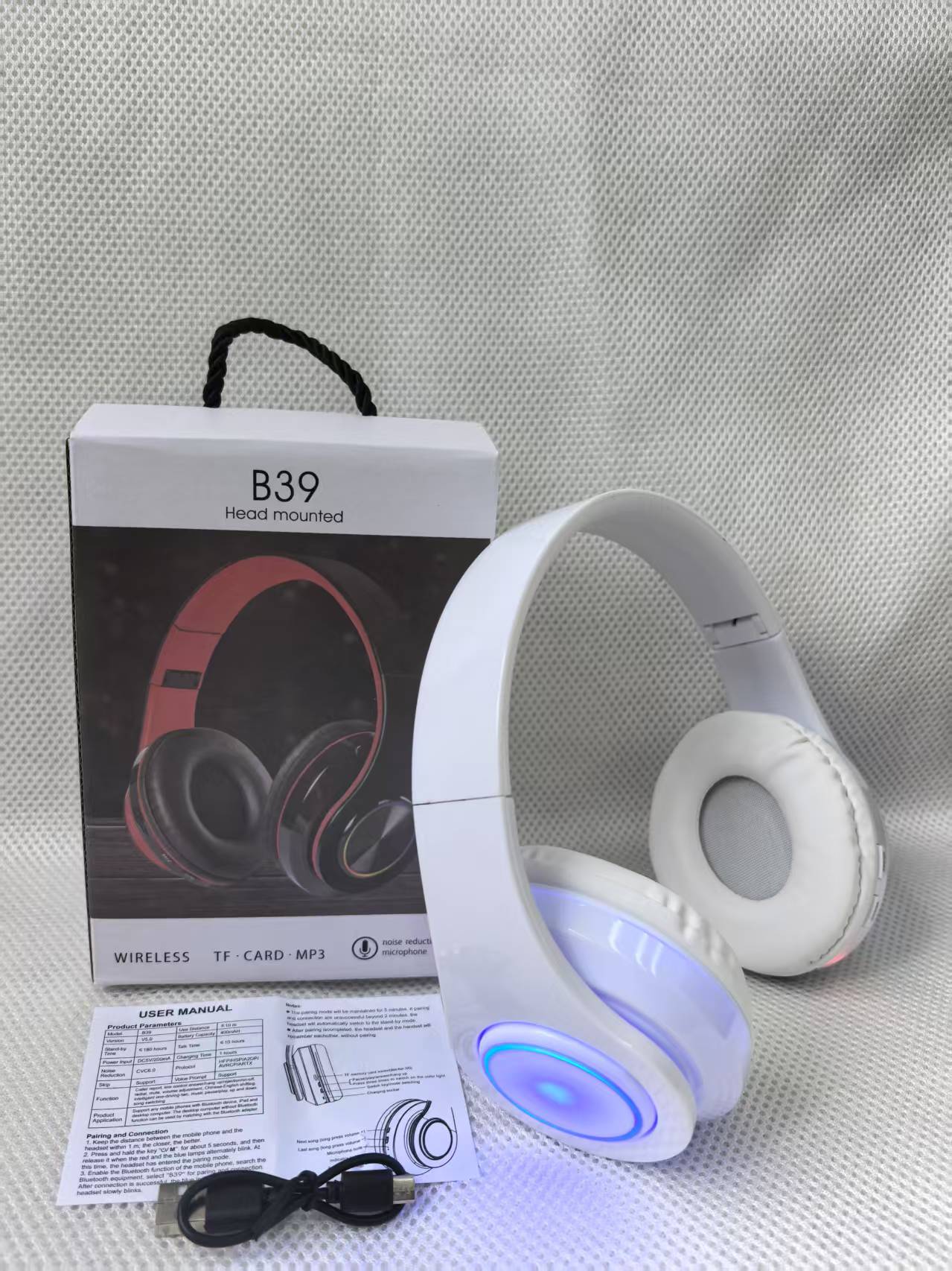 [공장 직접 공급] 국경 간 발광 헤드셋 B39 무선 블루투스 헤드셋 헤드 장착형 멋진 고품질 게임스토어 가기