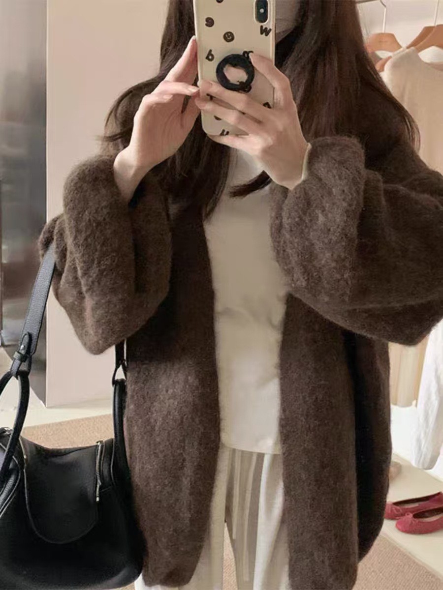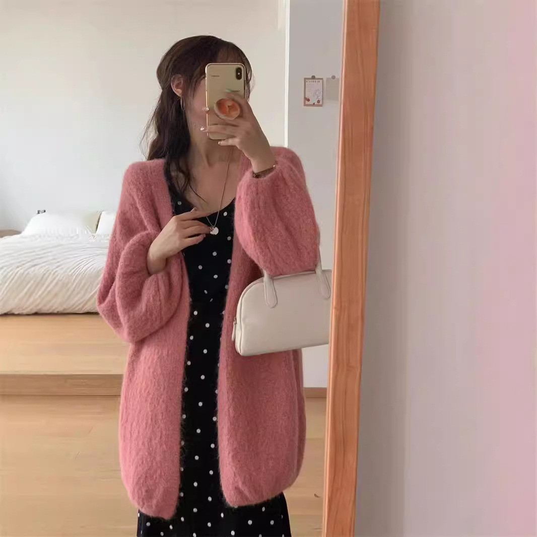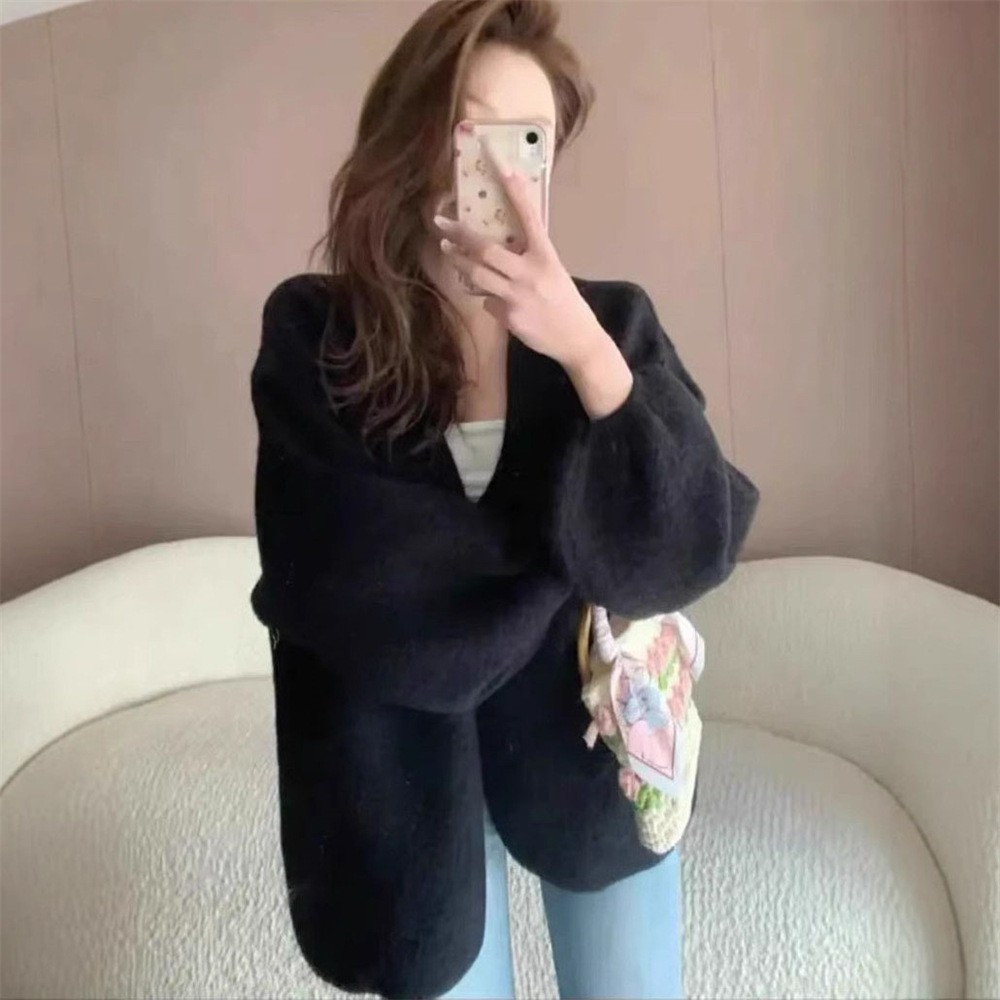 여성을위한 새로운 한국 스타일 느슨한 게으른 스타일 부드러운 밀랍 스웨터 재킷 봄, 가을, 겨울 새로운 다목적 니트 카디건 탑