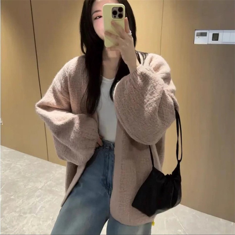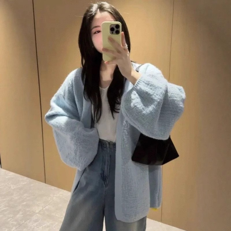 여성을위한 새로운 한국 스타일 느슨한 게으른 스타일 부드러운 밀랍 스웨터 재킷 봄, 가을, 겨울 새로운 다목적 니트 카디건 탑스토어 가기