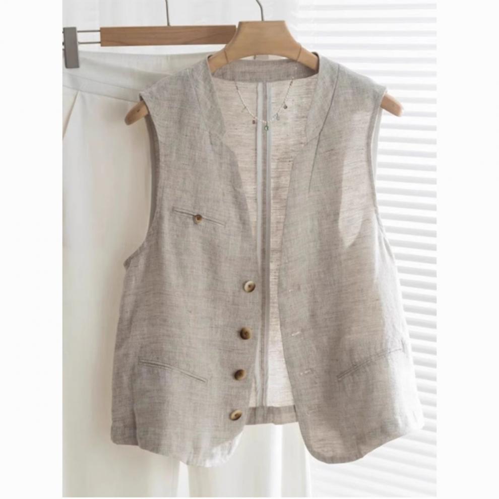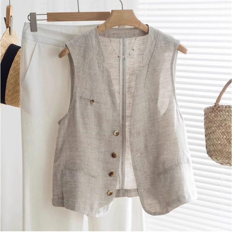 레트로 린넨 정장 조끼 여성 여름 유럽 스타일 얇은 캐주얼 v 넥 양복 조끼 코튼 린넨 민소매 조끼 탑스토어 가기