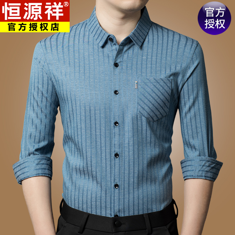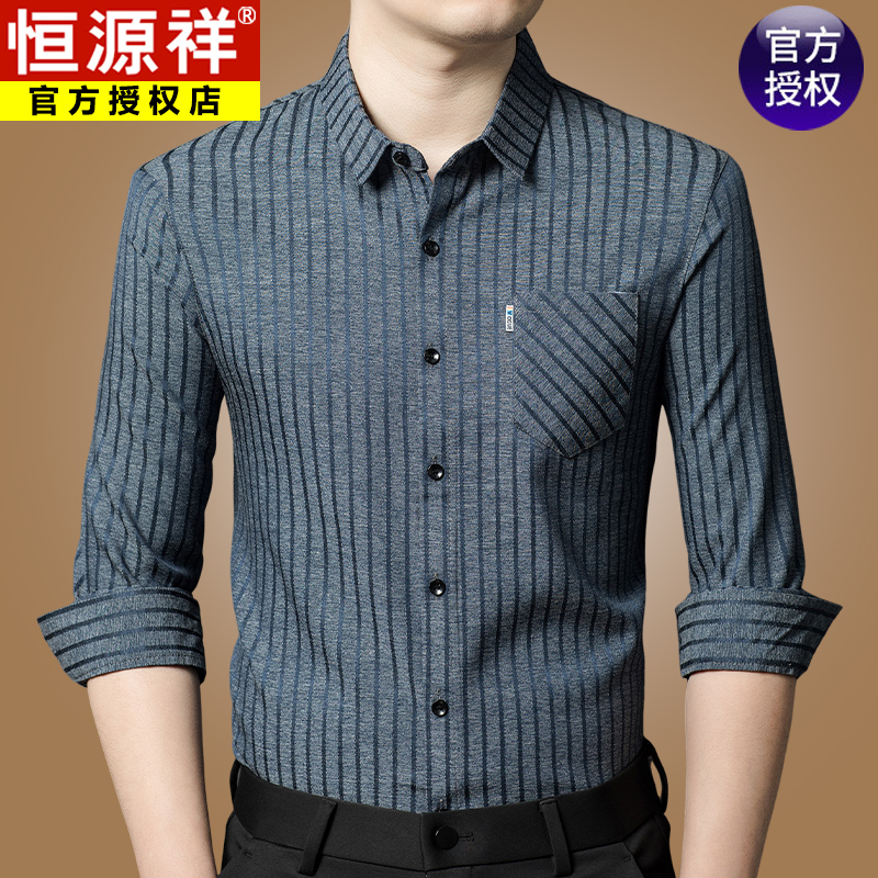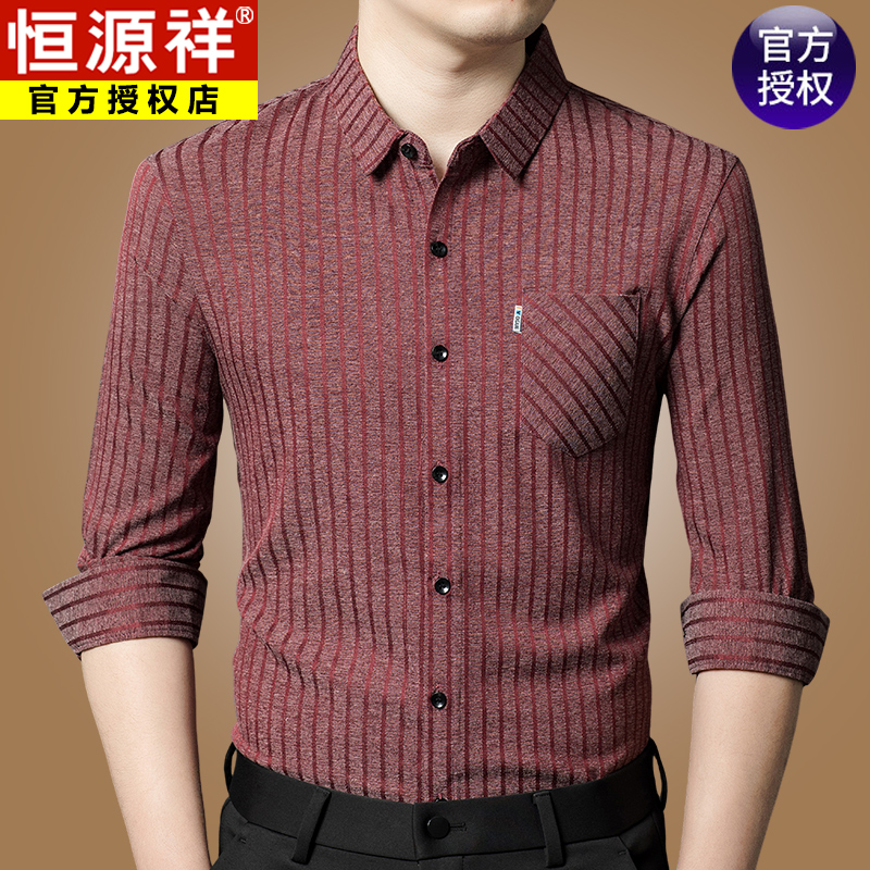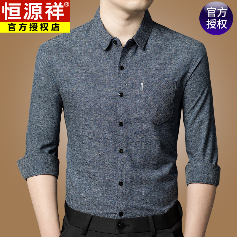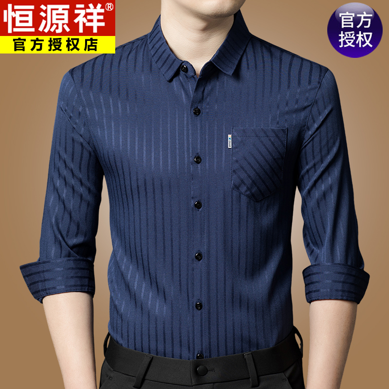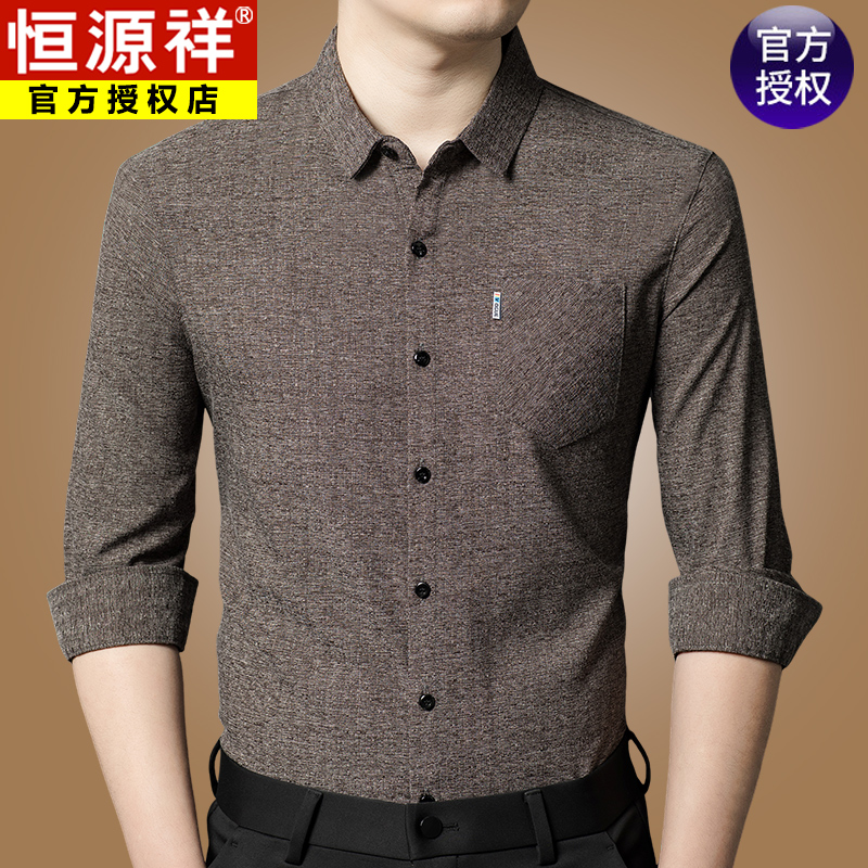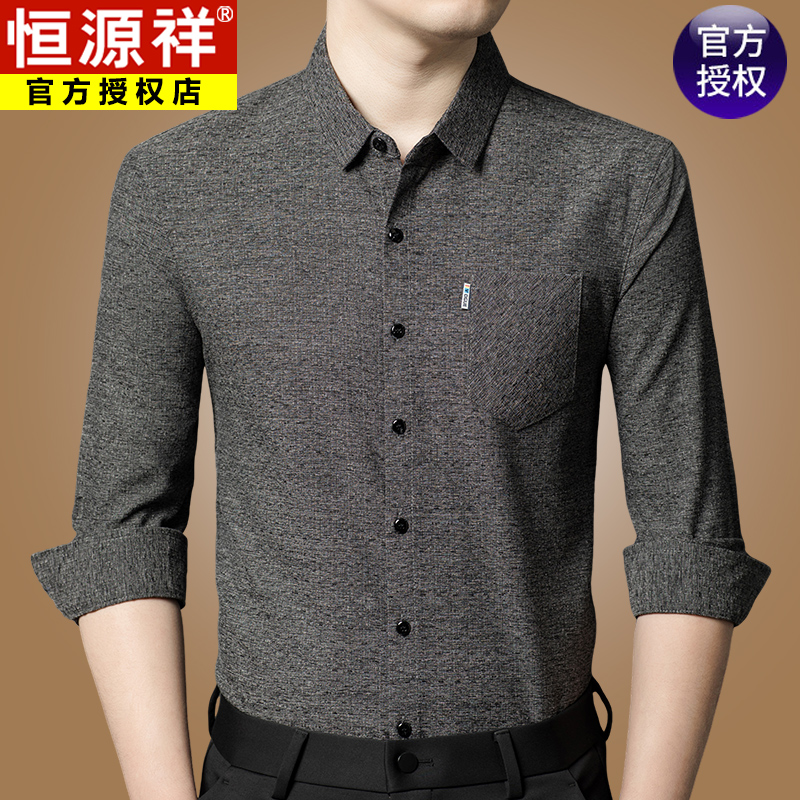 Hengyuanxiang 비즈니스 캐주얼 긴팔 셔츠 남성 봄, 가을 새로운 멀 베리 실크 가을 탑 중년 아빠 셔츠스토어 가기