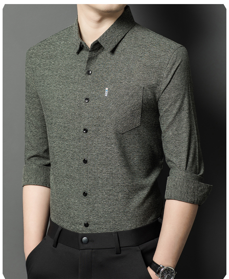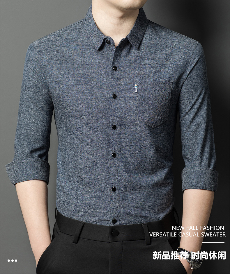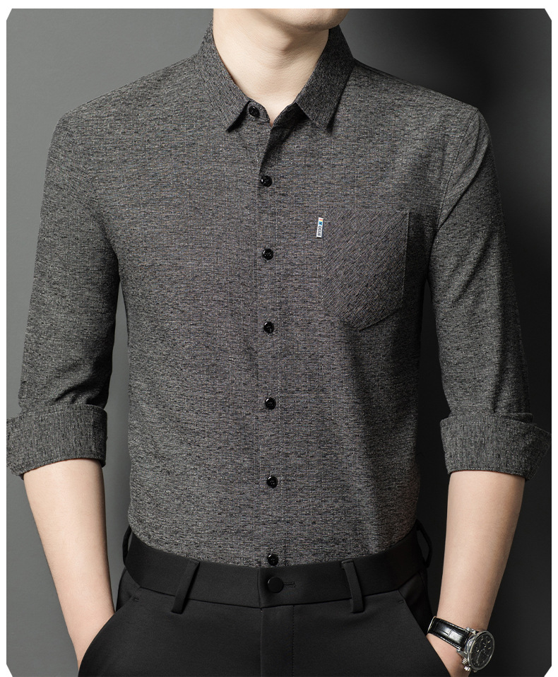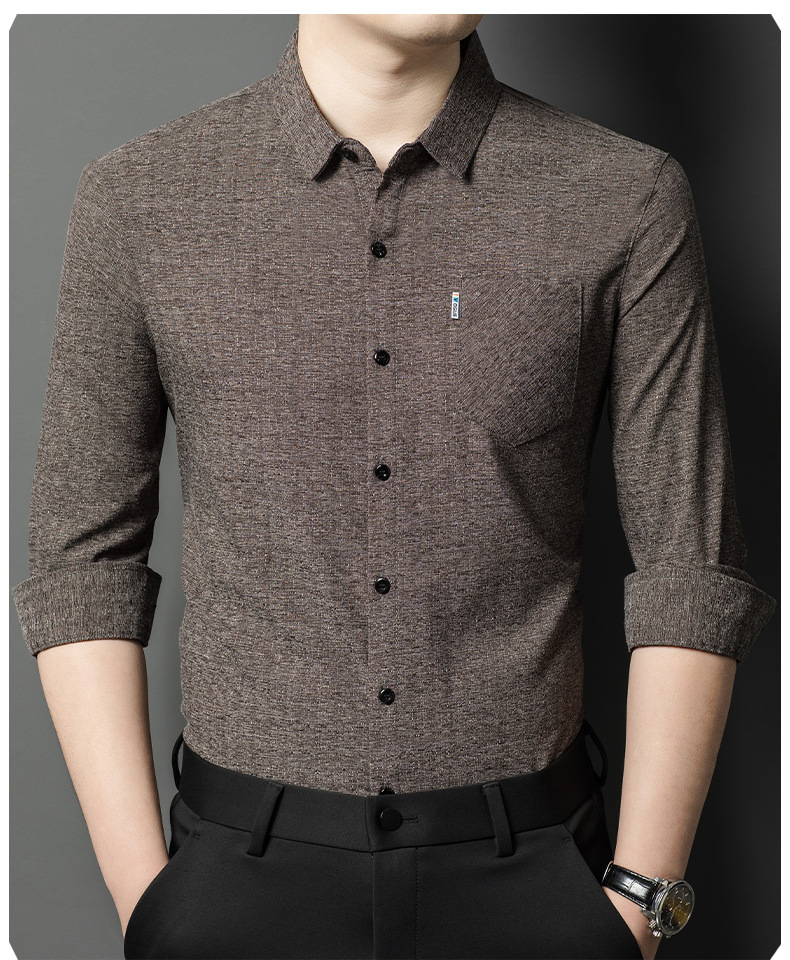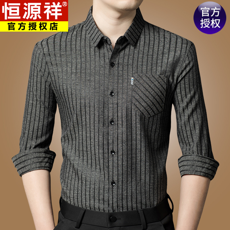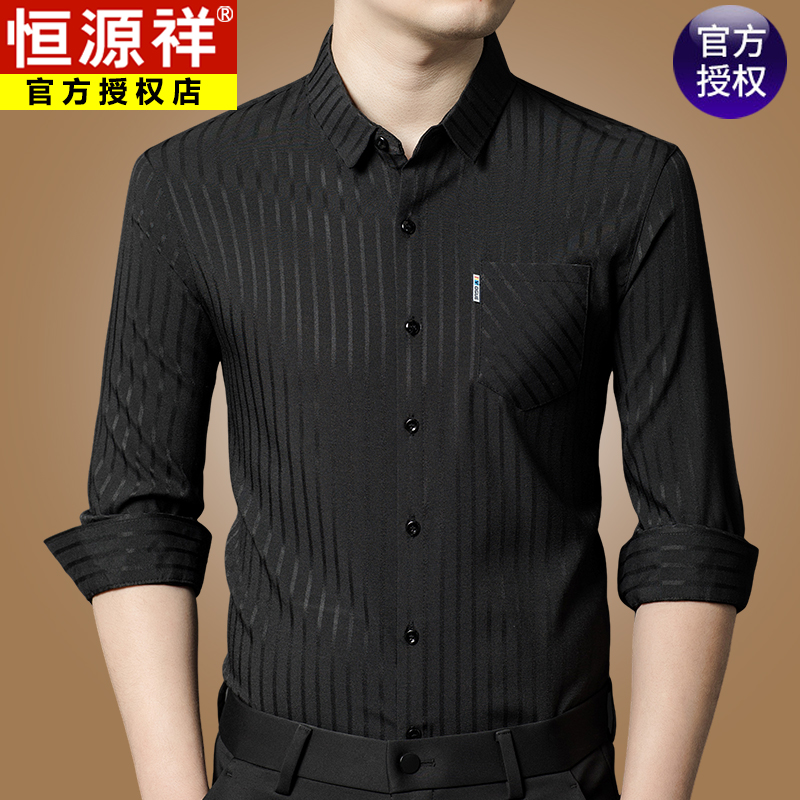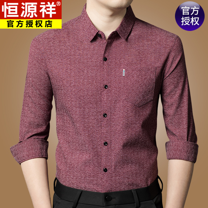 Hengyuanxiang 비즈니스 캐주얼 긴팔 셔츠 남성 봄, 가을 새로운 멀 베리 실크 가을 탑 중년 아빠 셔츠
