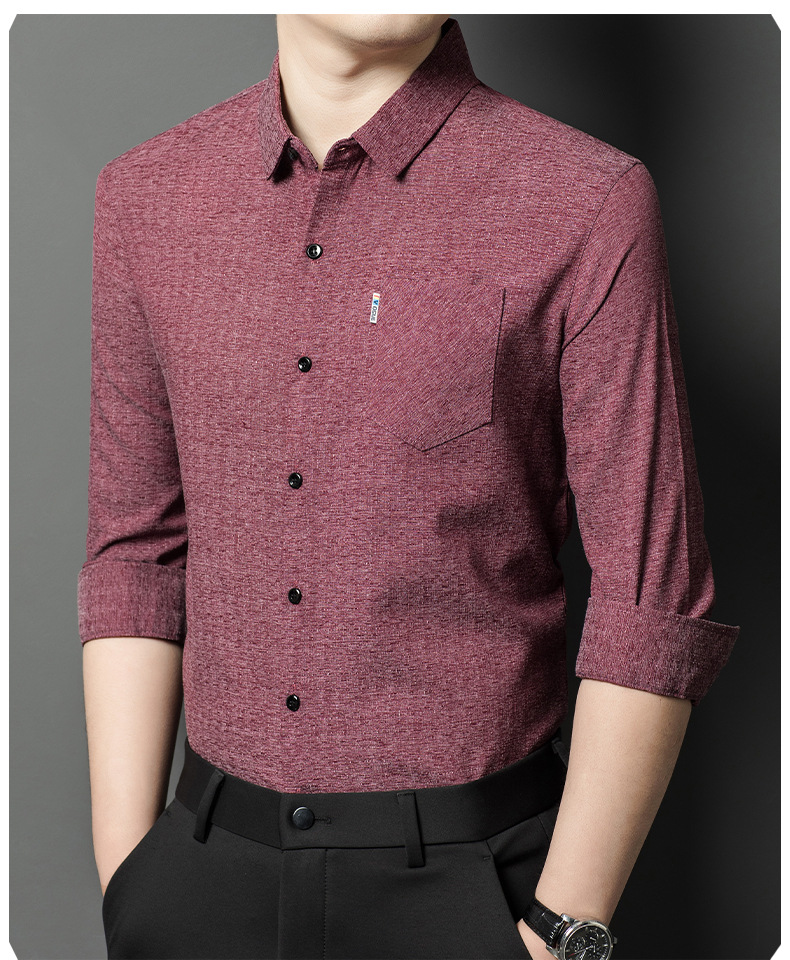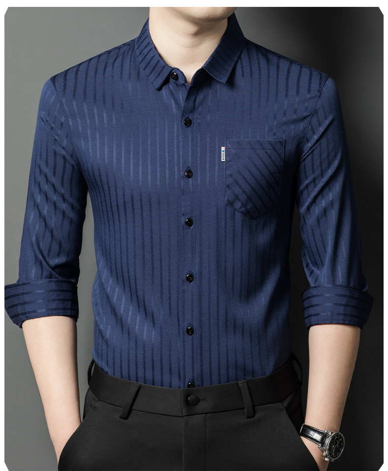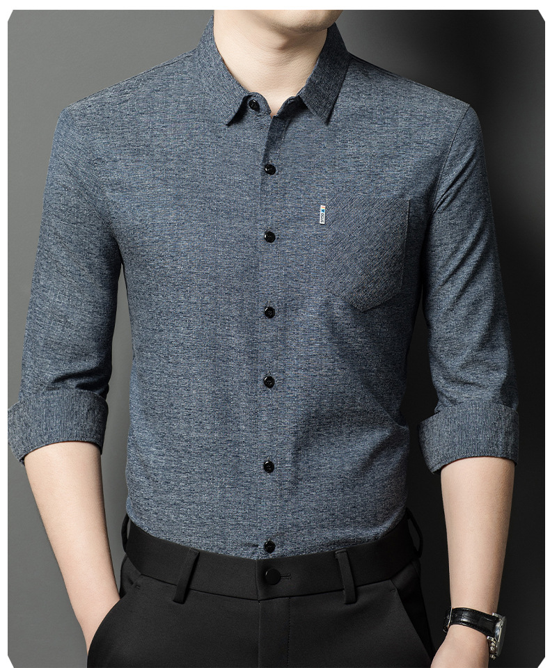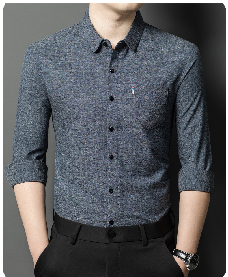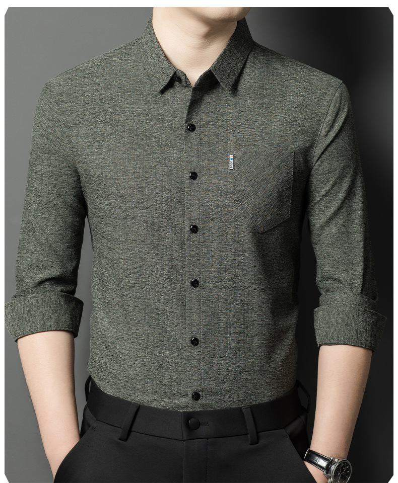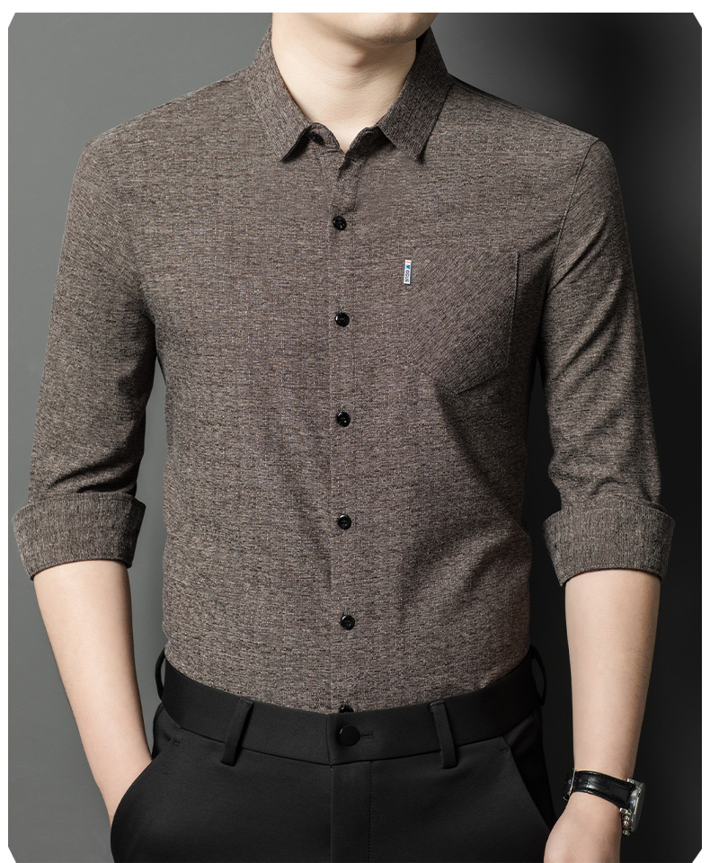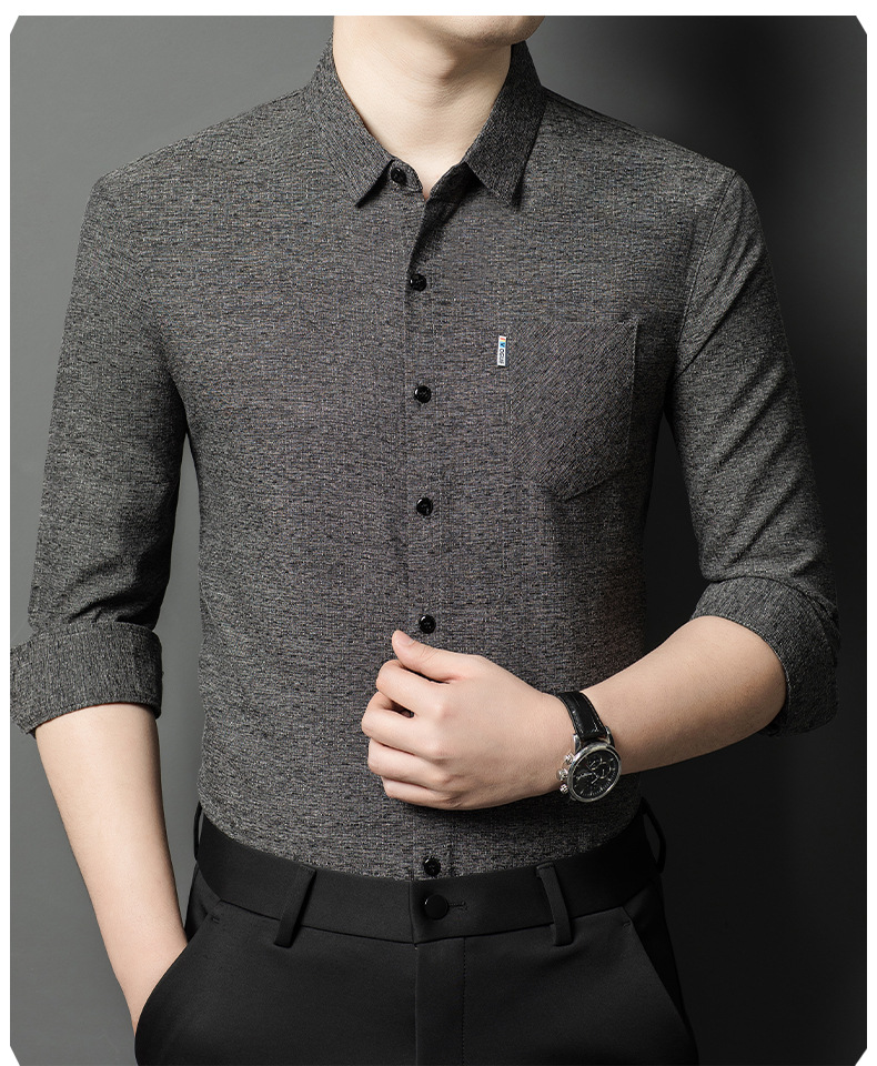 Hengyuanxiang 비즈니스 캐주얼 긴팔 셔츠 남성 봄, 가을 새로운 멀 베리 실크 가을 탑 중년 아빠 셔츠