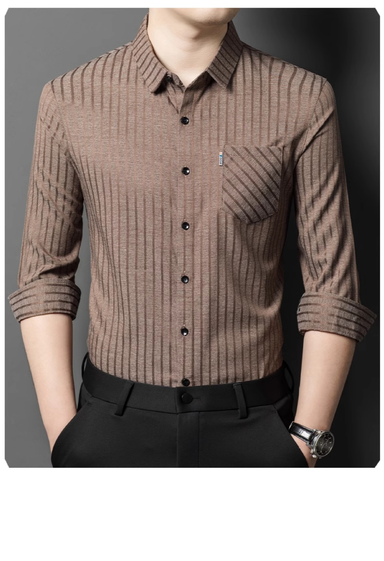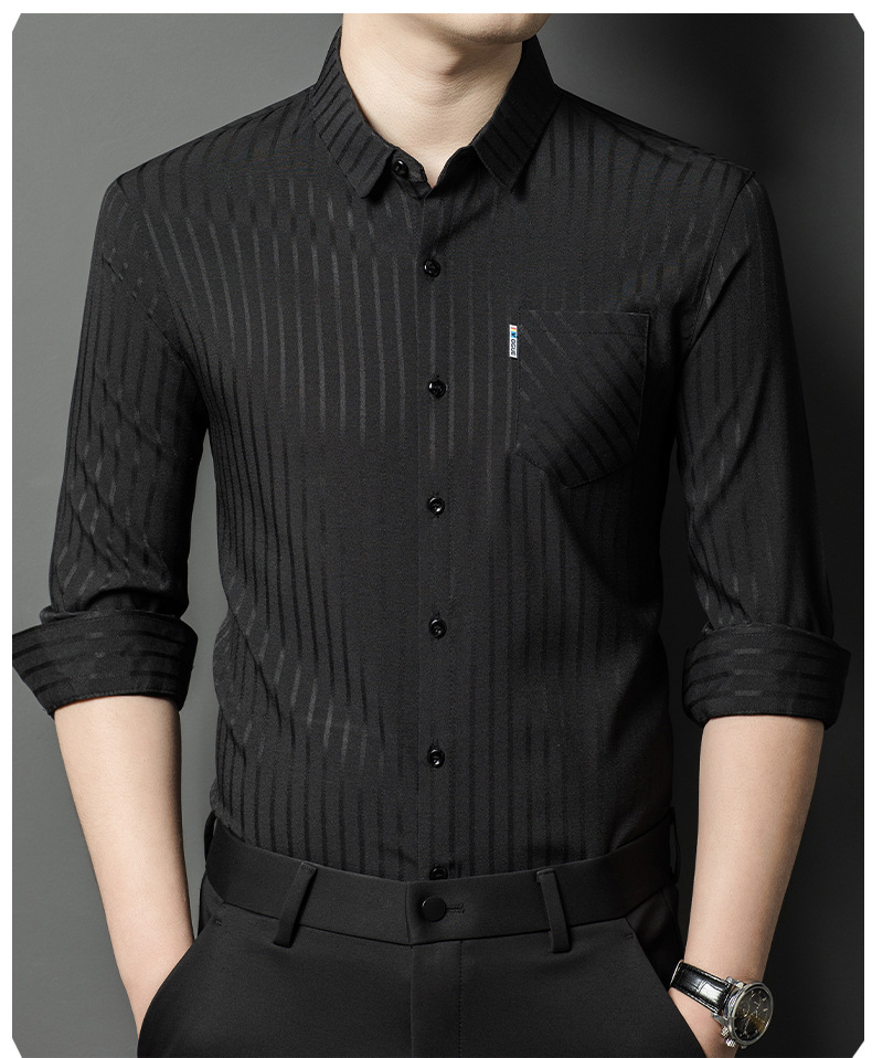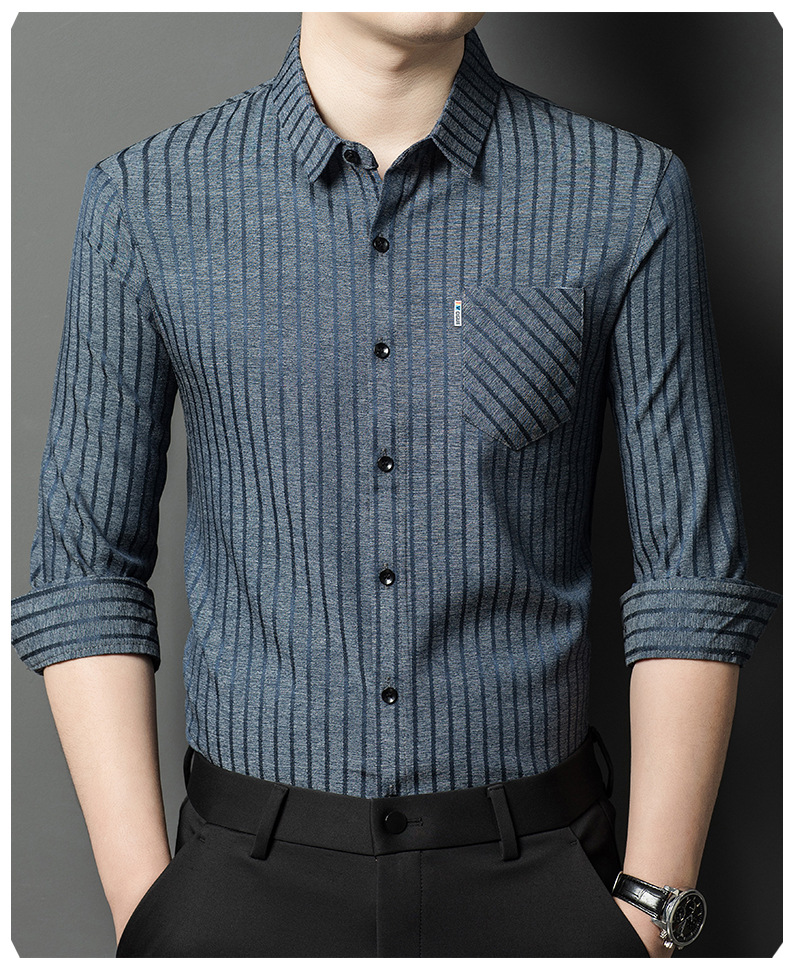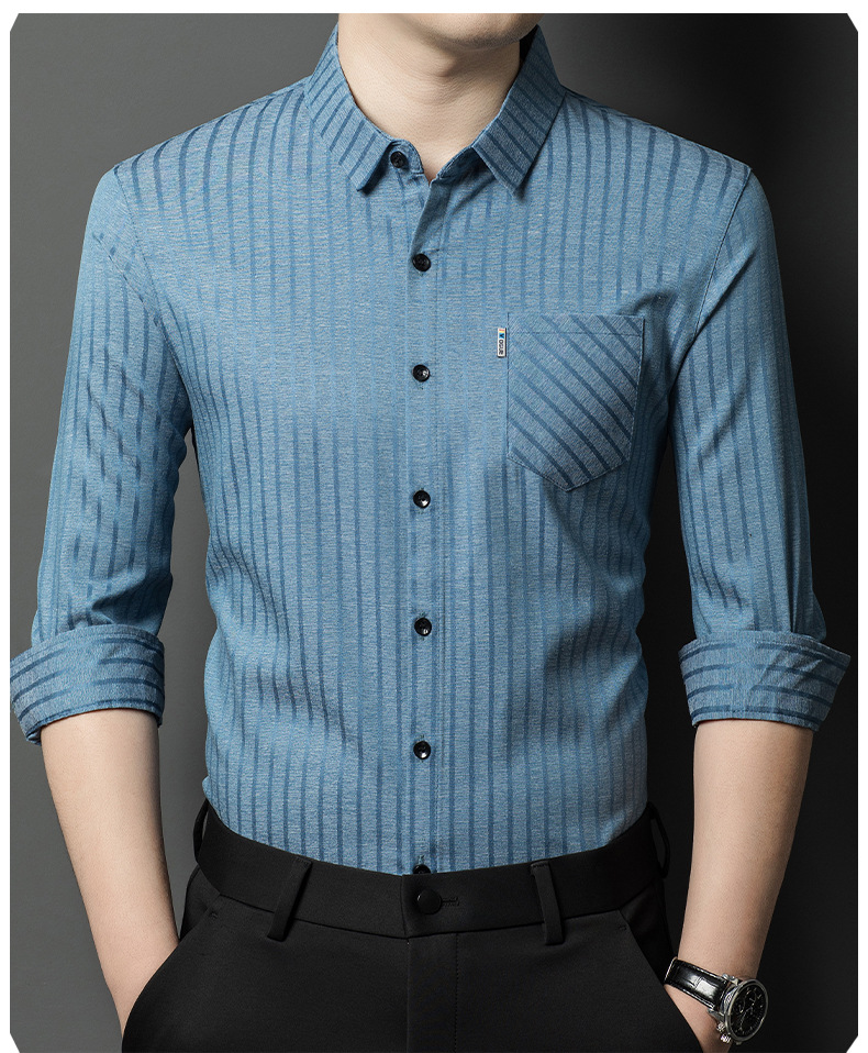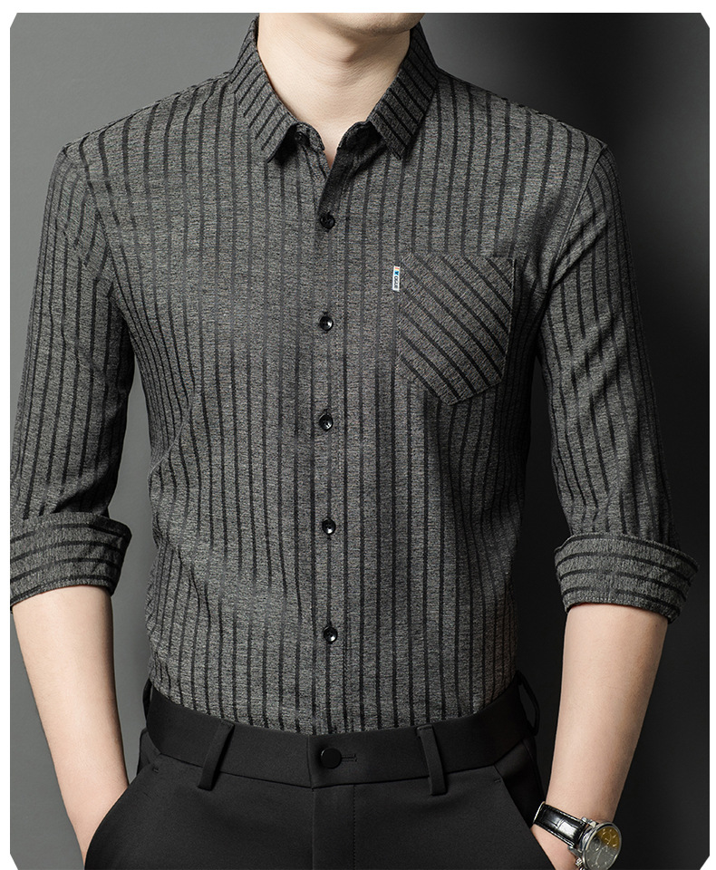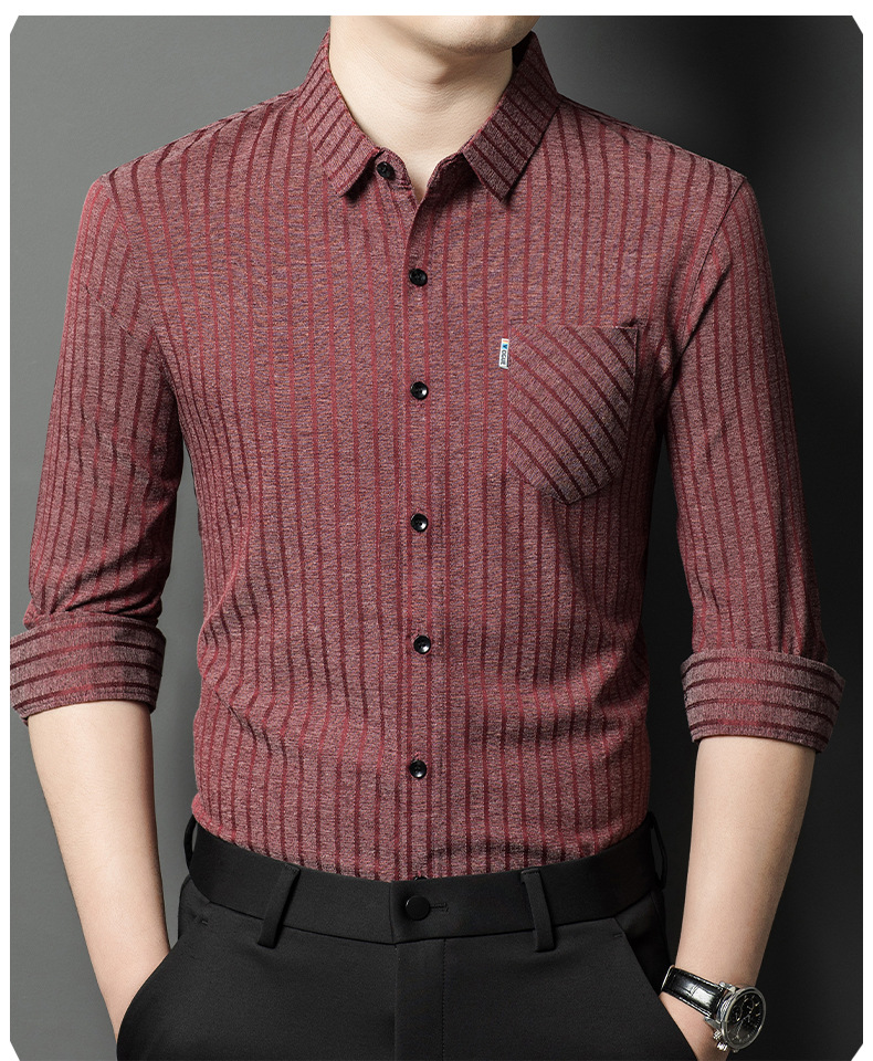 Hengyuanxiang 비즈니스 캐주얼 긴팔 셔츠 남성 봄, 가을 새로운 멀 베리 실크 가을 탑 중년 아빠 셔츠