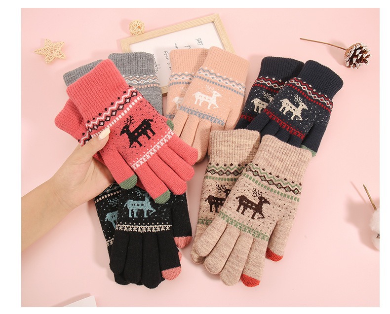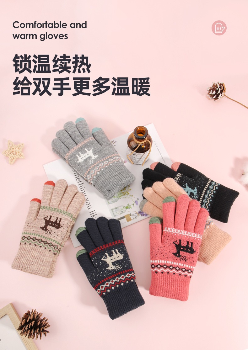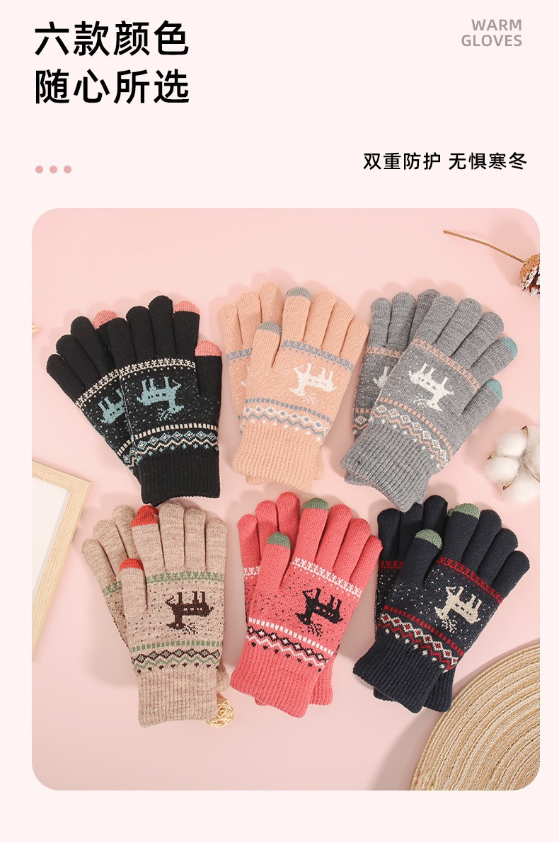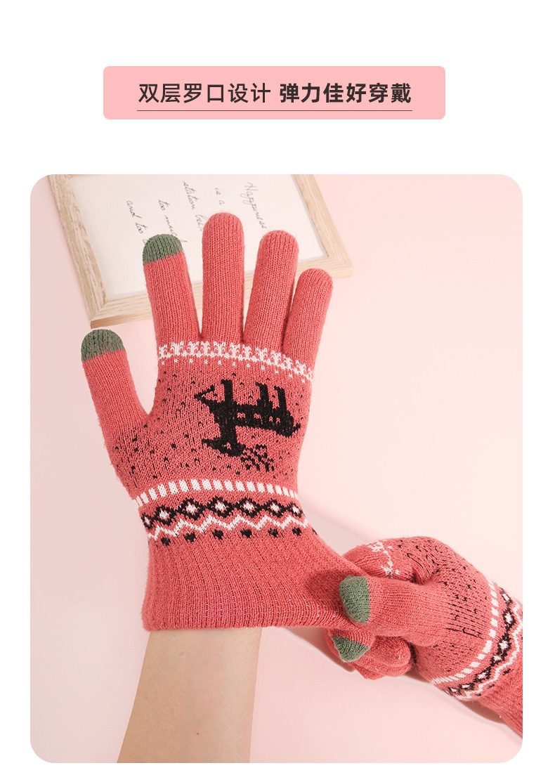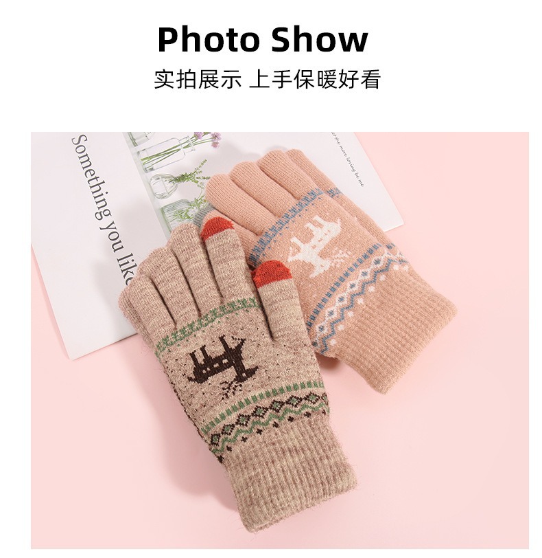 2025년 신제품 사슴 모양 보온 장갑 남녀공용 터치스크린 기능 추가 두꺼운 이중 레이어 방한 니트 공장 도매 해외 인기 상품