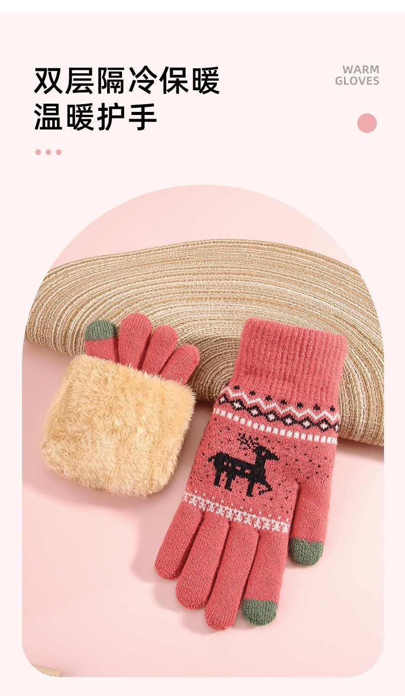 2025년 신제품 사슴 모양 보온 장갑 남녀공용 터치스크린 기능 추가 두꺼운 이중 레이어 방한 니트 공장 도매 해외 인기 상품스토어 가기
