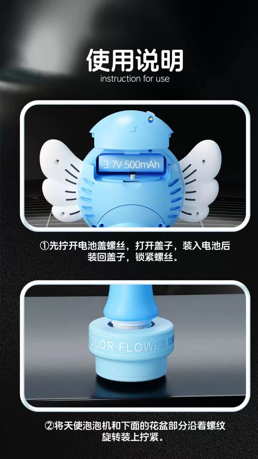 • 흔들리는 춤추는 천사 버블 머신(파란색) 원클릭 시작 모델 + 버블 액체 10팩