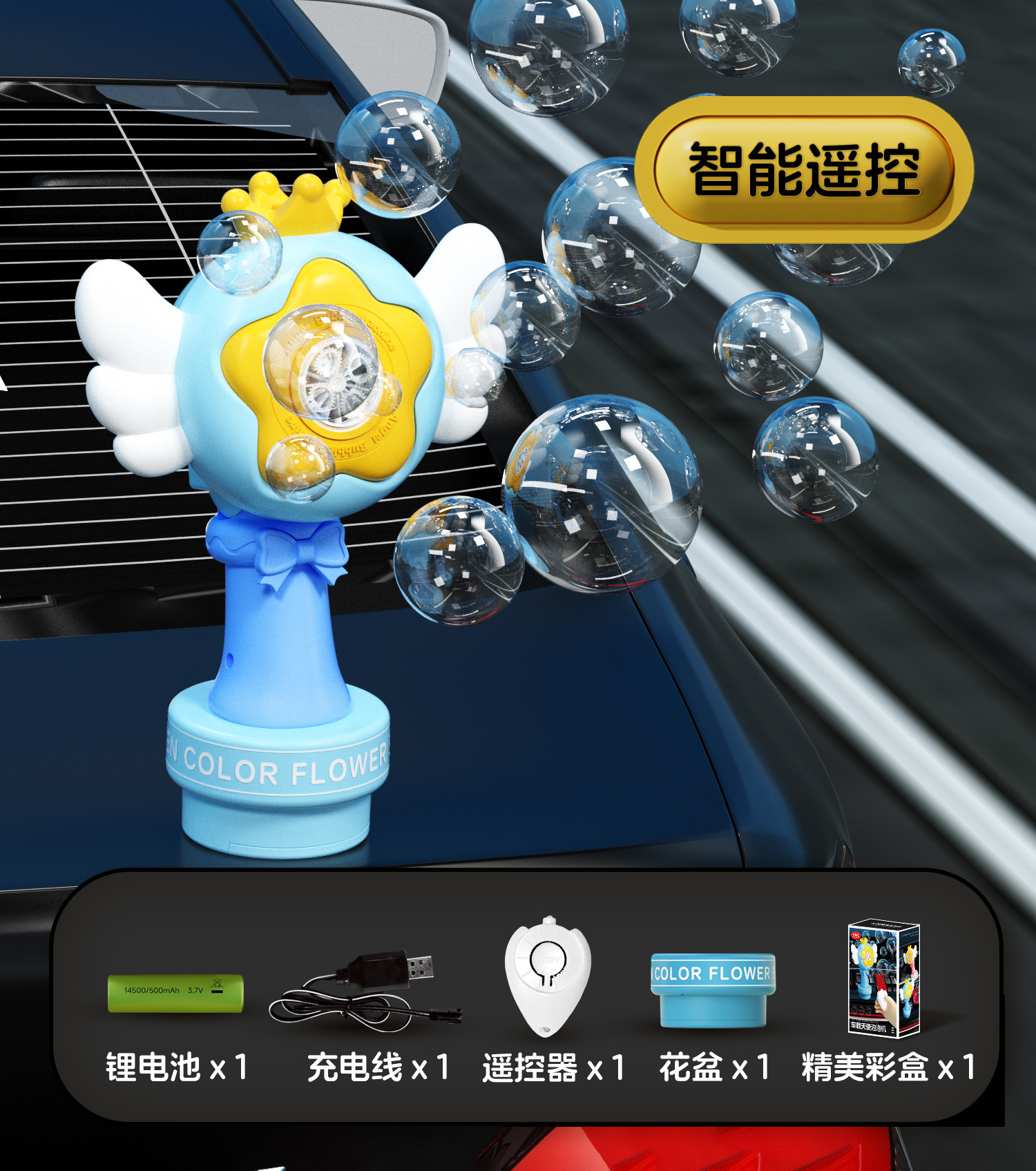 • 스윙 댄스 리모콘 자동차 엔젤 플라워 버블 머신【100m】블루+1000ml 농축액 1팩