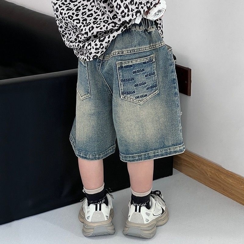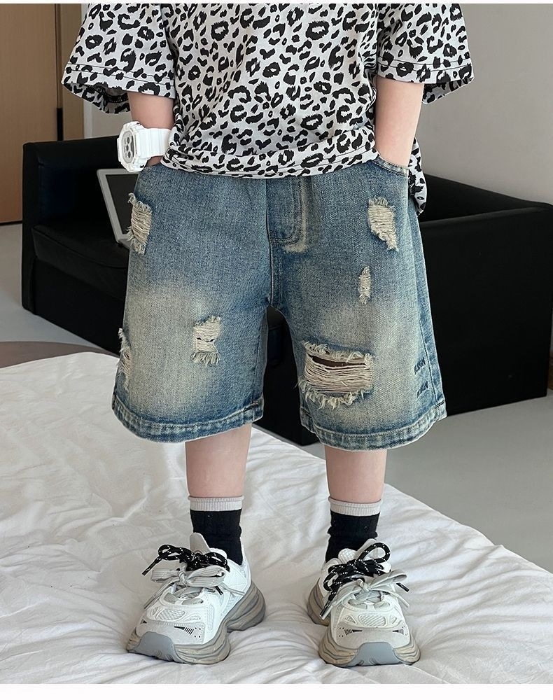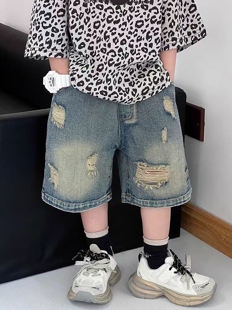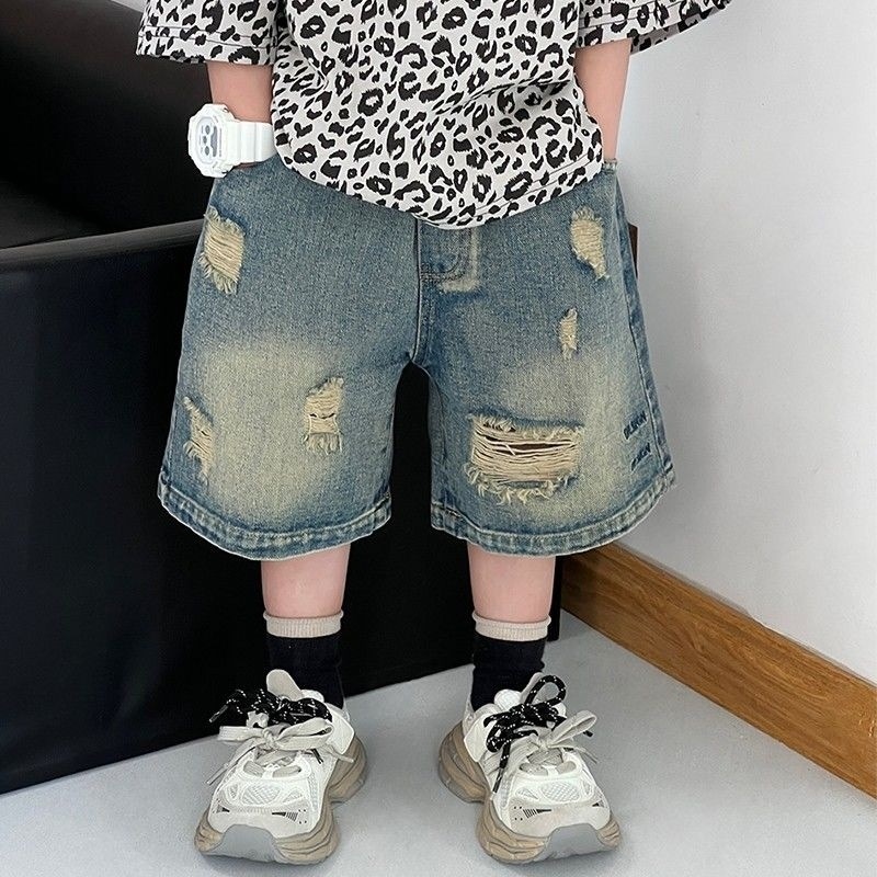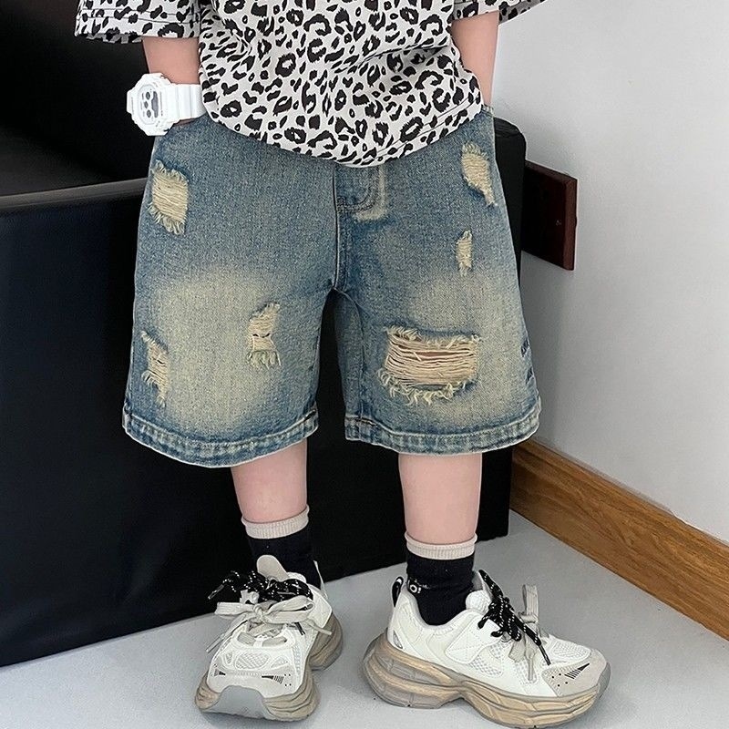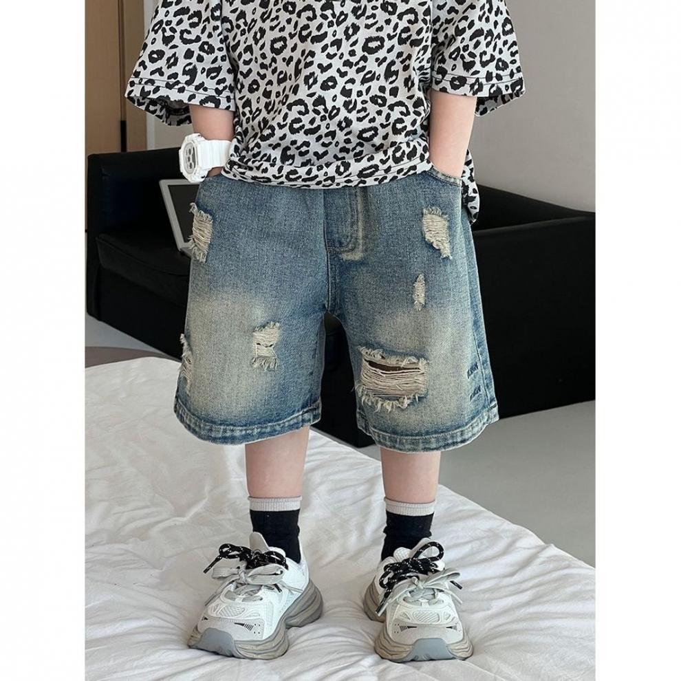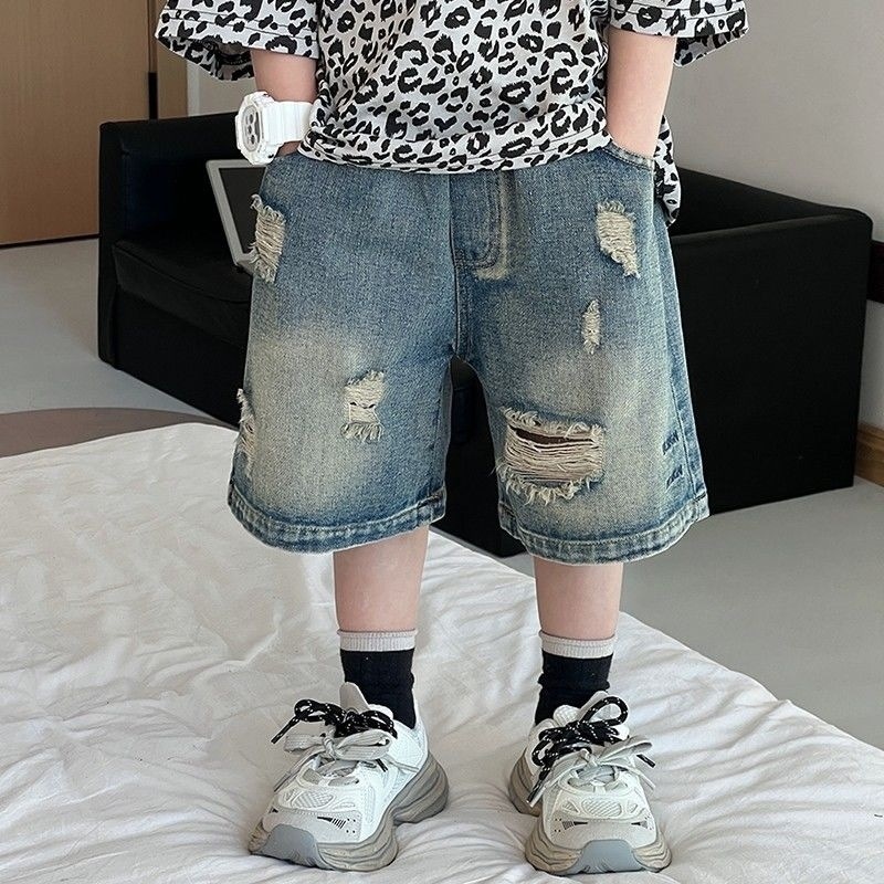 남아 청바지 2025 신상 여름 한국 스타일 중간 바지 아동 여름 5부 바지 아동복 트렌디하고 멋진 찢어진 바지스토어 가기